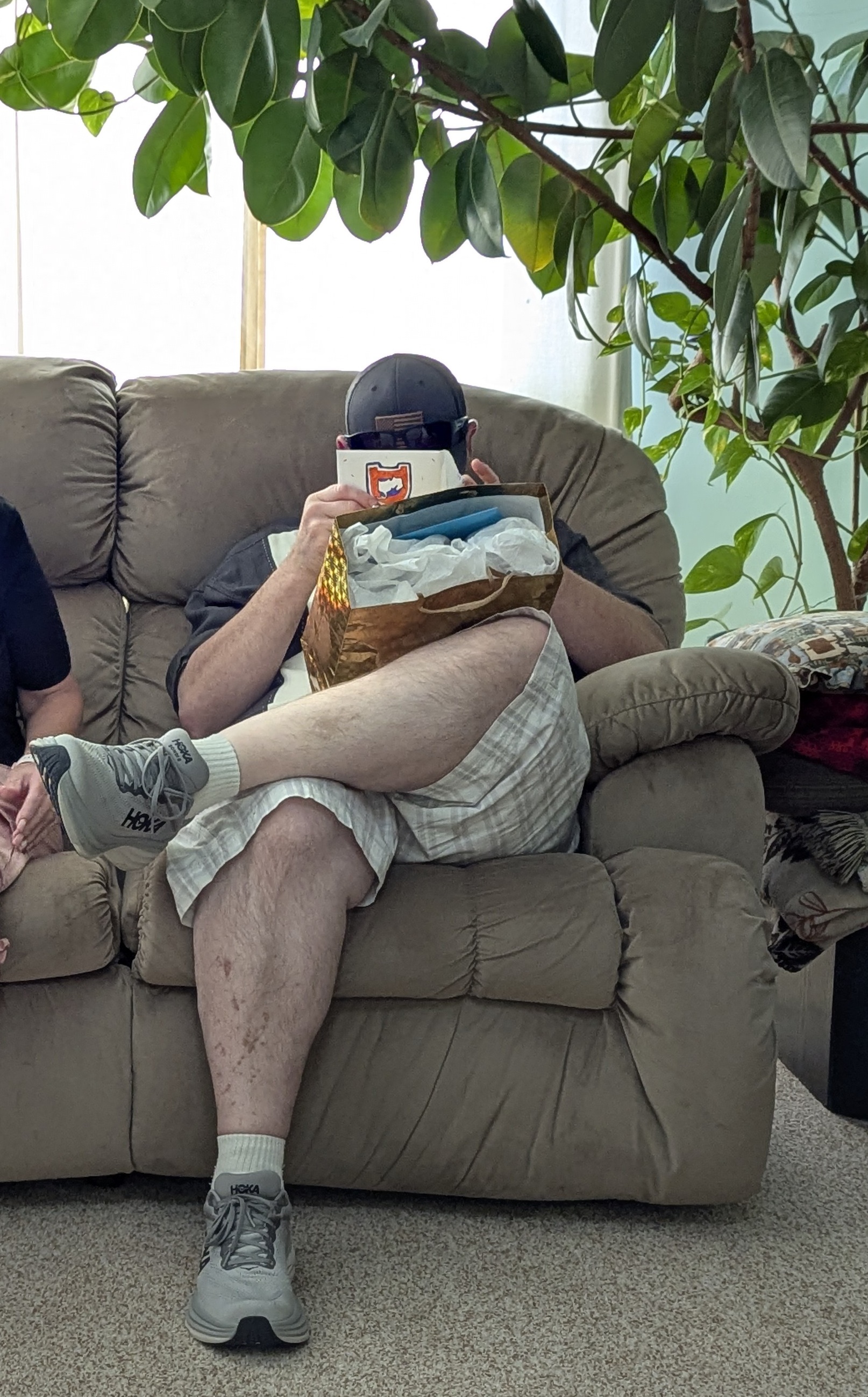 Rob, hiding as usual...Mike told him we would have to return the Fancy Chicken to him since the HOA doesn't allow chickens. ;>) (Christmas ornament story...)