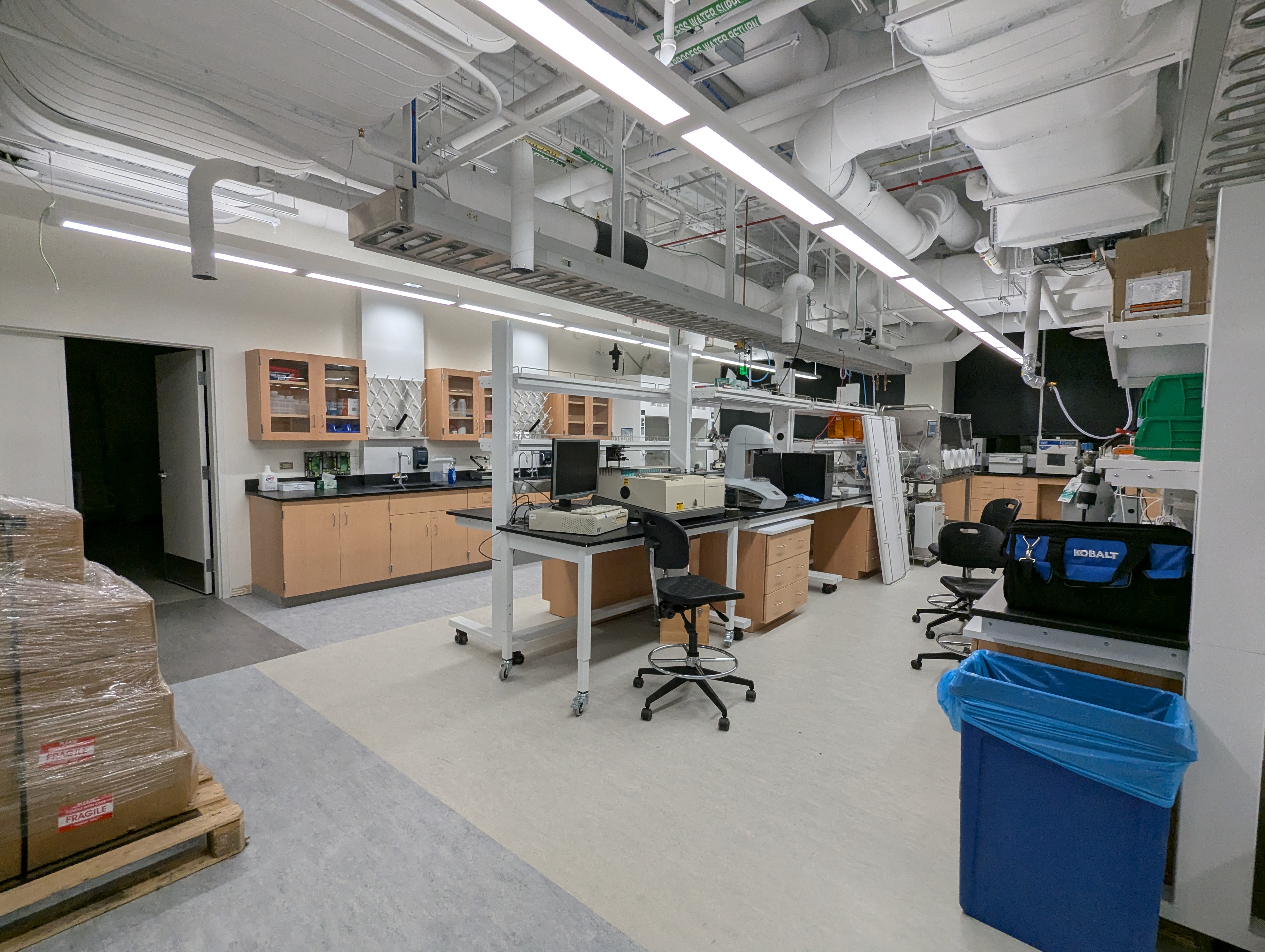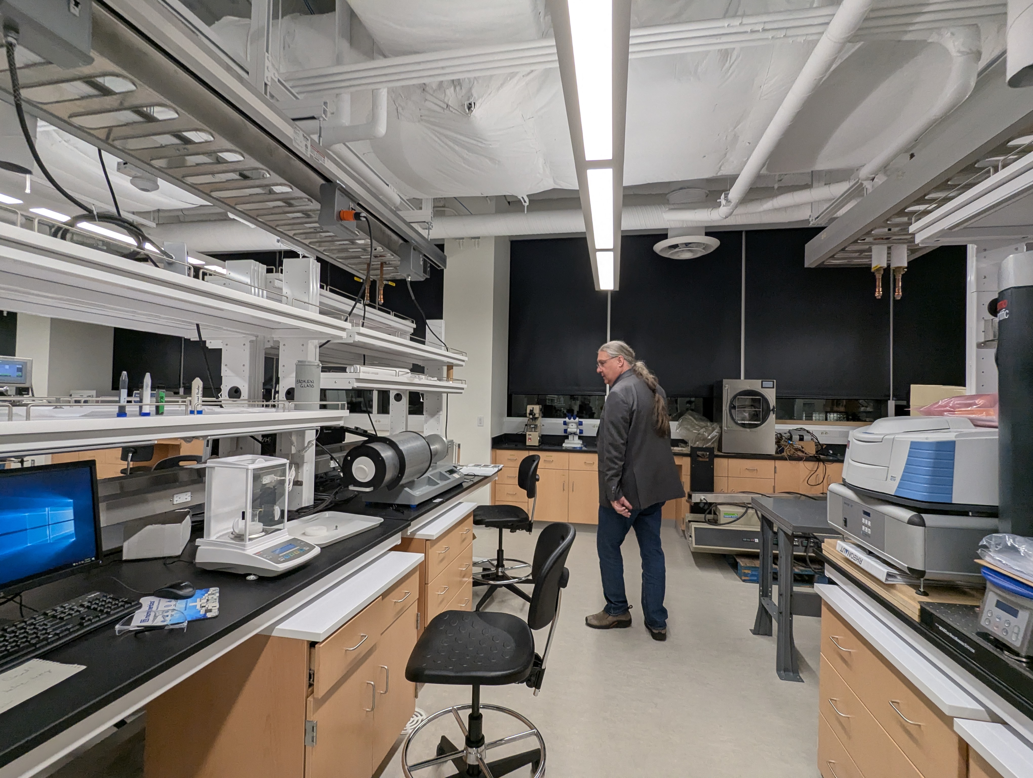 Headed to the basement - Dan Clark used to hate his "fishbowl lab" at the end of the hall.