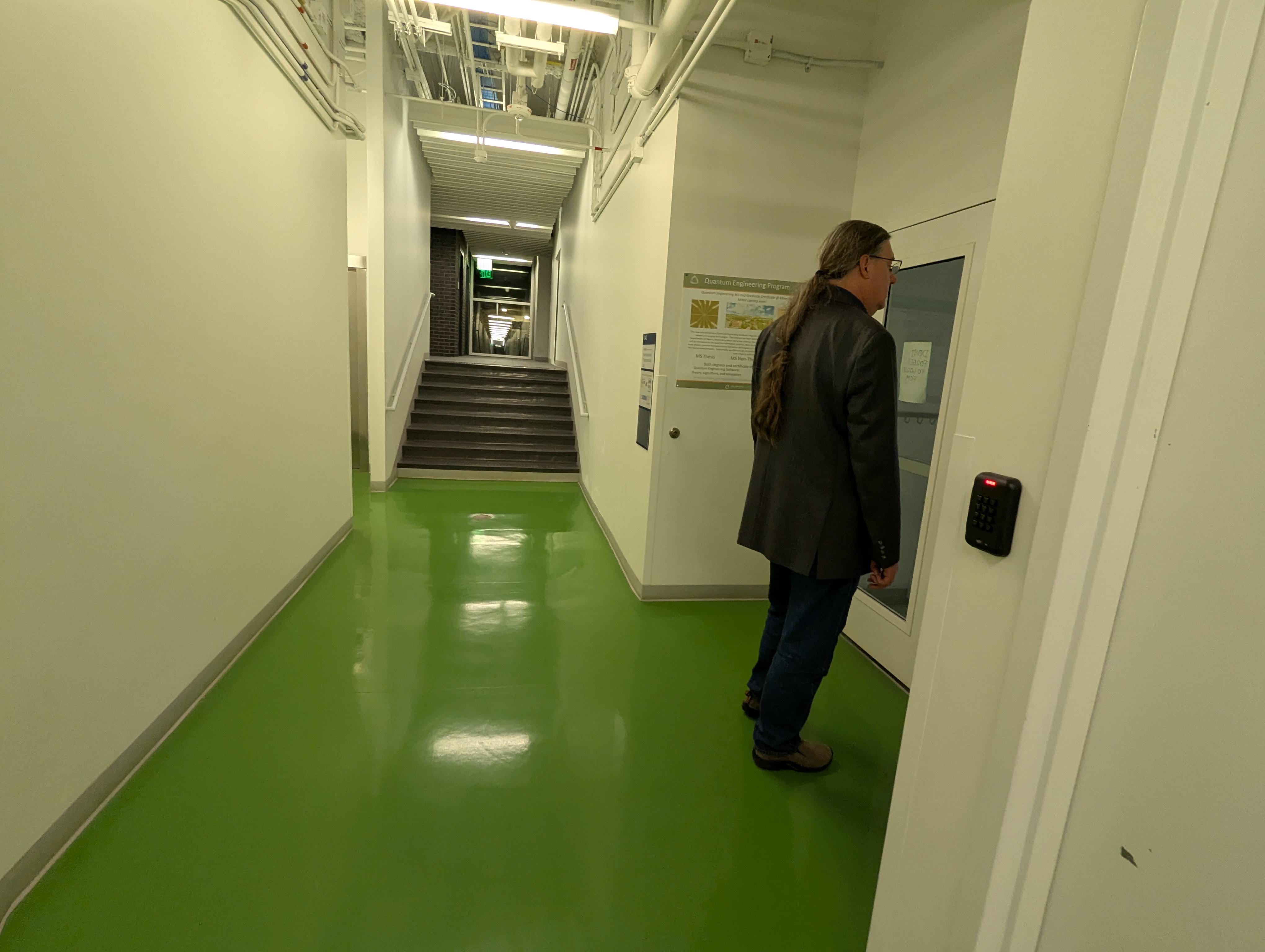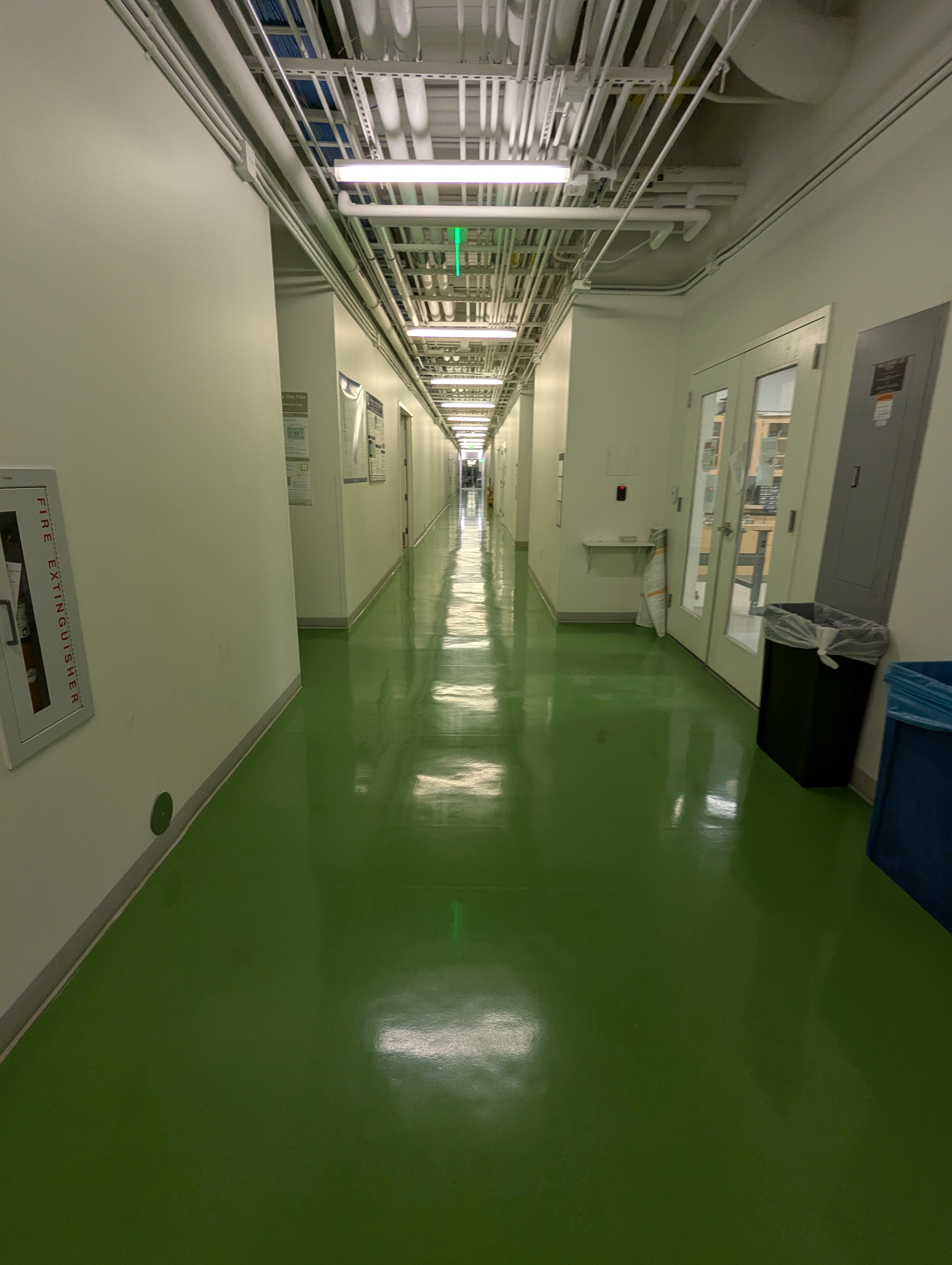 You know you're in the basement of the physics building because the floor is green.... so green. Why? No one knows.