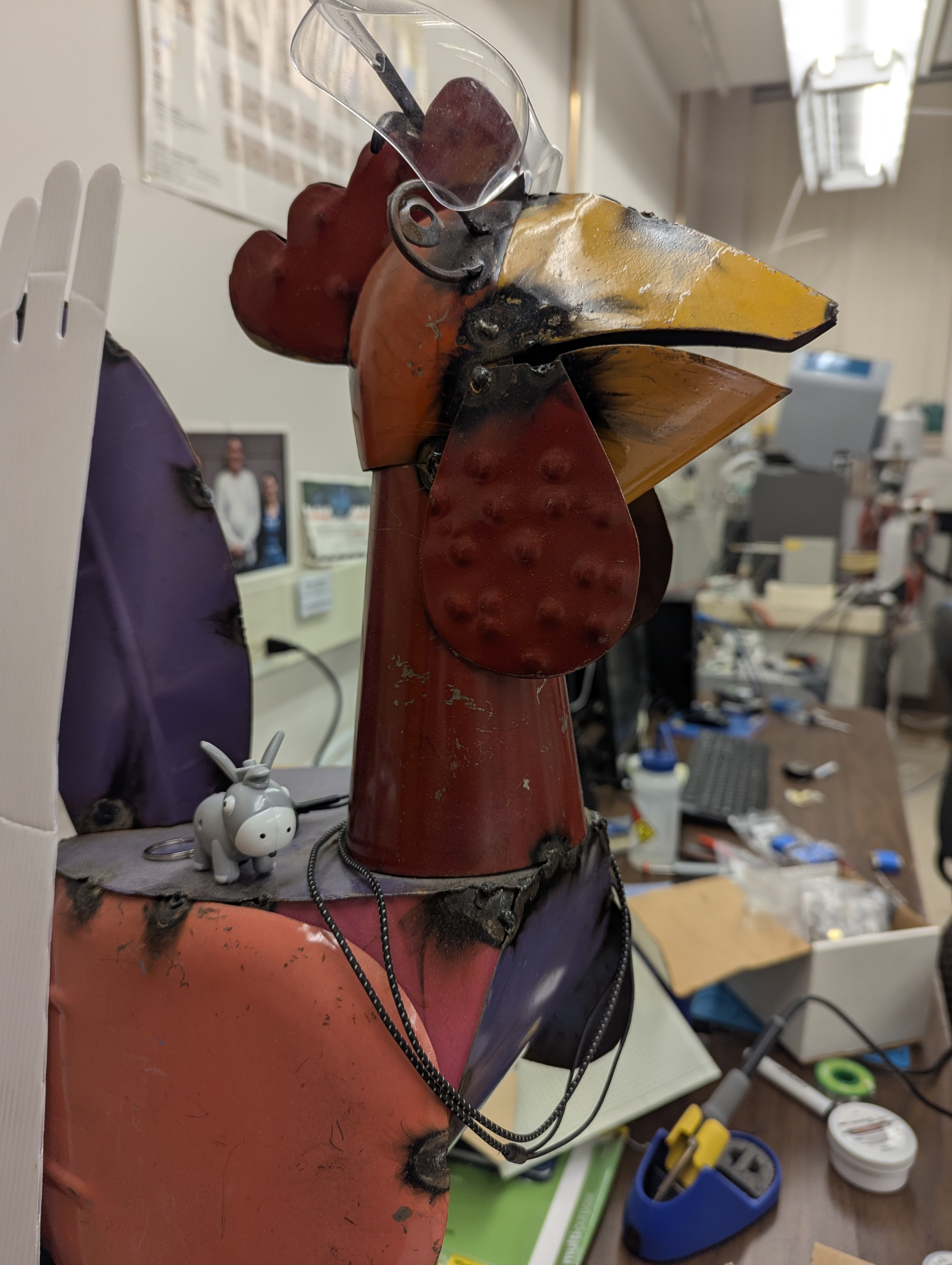 Over to Hill Hall (Materials Science building) to check on Mike's regular lab. Baby Blaster said hi to the residents of Mike's lab.