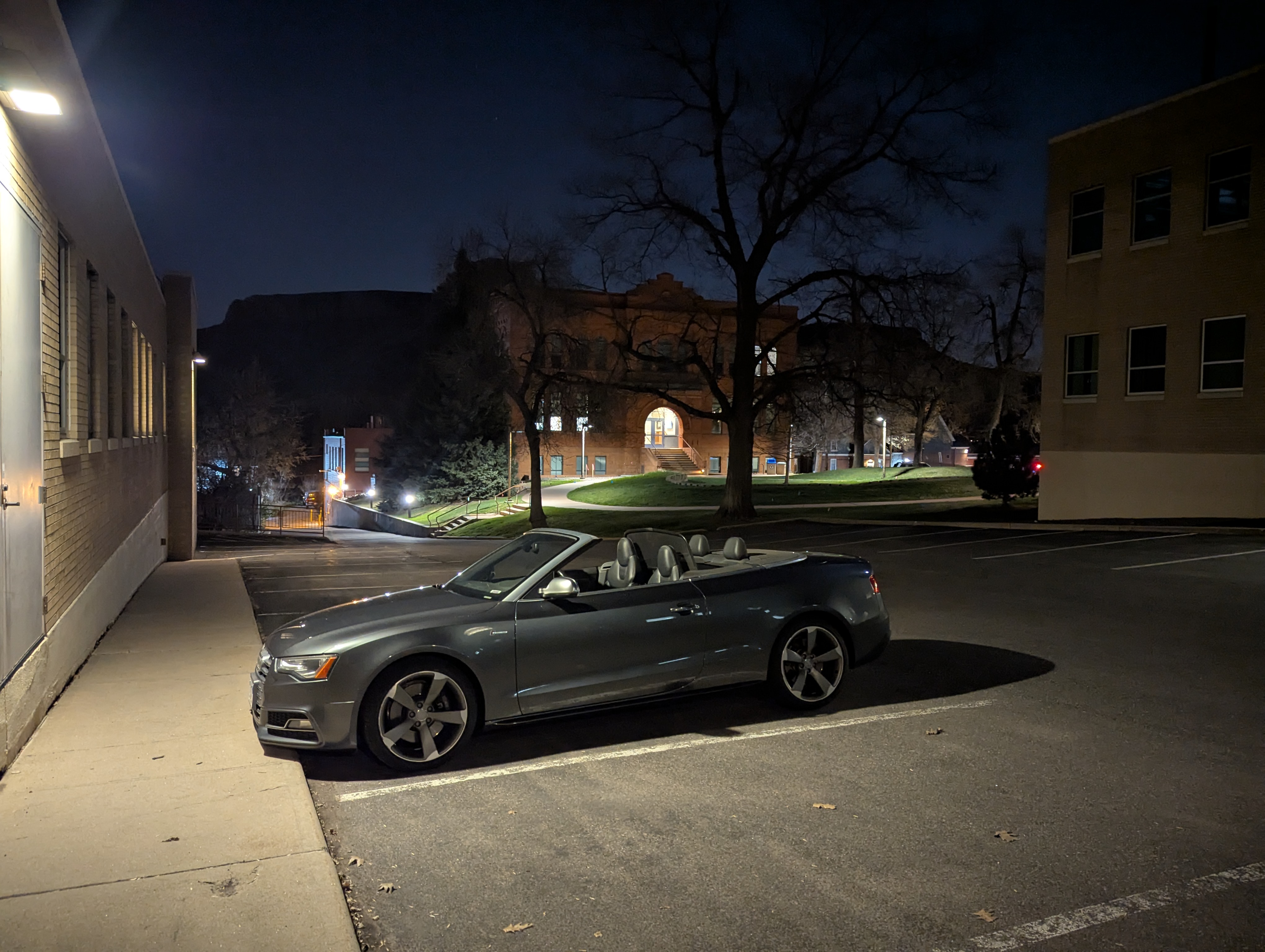 Back outside - the "M" on the mountain has been transformed (to a hat?) in honor of "Engineering Days" (E-Days).