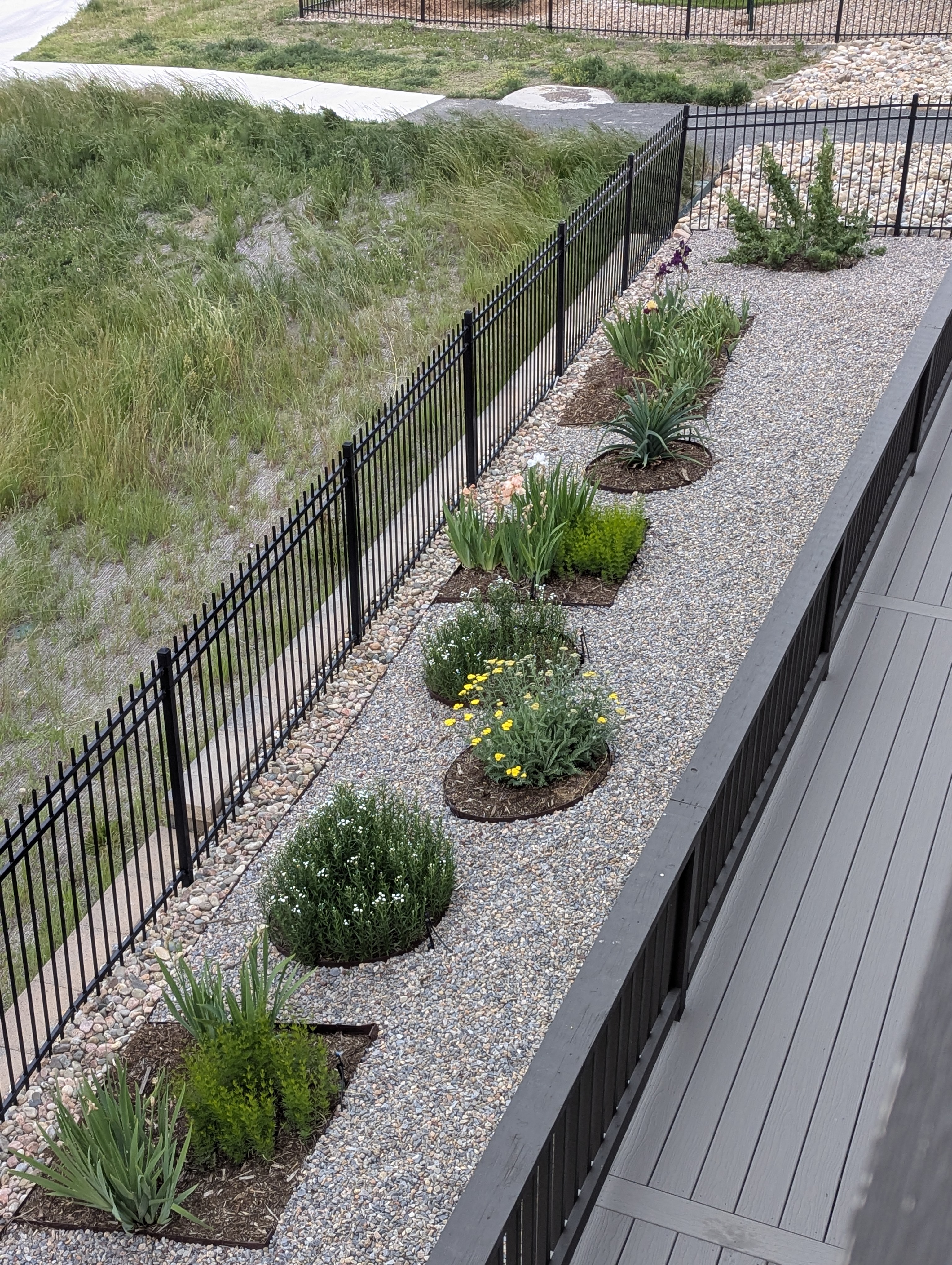 Back home, watching the wind blow through the grasses in the open space area. The gardens are establishing nicely. All but one of the perennials survived the winter.