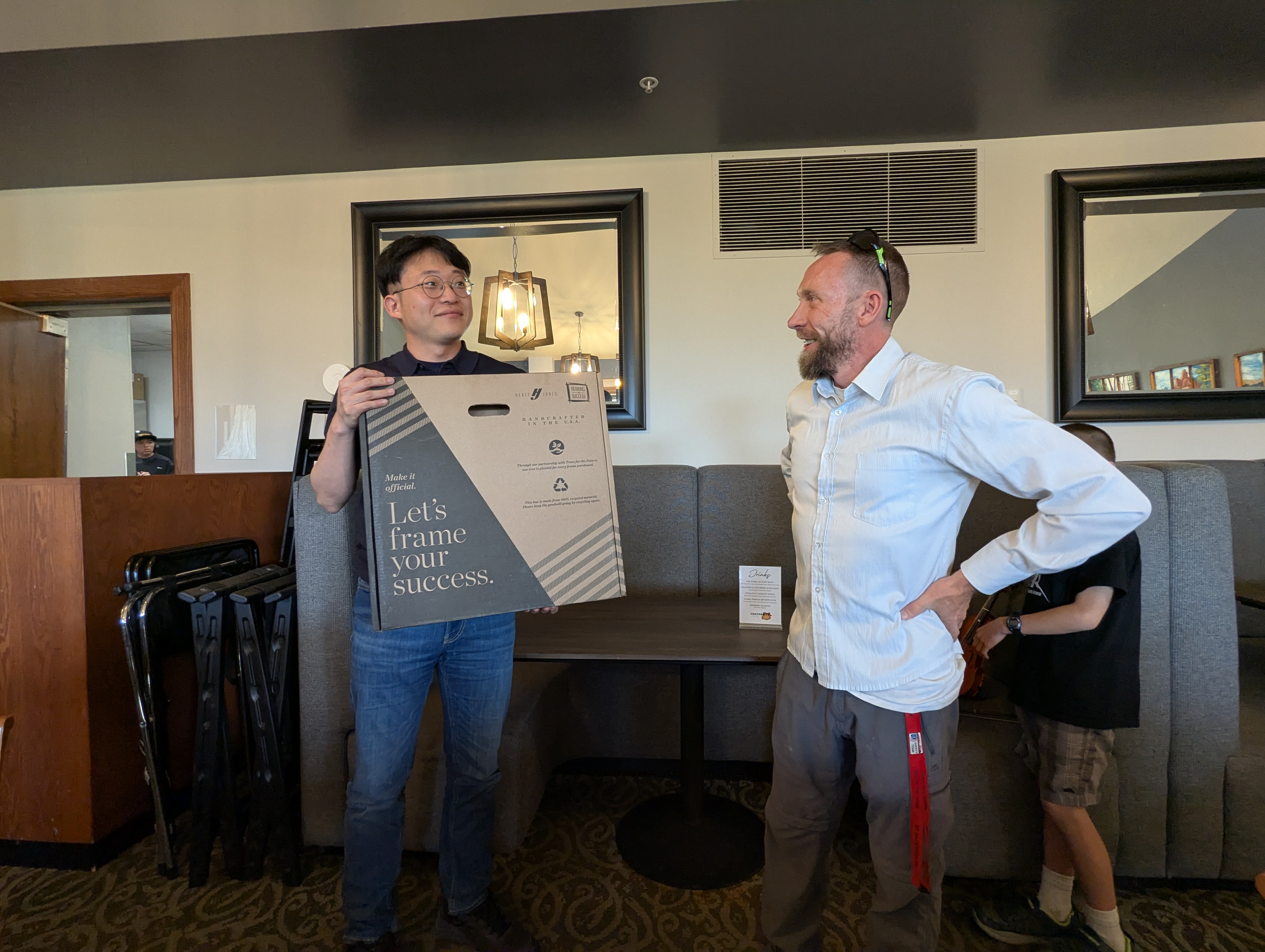 Another student graduates! Ryan and Neil hosted a celebration for their latest PhD graduate at the Fossil Trace Golf Club. Beautiful evening... the kids were