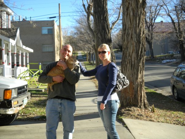 here's one of two pictures from today - my bro and his girlfriend, Kim, with a cat they