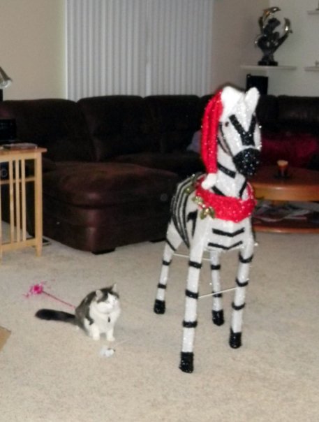 a more in-focus picture of the Christmas Zebra (had to act fast for the first one with Chloe)