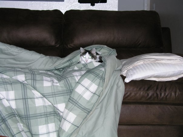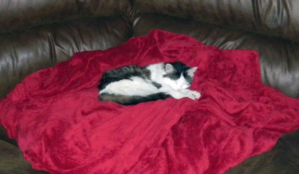 I changed Chloe's blanket while cleaning up the guest room. The new thicker blanket for winter has been accepted....
