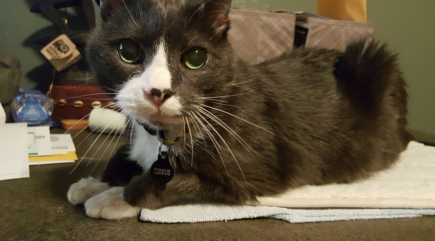 trying to text Mike when it is 1 minute until treat time (9 pm treats are well-enforced around here)... hello, Cirrus :)