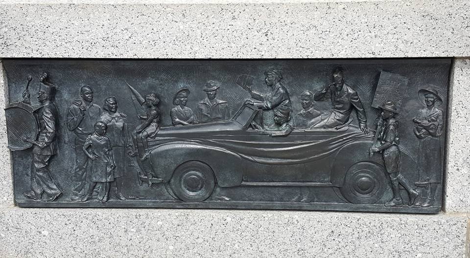 Onlookers, wondering what the big gift from Santa is...