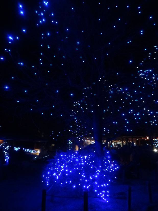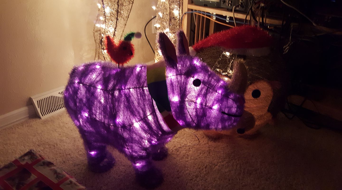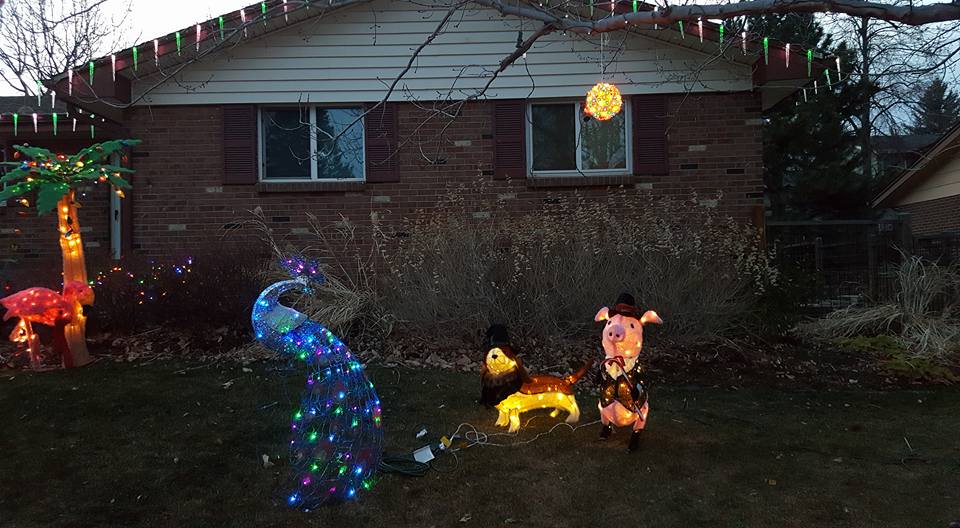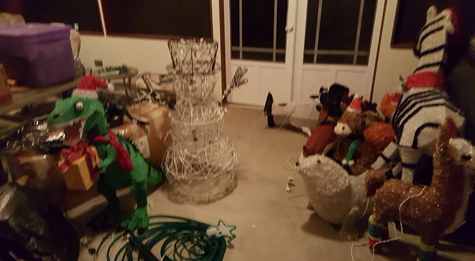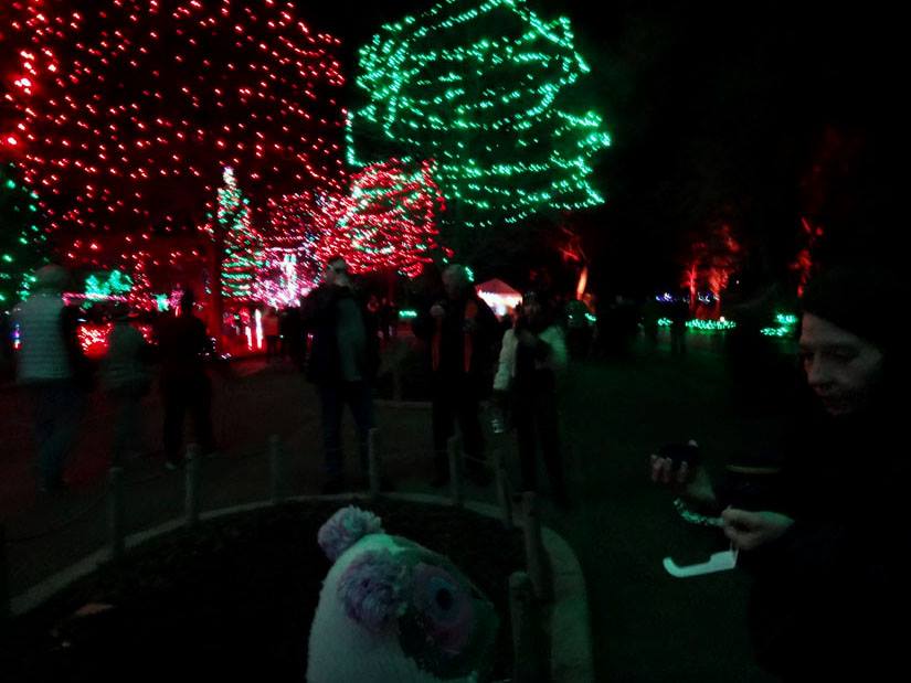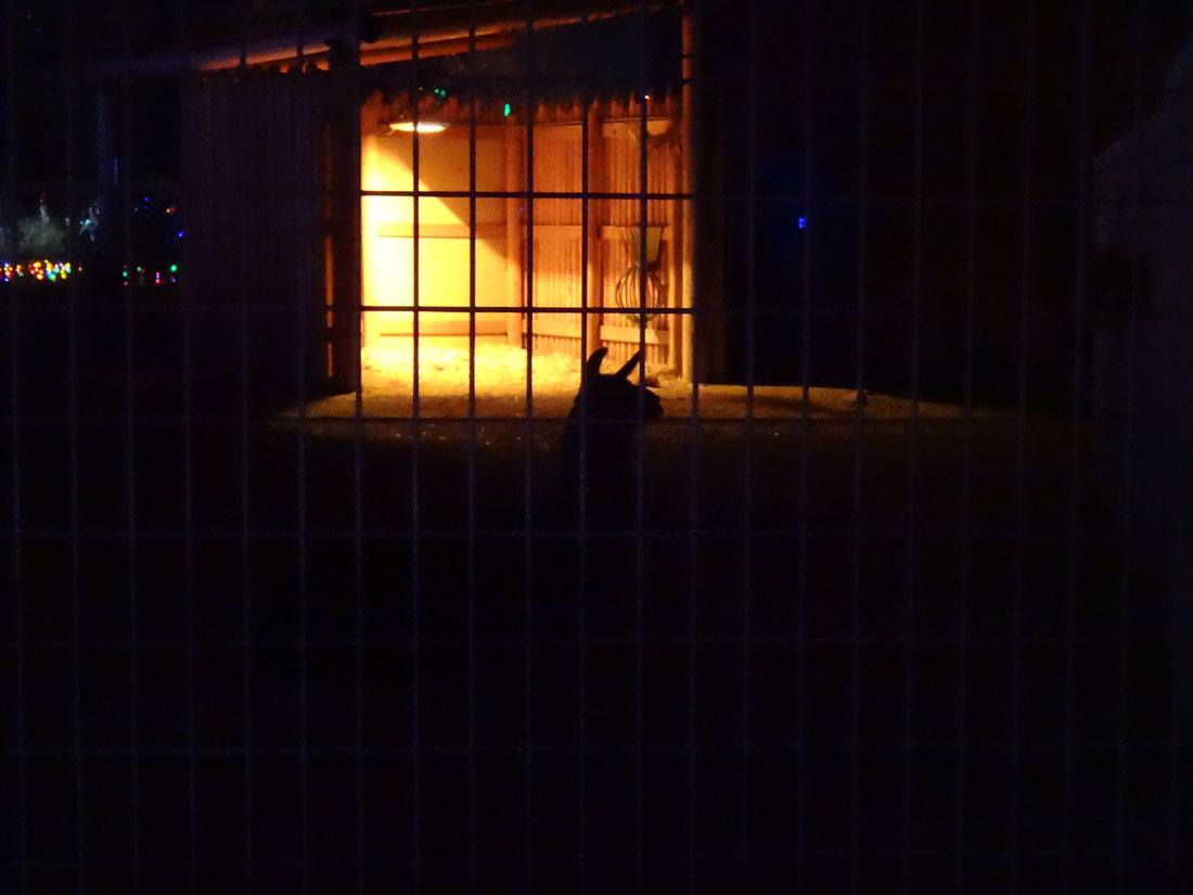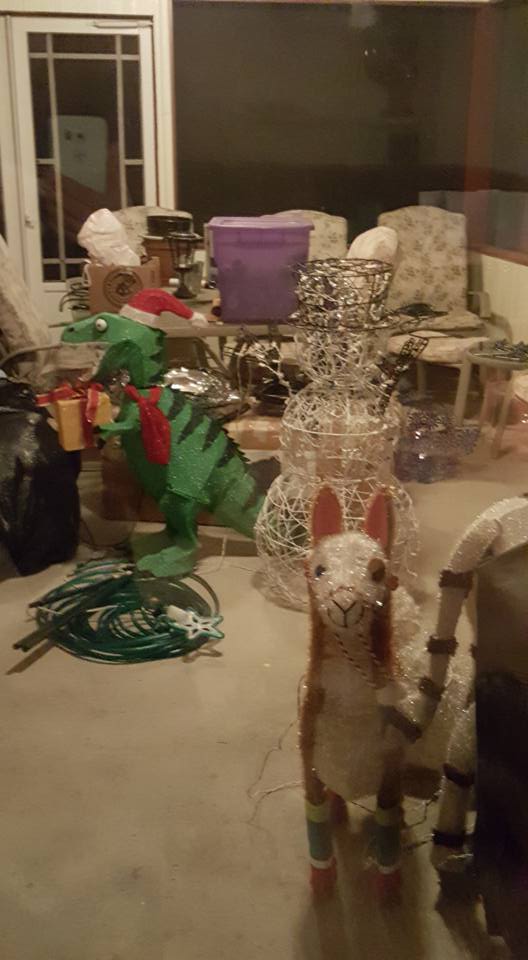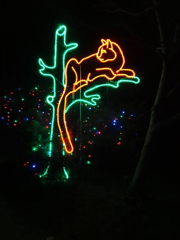 *whew* that got cold in a jiffy! It was a lovely evening, so after I got home from Jake Goodall and Jackie Marquez Goodall's party, I decided to get up on the ladder to take decorations off the trees. As the wind started to pick up, I remembered last year's zoo-pacylpse in a wind storm and kept going. My apologies to the 5 zoo members who are not safely sheltering on the patio. The wind got cold fast! Maybe I will rescue them after I warm up.