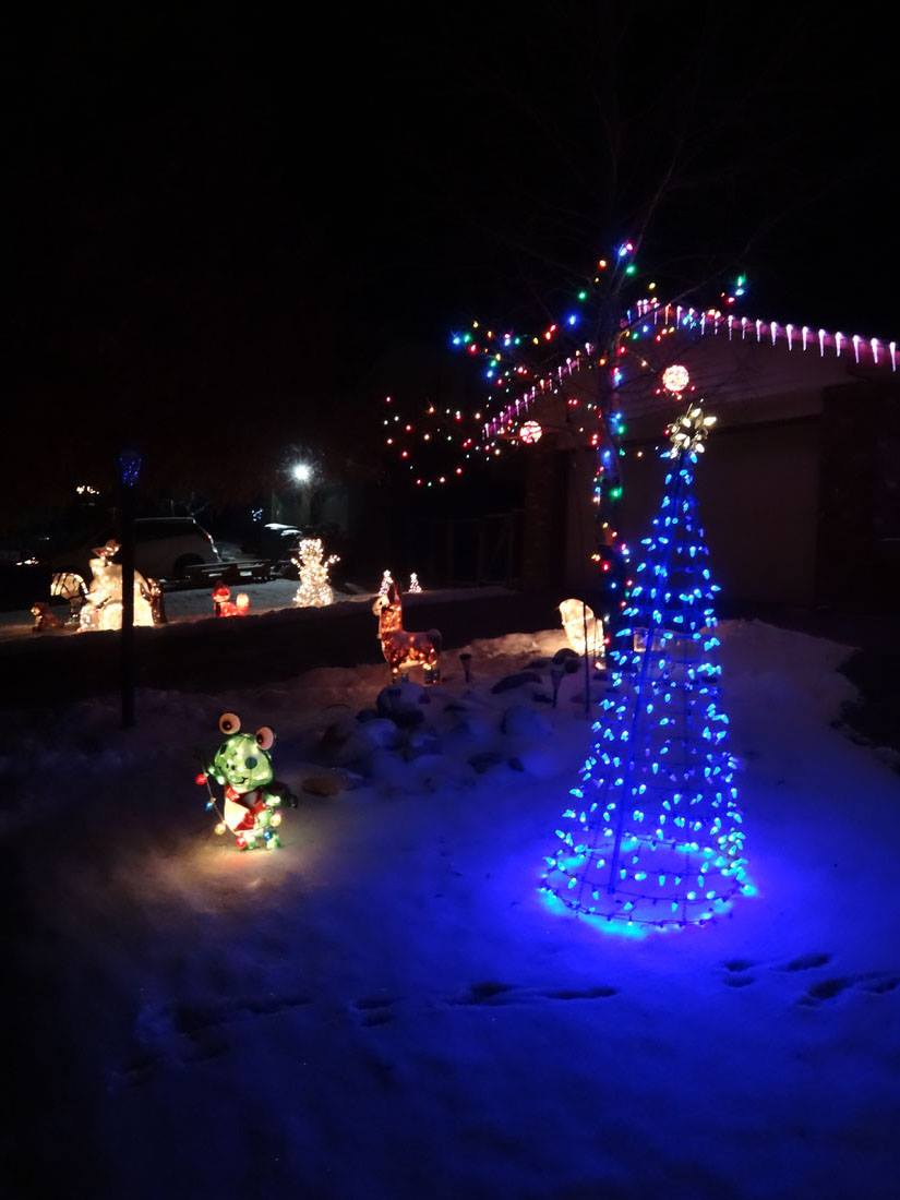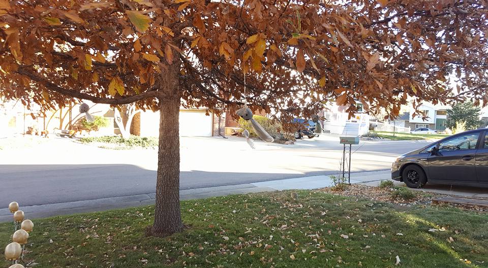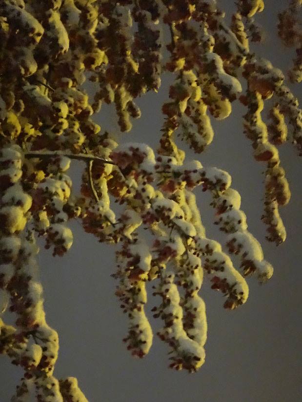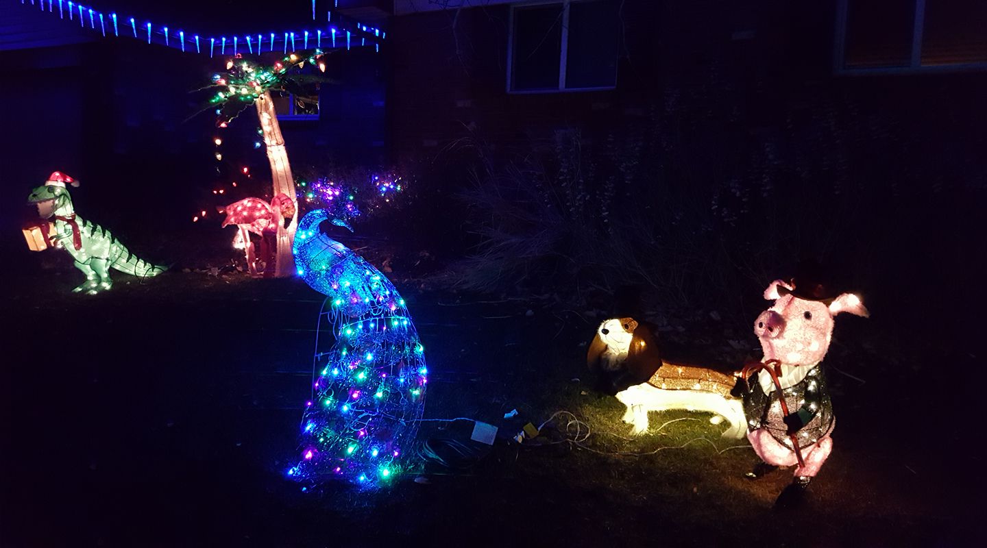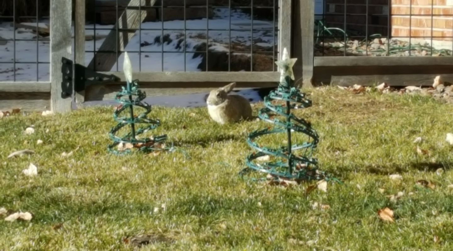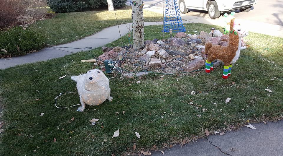 *whew* that got cold in a jiffy! It was a lovely evening, so after I got home from Jake Goodall and Jackie Marquez Goodall's party, I decided to get up on the ladder to take decorations off the trees. As the wind started to pick up, I remembered last year's zoo-pacylpse in a wind storm and kept going. My apologies to the 5 zoo members who are not safely sheltering on the patio. The wind got cold fast! Maybe I will rescue them after I warm up.