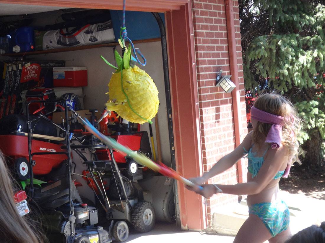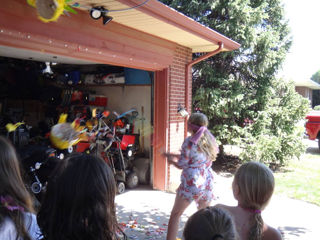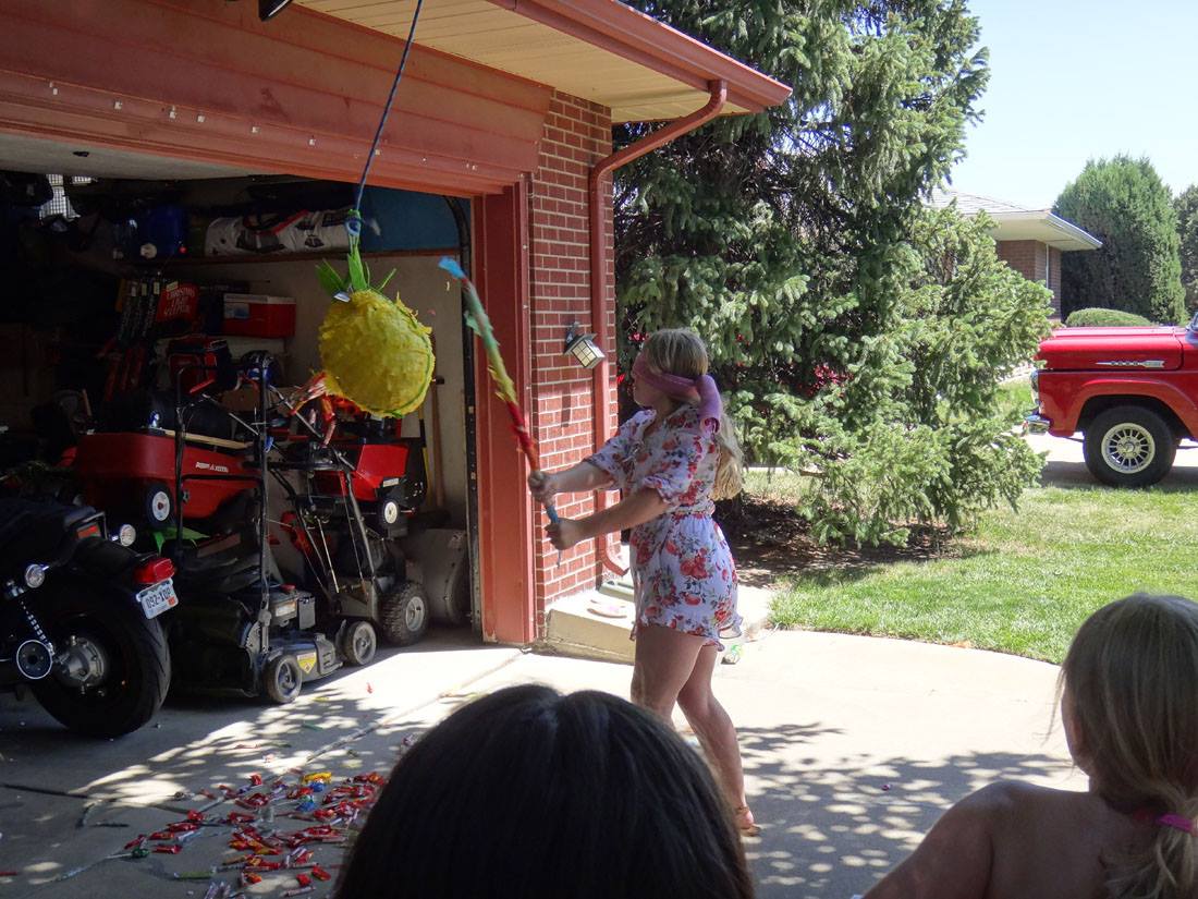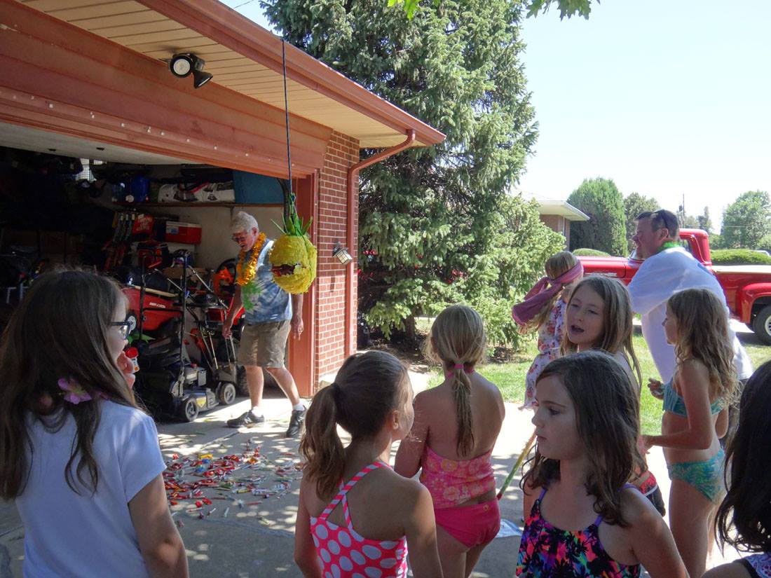 Maddie - being a goofball while Mike shuffles the cards