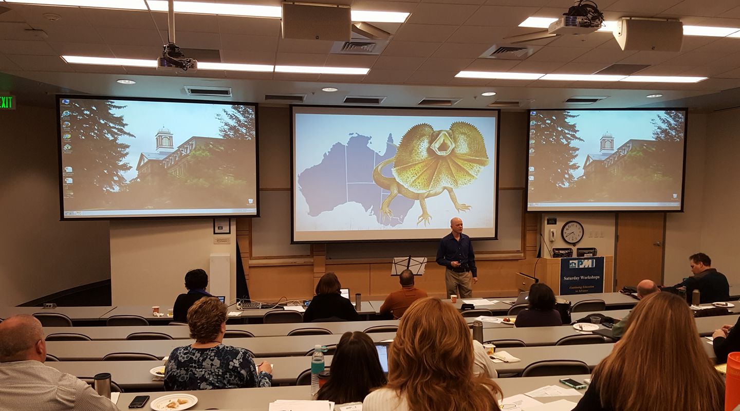 fun morning at the Project Management Institute's Saturday Workshop. One of the lessons today was not to use your reptilian brain when communicating with your team....but there was of course a lot more to the 3 1/2 hours.