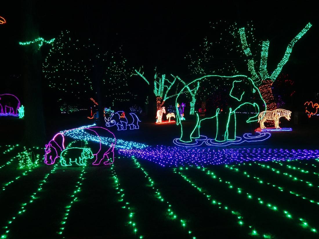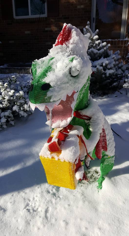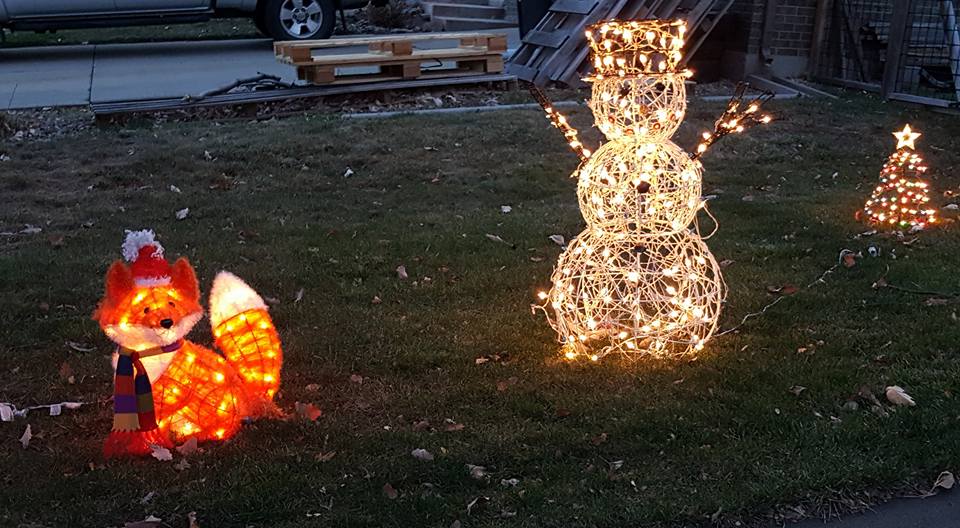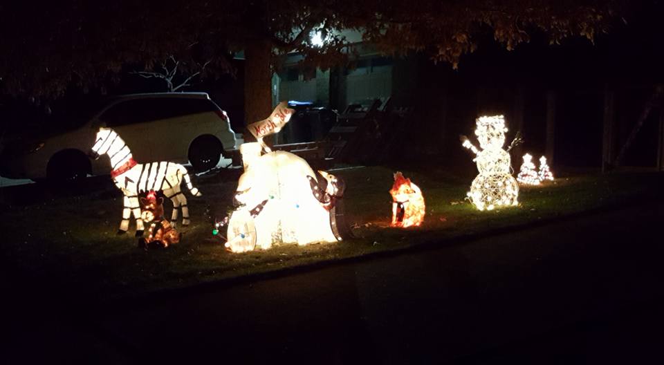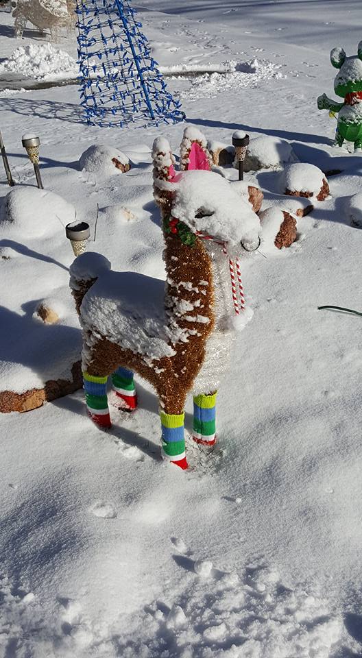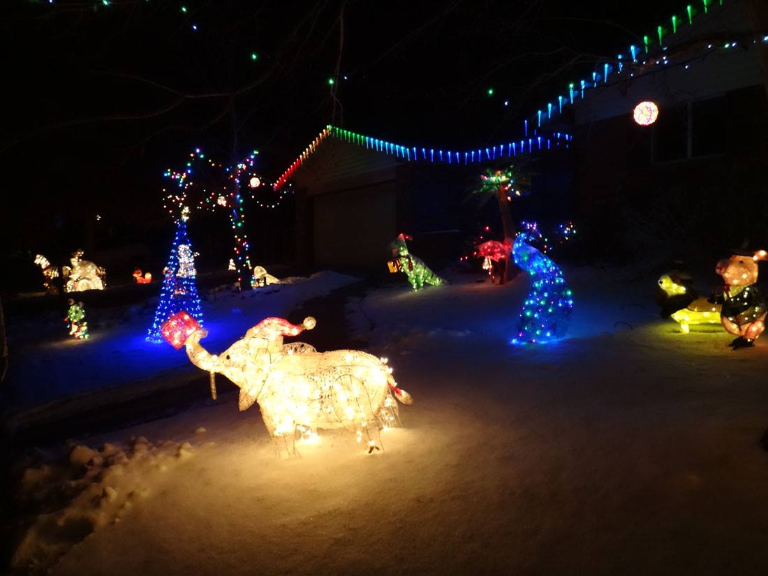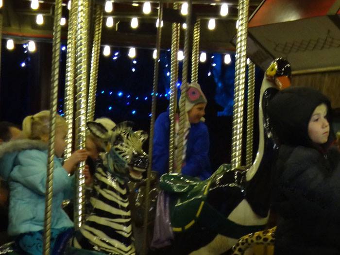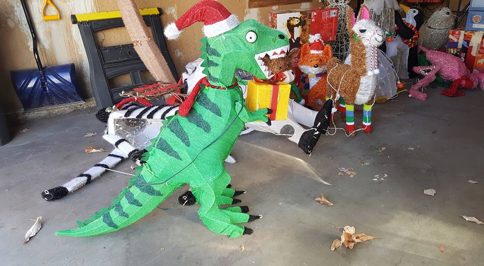 The giraffe is ready for New Year's! and the elephant is inside. The rest of the zoo is in the attic.