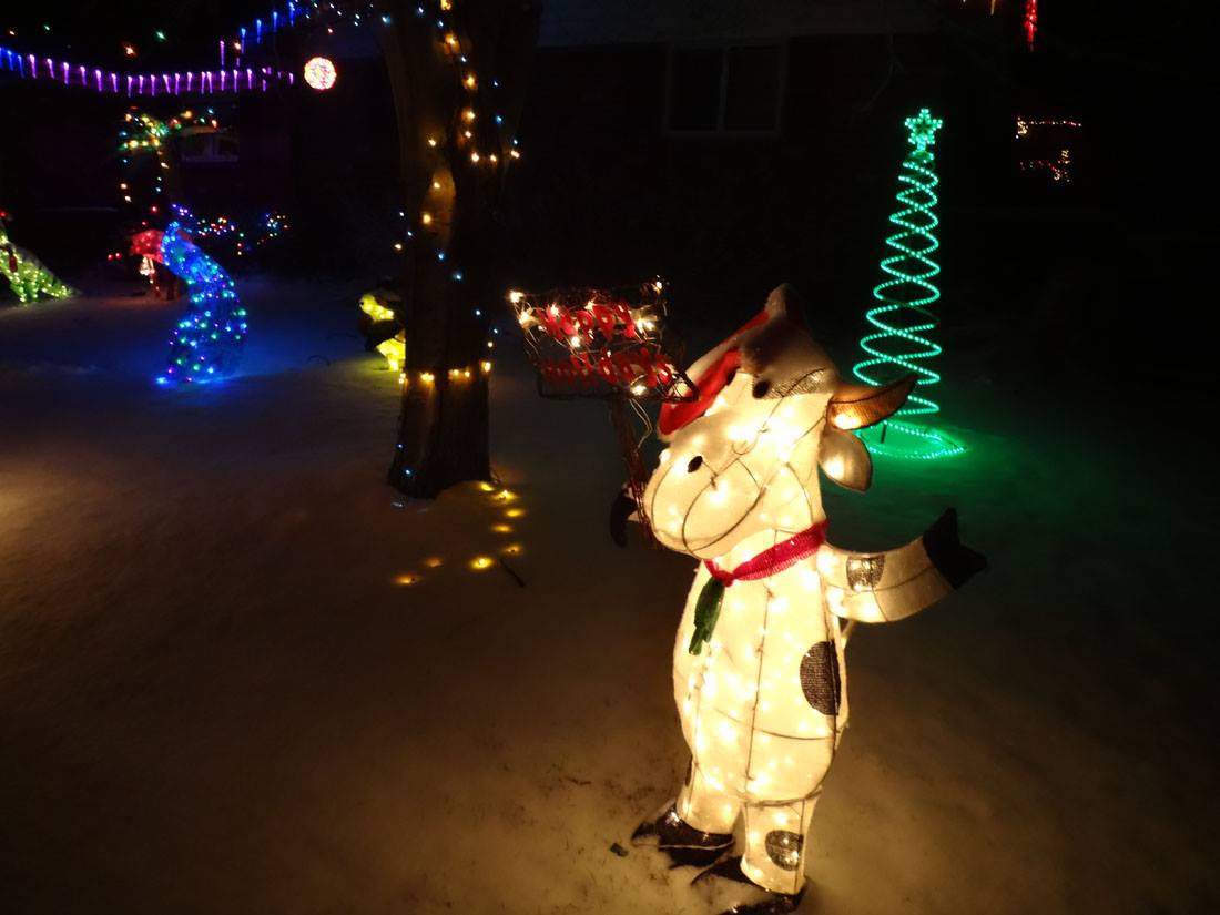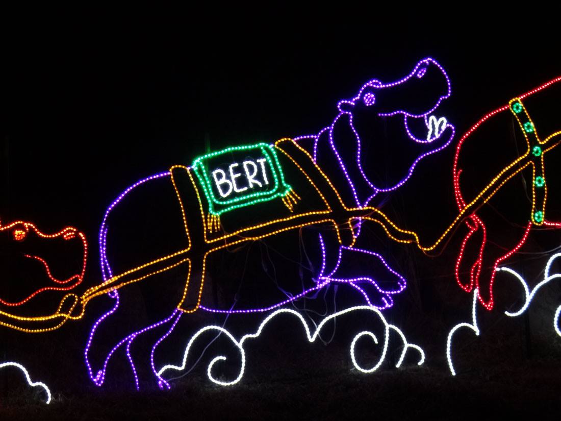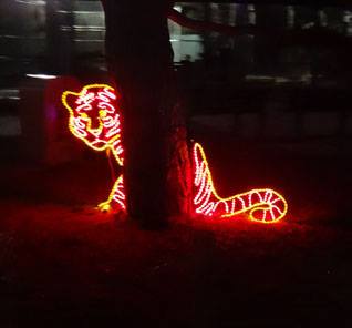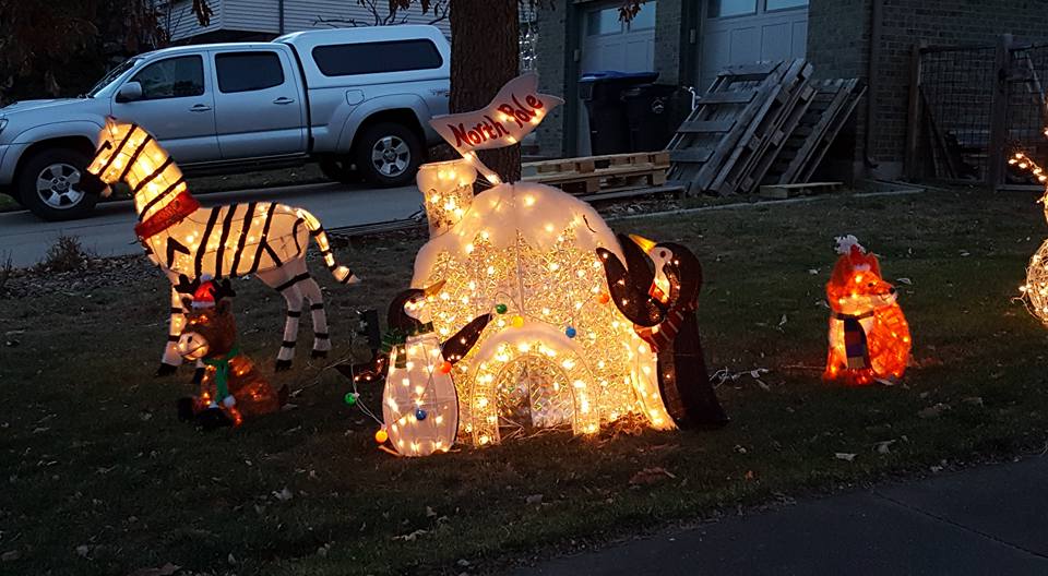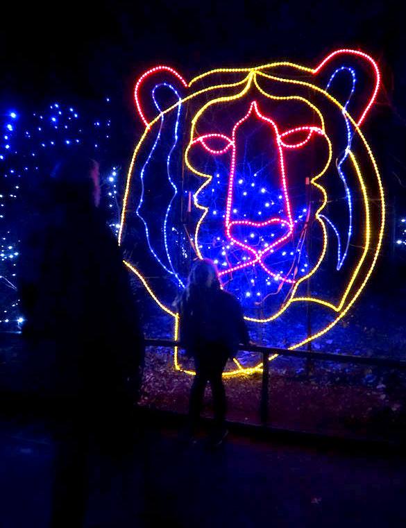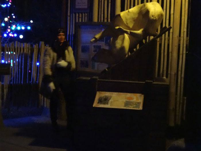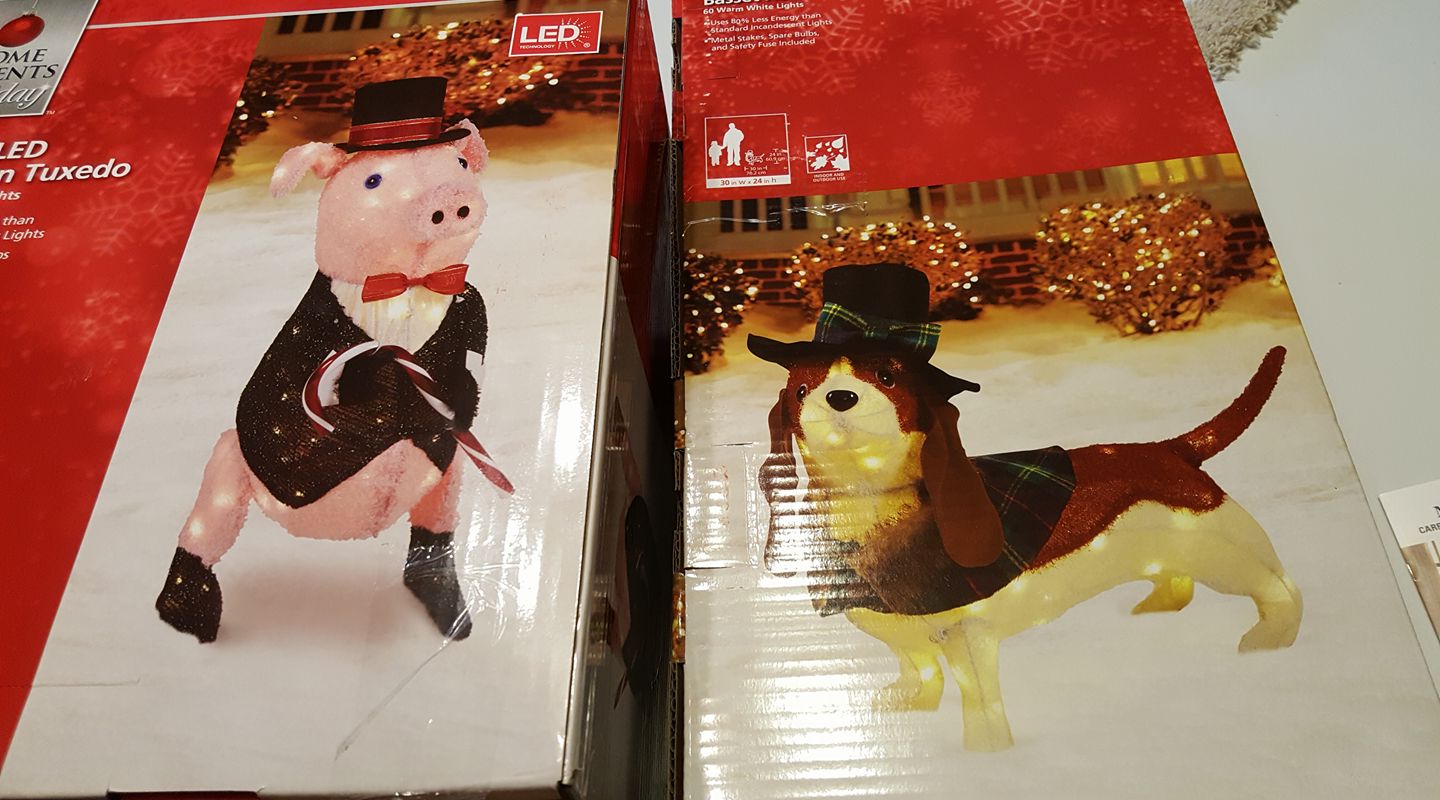 The giraffe is ready for New Year's! and the elephant is inside. The rest of the zoo is in the attic.