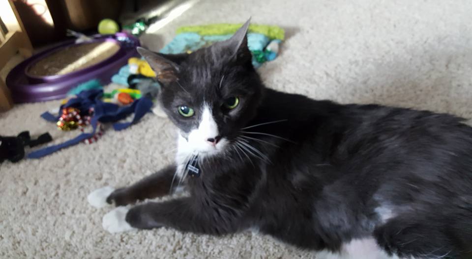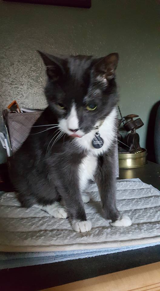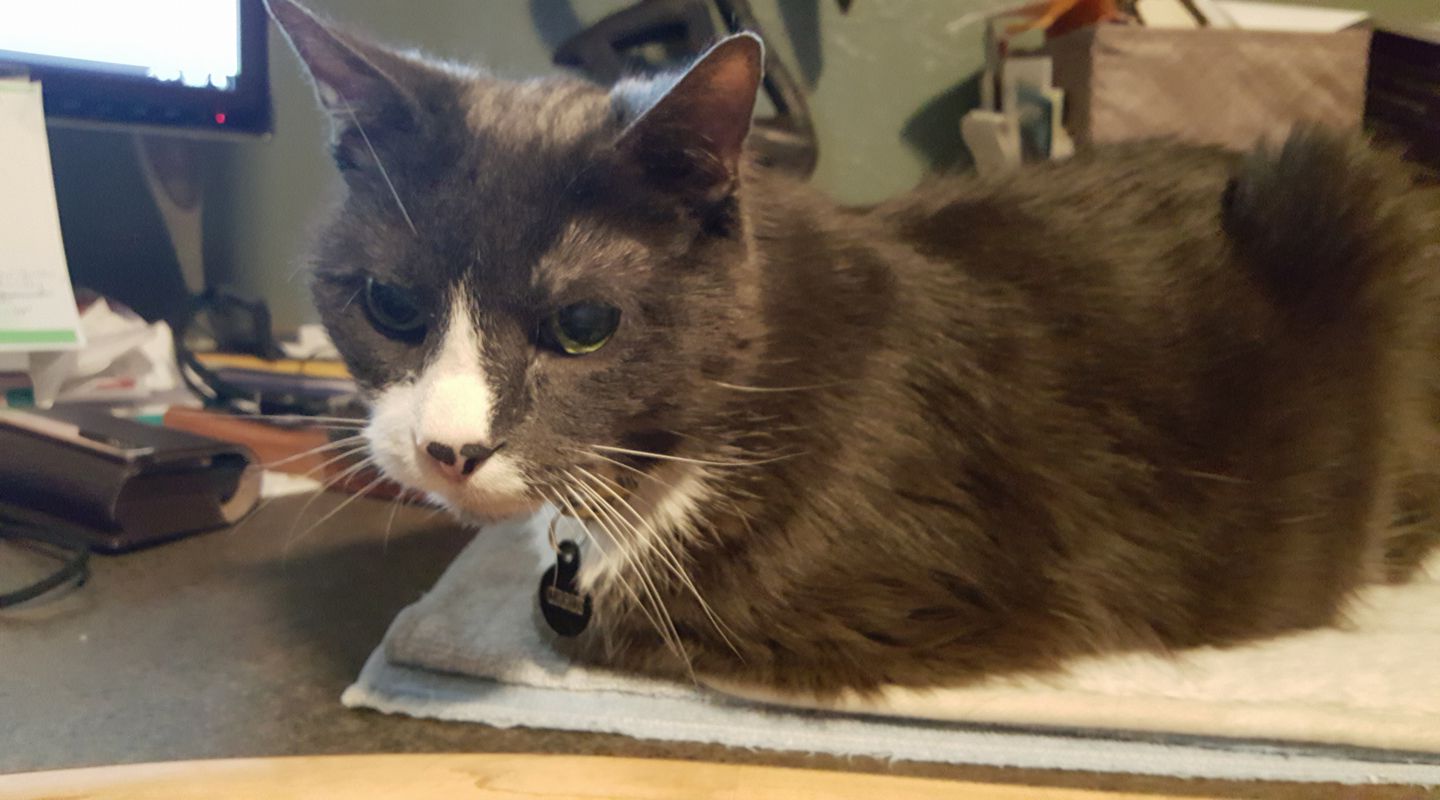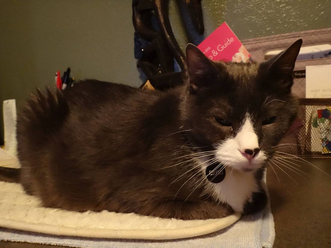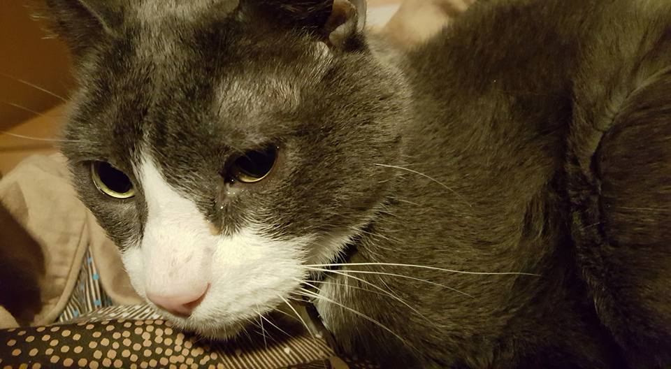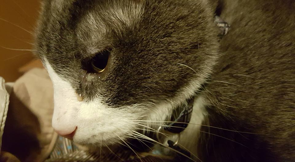 poor Muggie has an eye infection. The vet said to keep it clean, and they will call on Tuesday to check on his progress. Muggins did not like me cleaning it up...