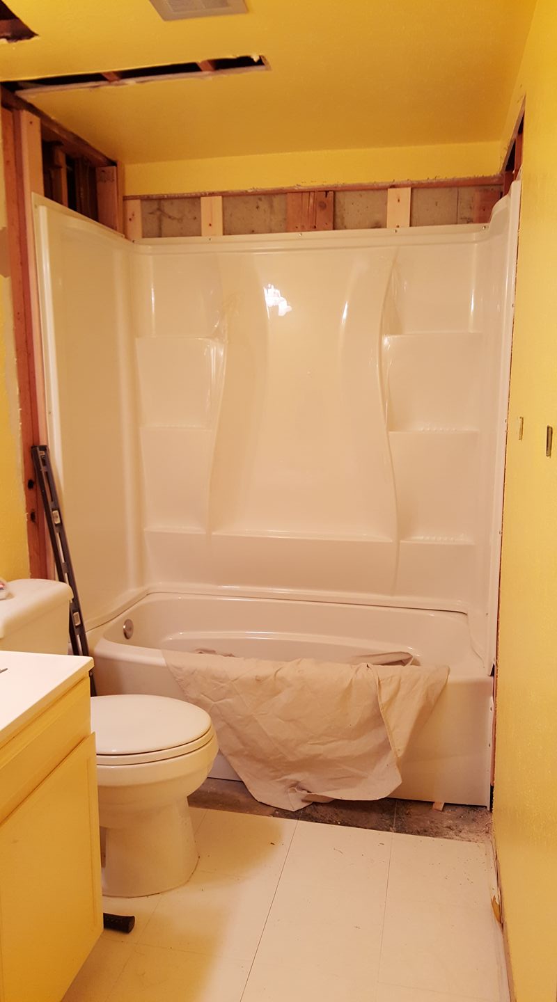 goodbye, shower cube! looking forward to the new shower enclosure!