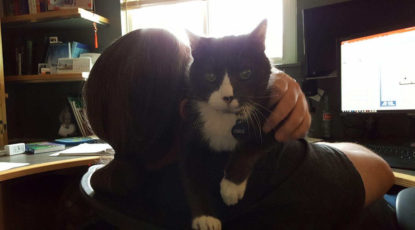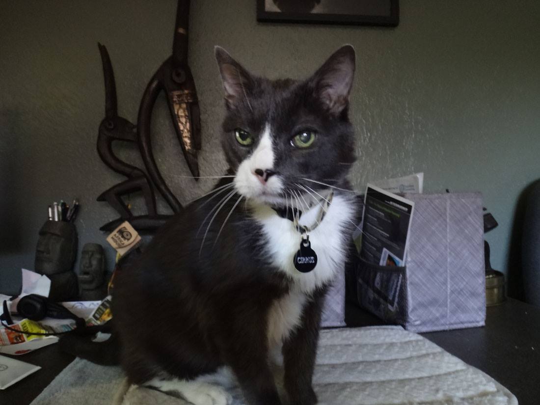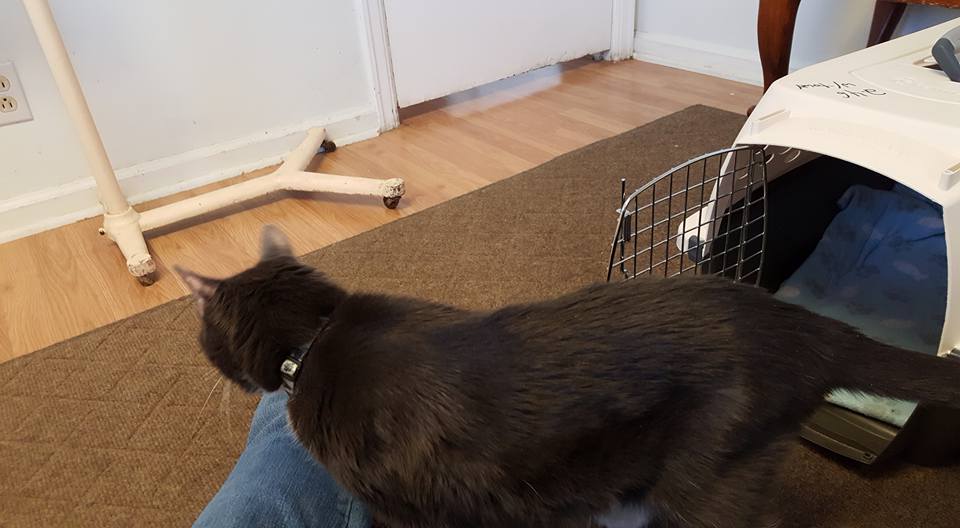 Cirrus is appalled that there is a dog in the study...