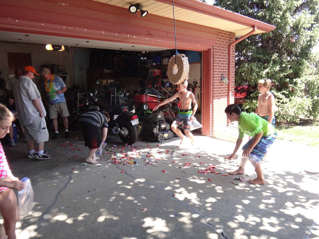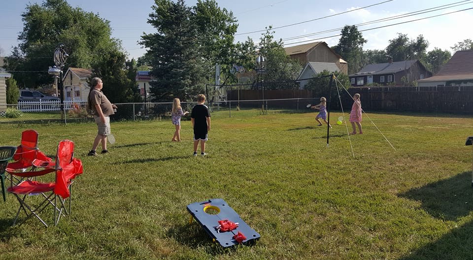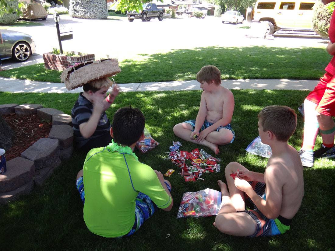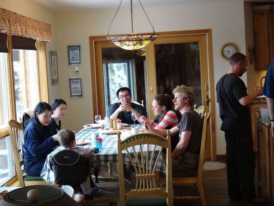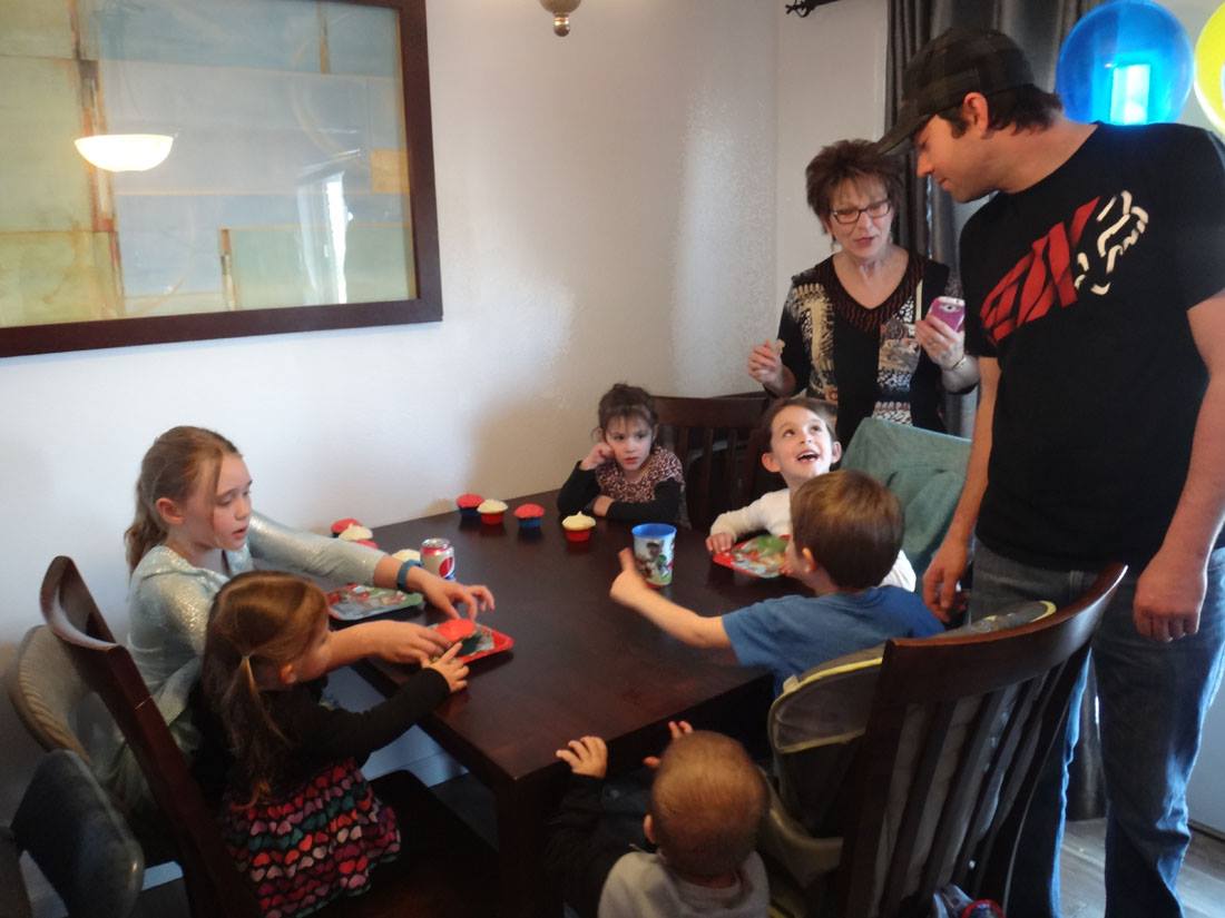 Rannae and Danielle taught the kids a little bit about playing poker. (Hannah is next to Danielle; Valerie, Maddie, and Will are on the other side of the table)