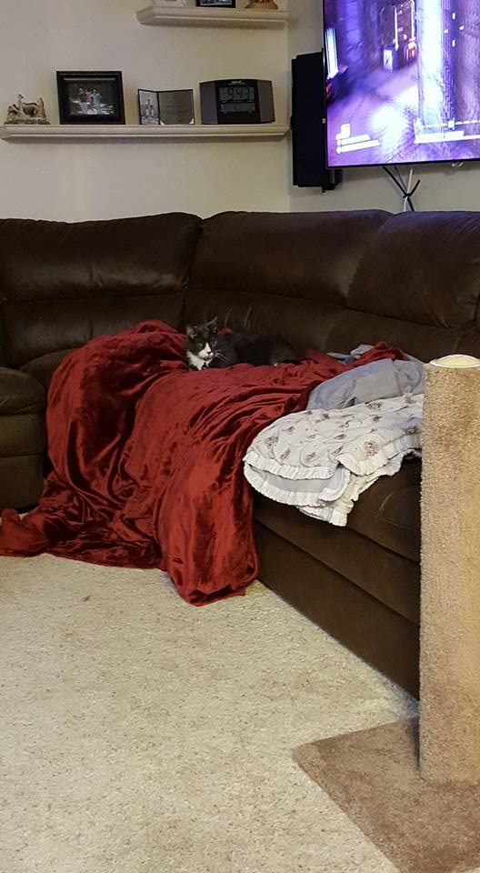Fuzzy Cat is on its way! Many thanks to my hubby for his help.