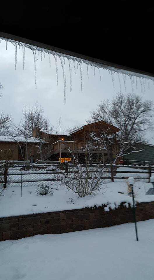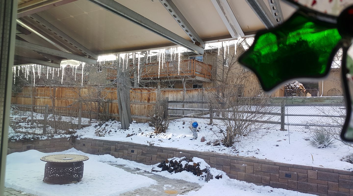 icicles! enjoying the light snow today. The cats have been confused and milling around the house. I promised them I am just on vacation. :)