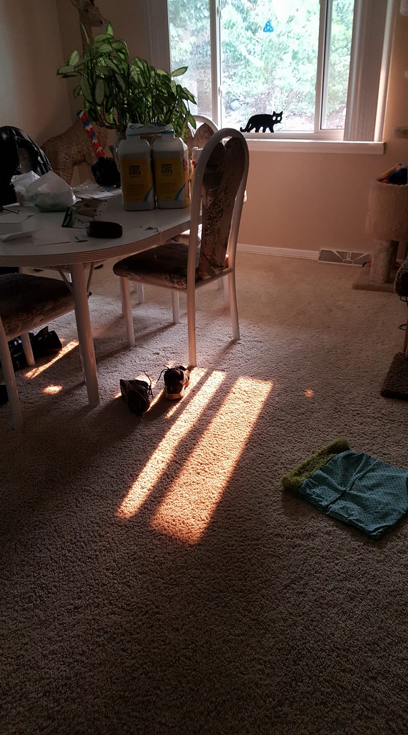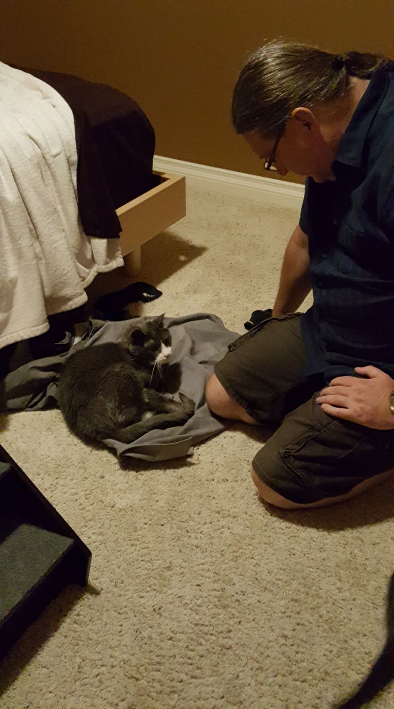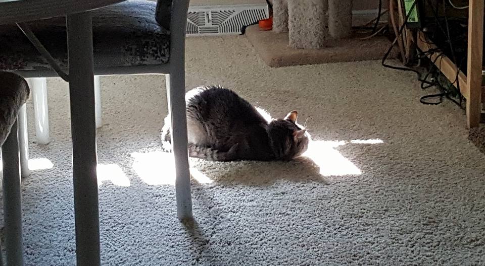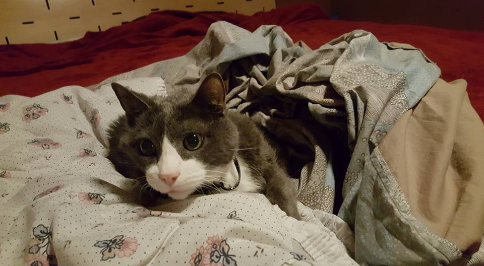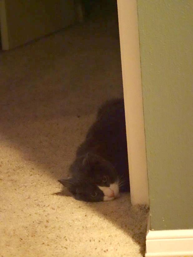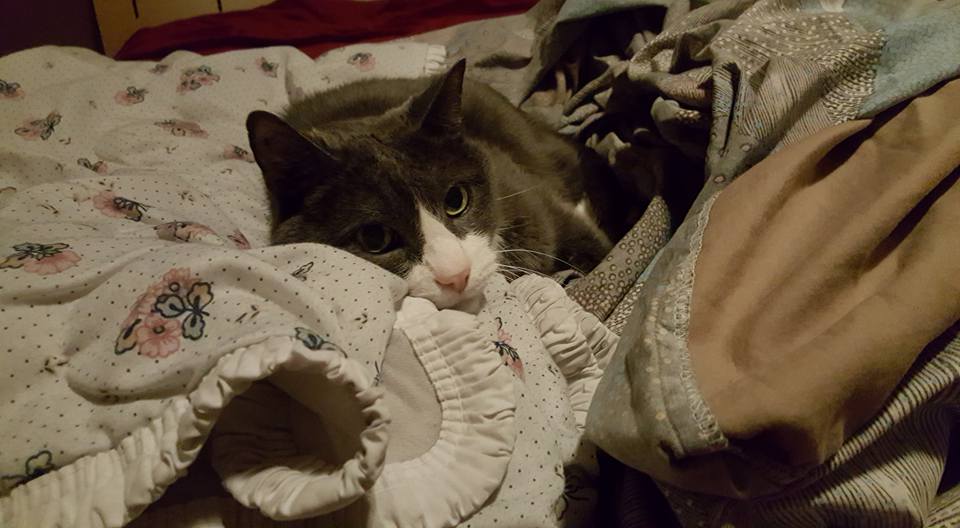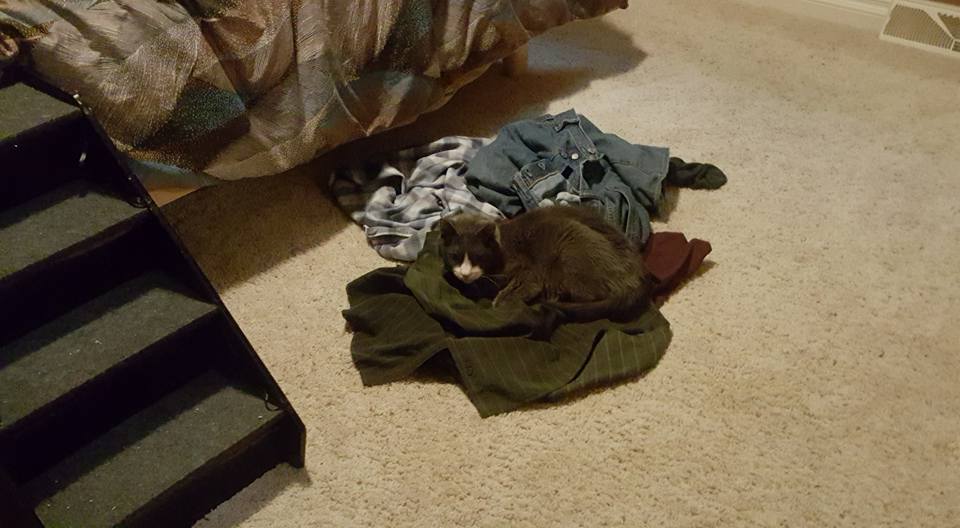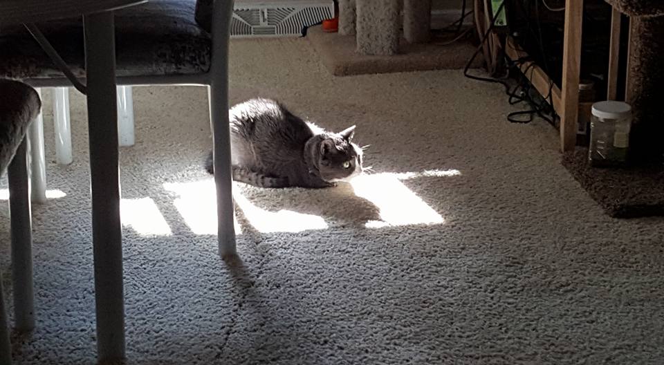 Cirrus thinks it is too bright in the bedroom when I am folding laundry