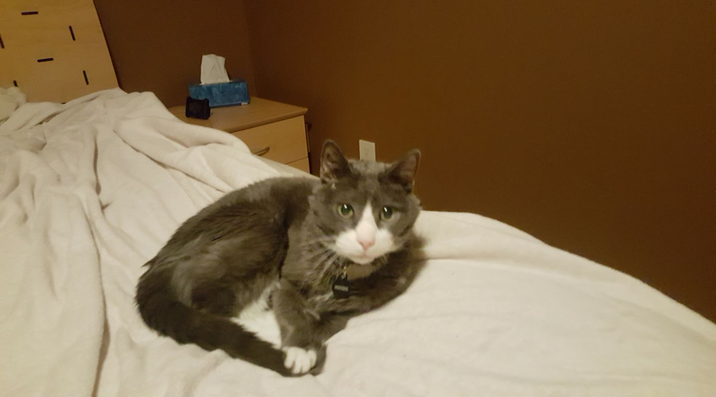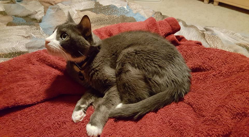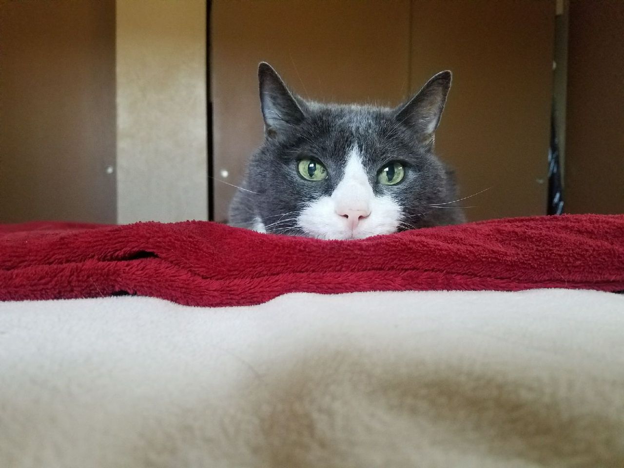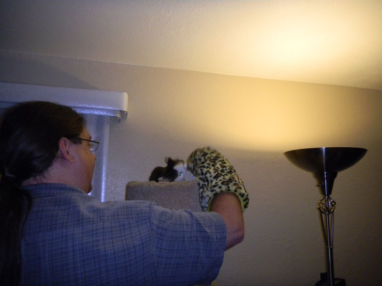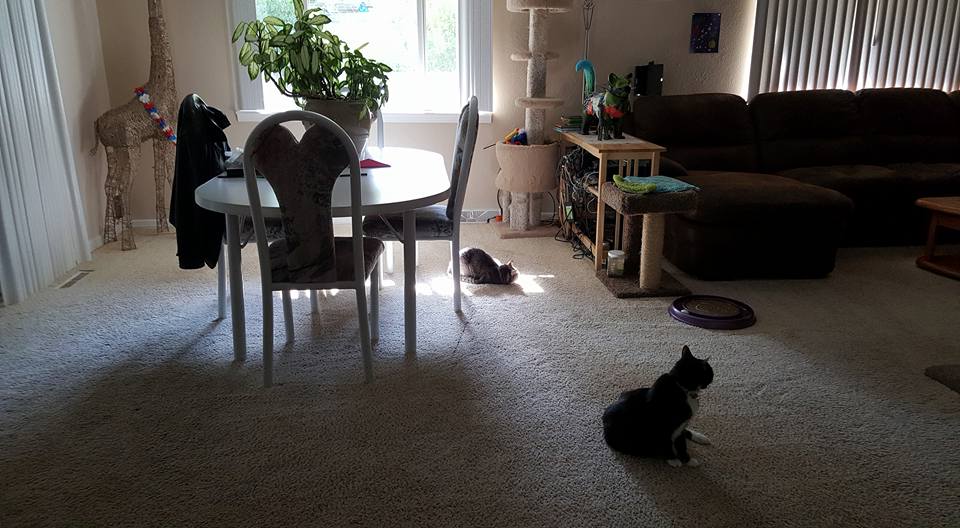 Cirrus thinks it is too bright in the bedroom when I am folding laundry