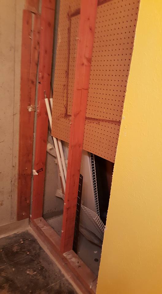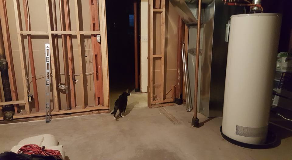 day 1 of the basement project looks good! The bathroom is just not as private as it used to find. In a way, I am going to miss the old phone plug. I don't have anything to plug into it, but it's a neat old relic from technology past.
