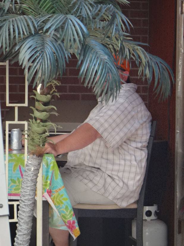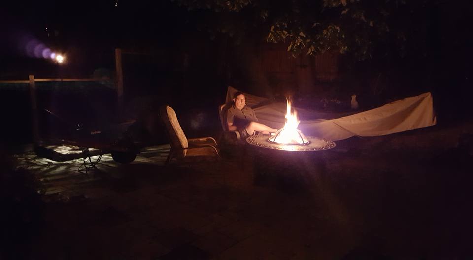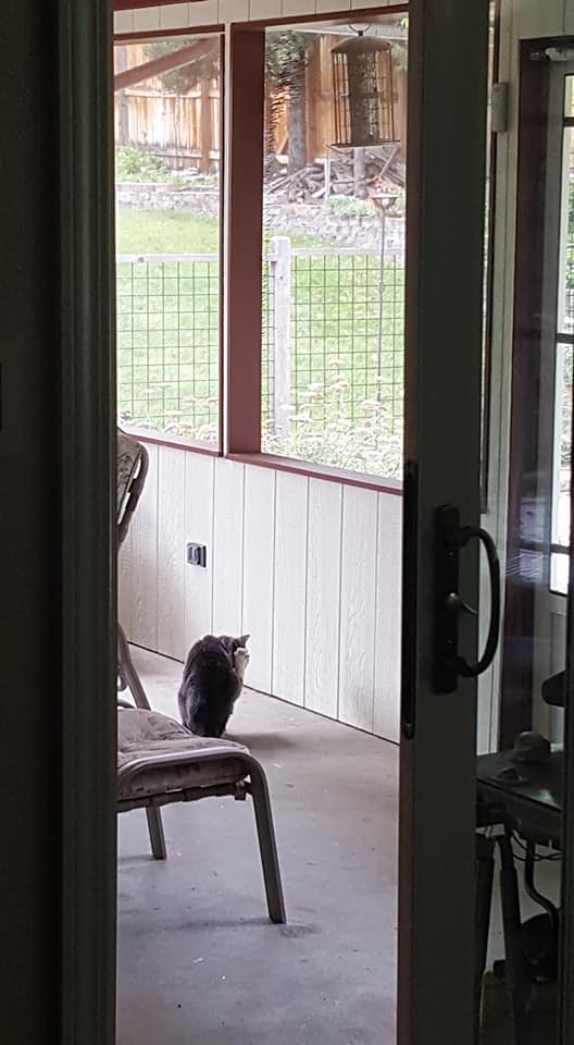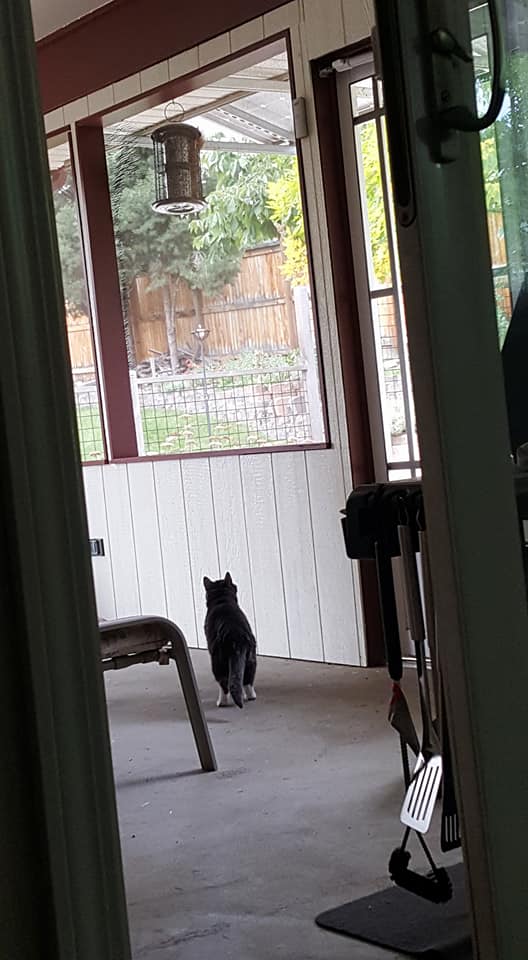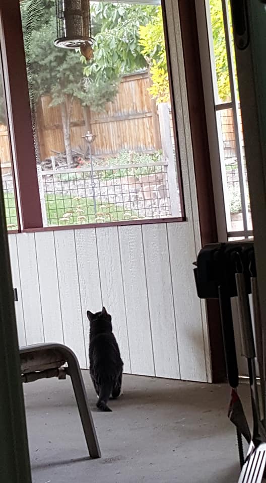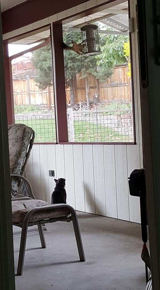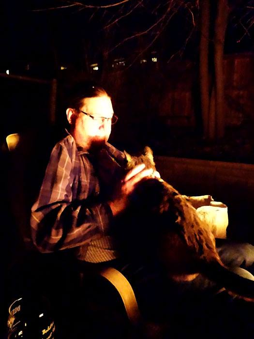 thew zoo, sheltering from the wind on the patio