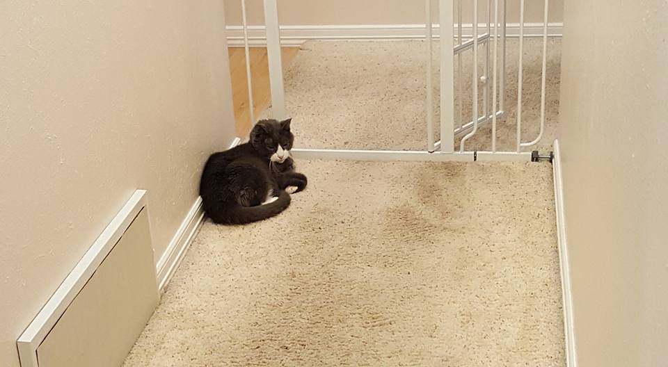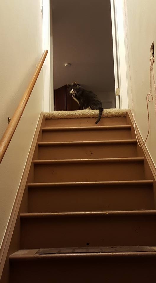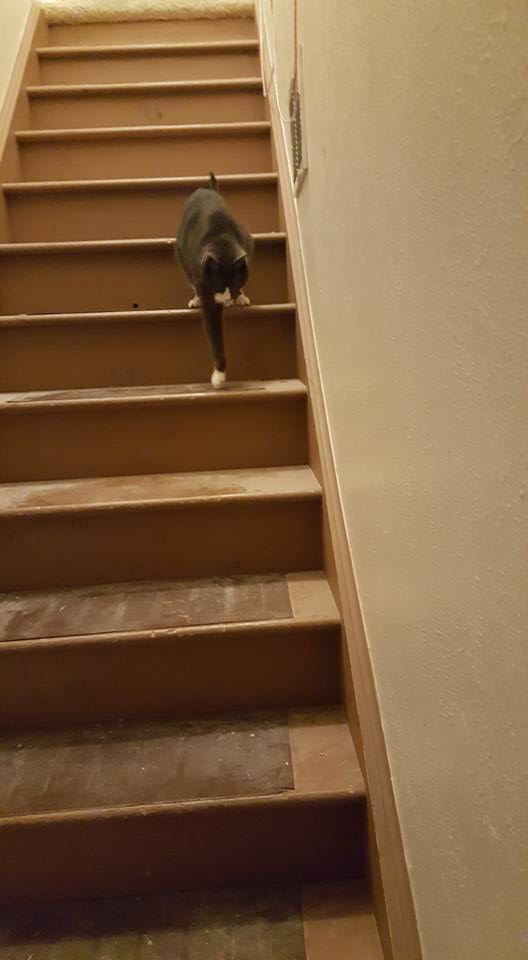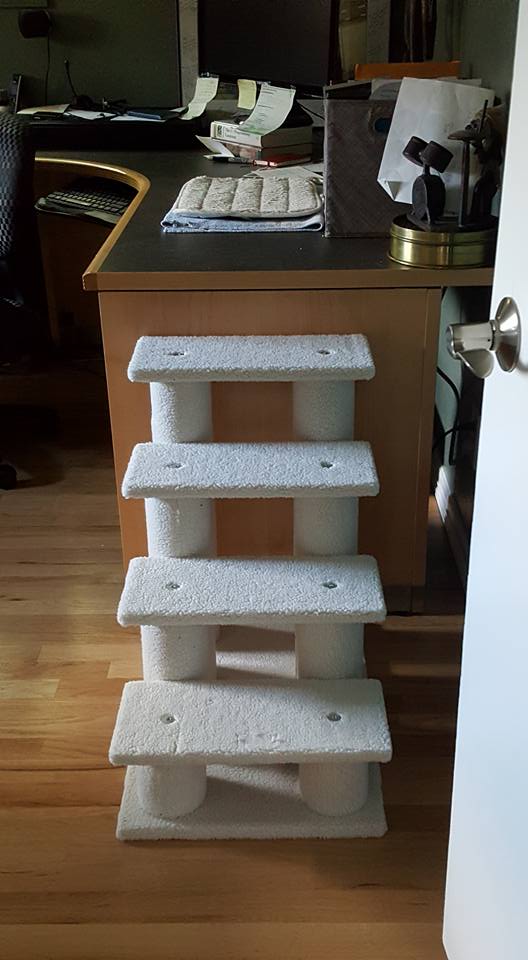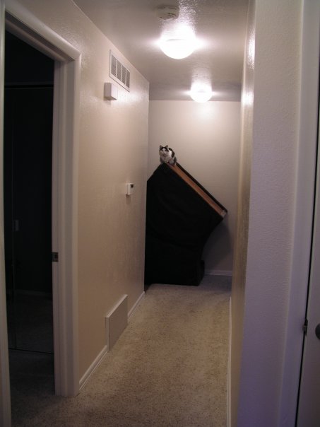 we have arranged the basement bedroom so it will work as a cat sanctuary during carpet installation on Wednesday. I have also been moving knick knacks and art downstairs so they are not in the way during carpet installation. Now it looks like we are moving! ;) Poor Muggins is not taking the activity well.
