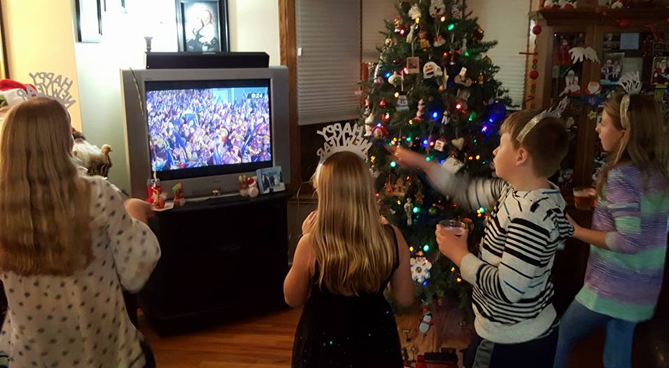 Counting down to midnight! Maddie, Valerie, Will, and Hannah