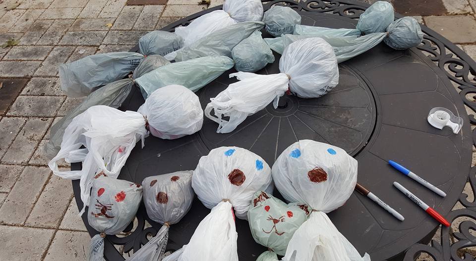 Rob hiding behind the trash bag. I told him Facebook has started to recognize his gag - it asks me, "would you like to tag Schlep Schlep?" :)