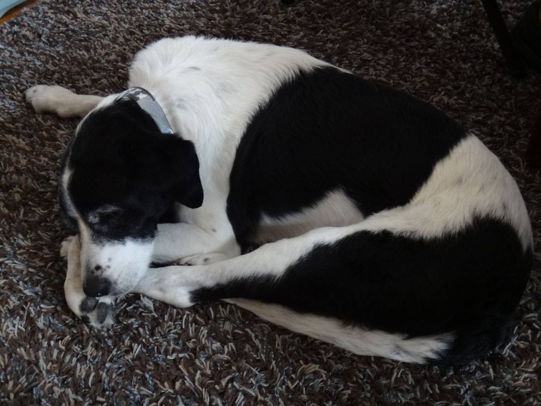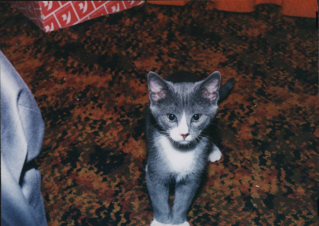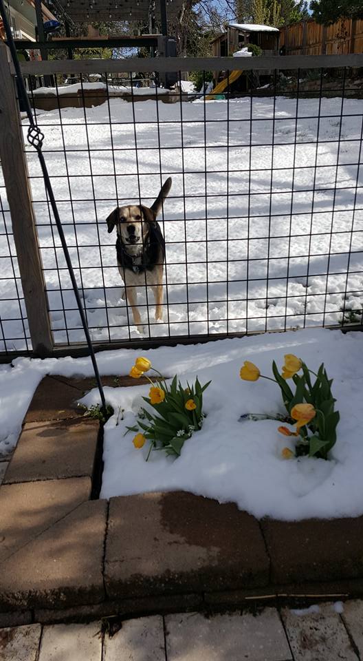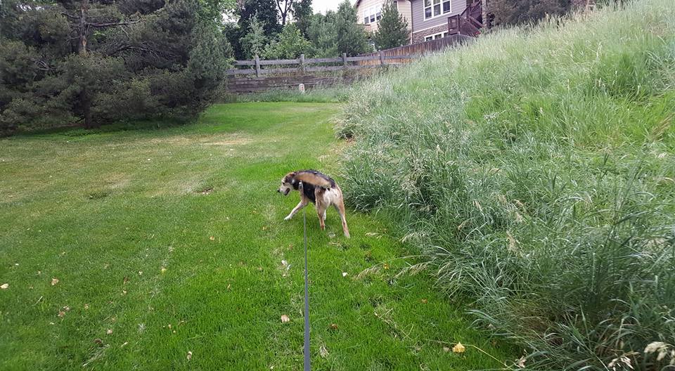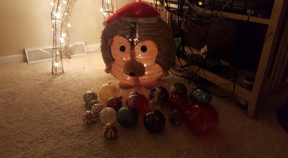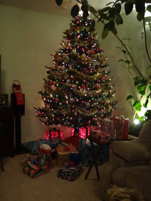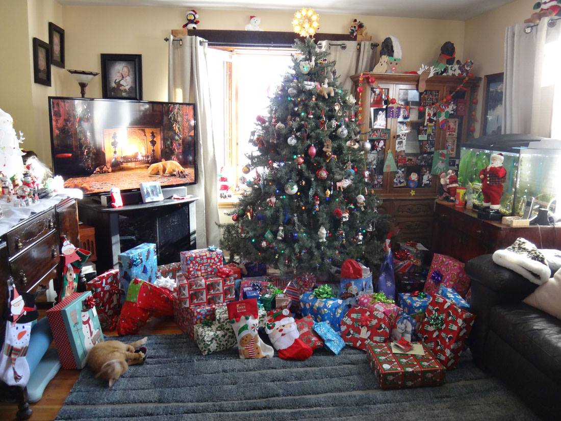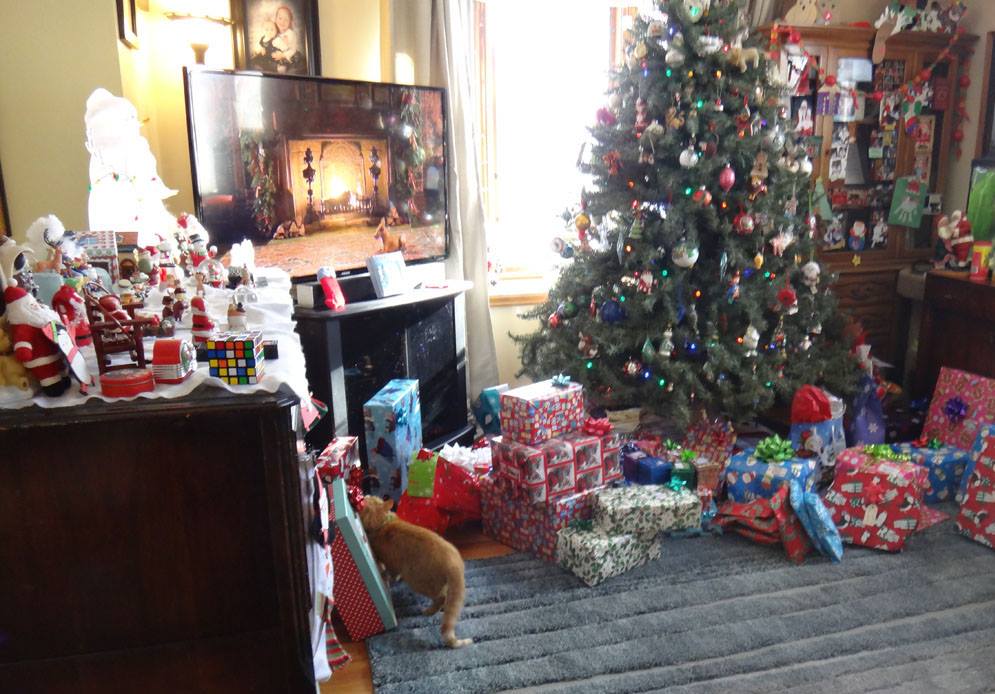 Peaches, looking for a package for herself under the tree