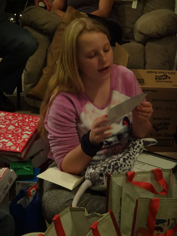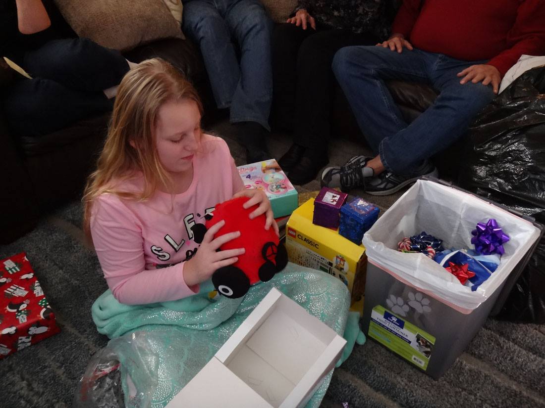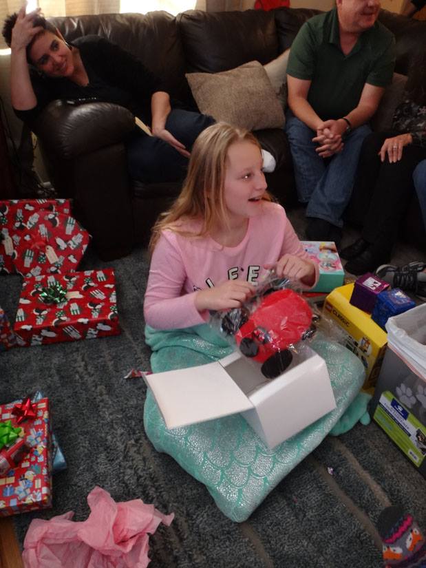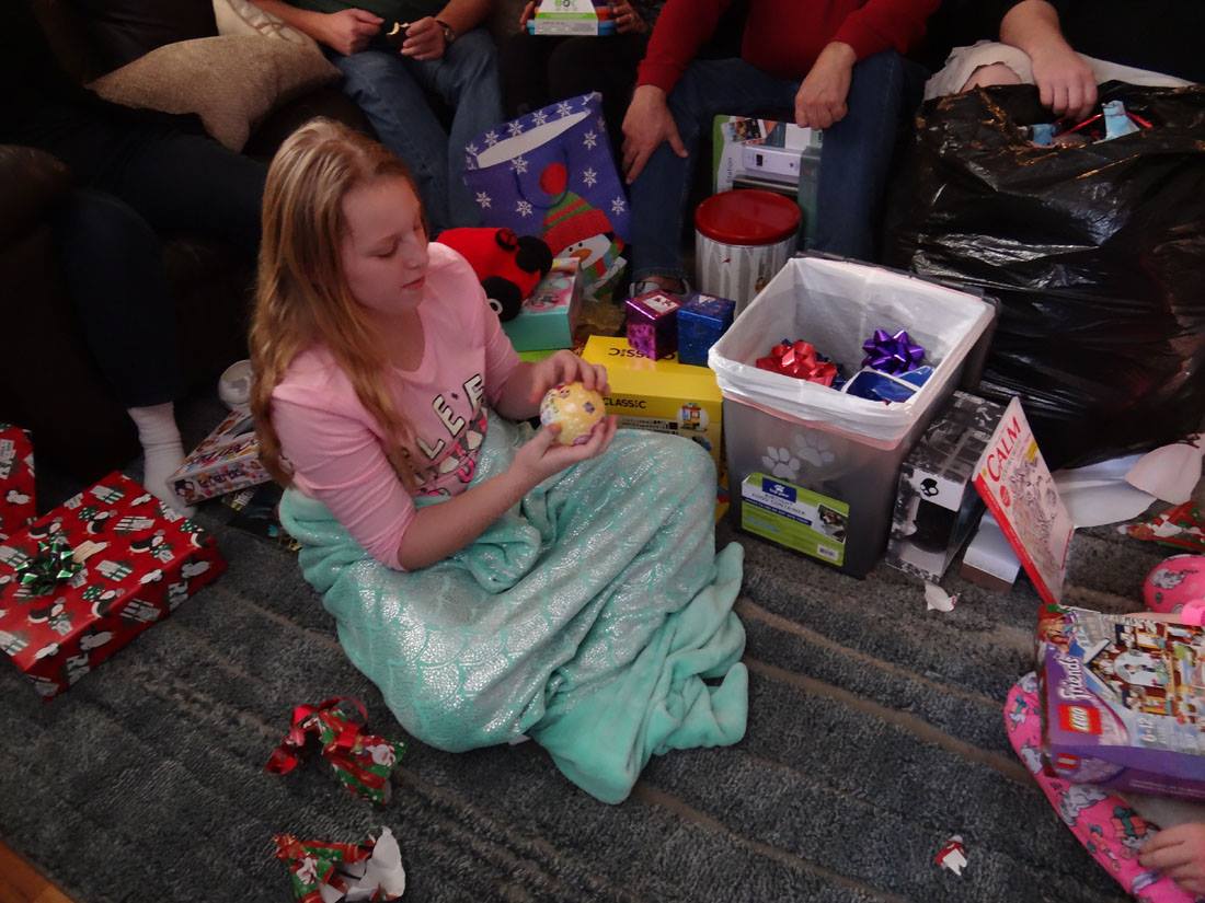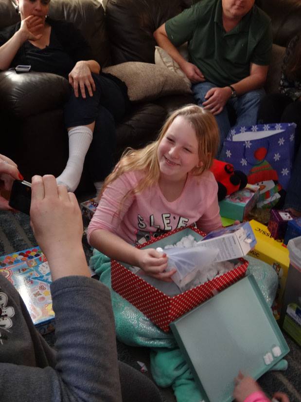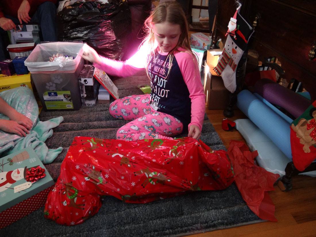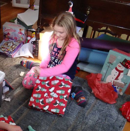 Valerie opens a gift from Santa