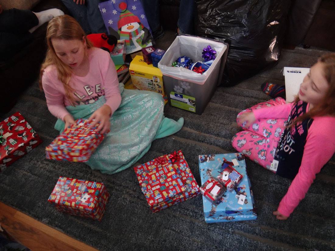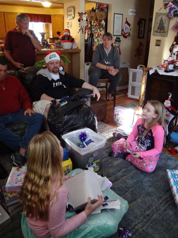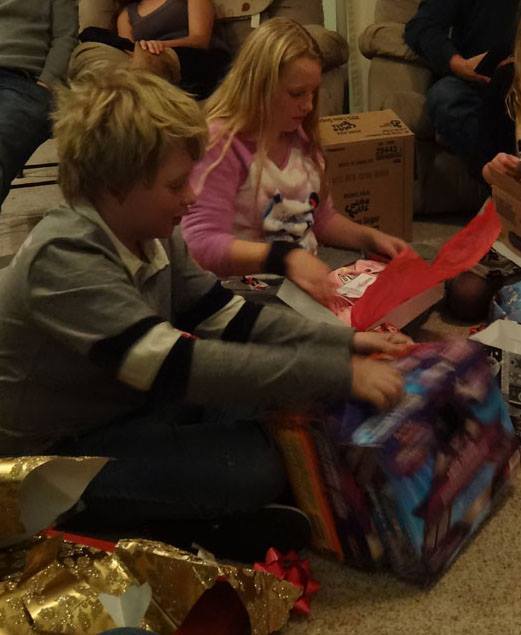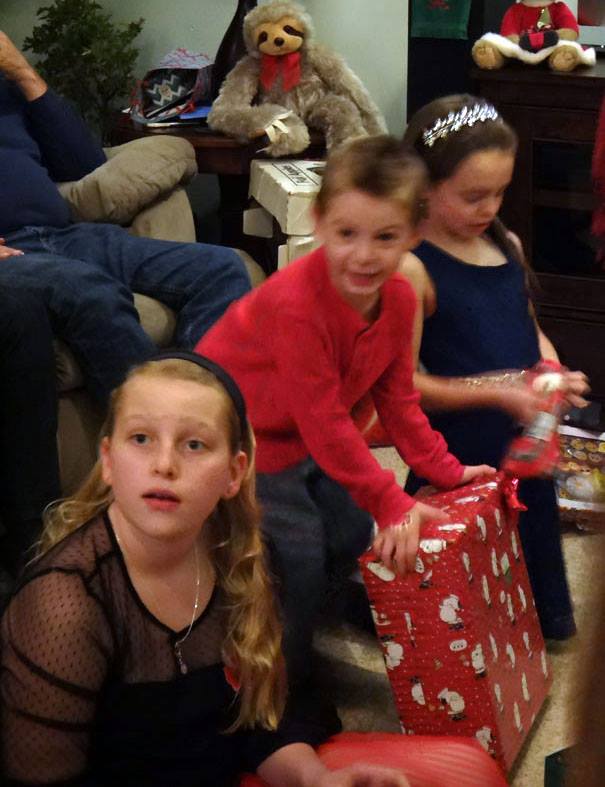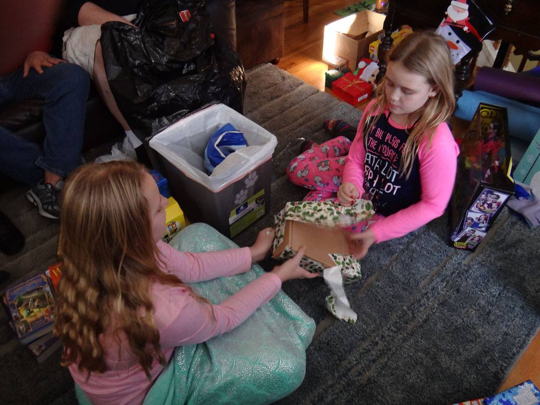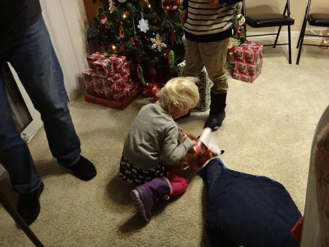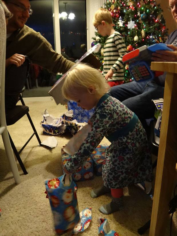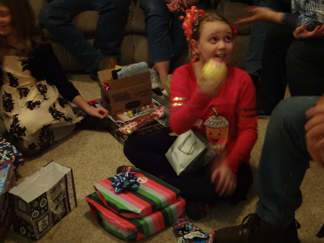 Valerie opens a gift from Santa