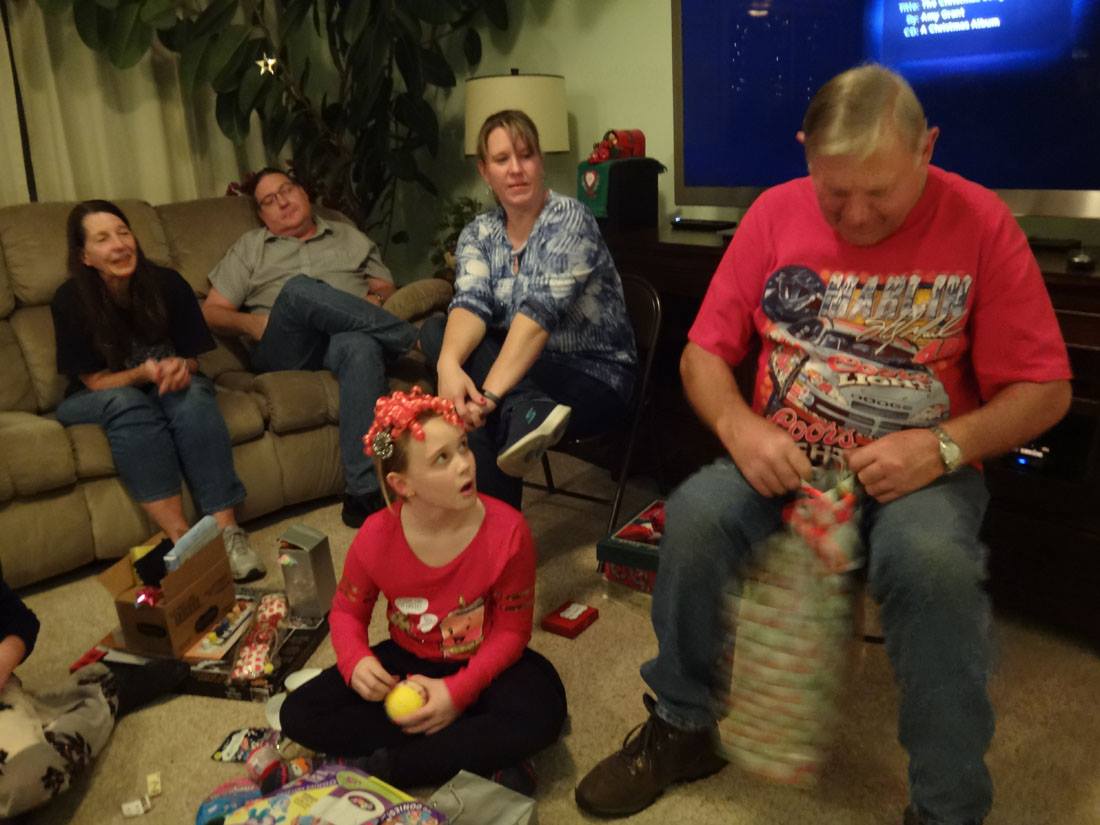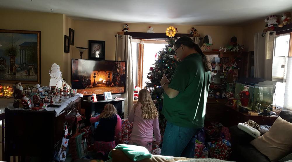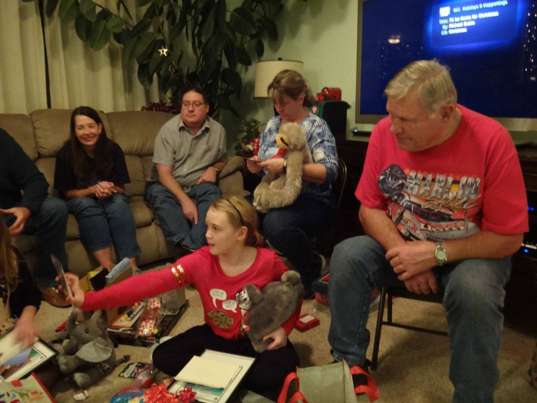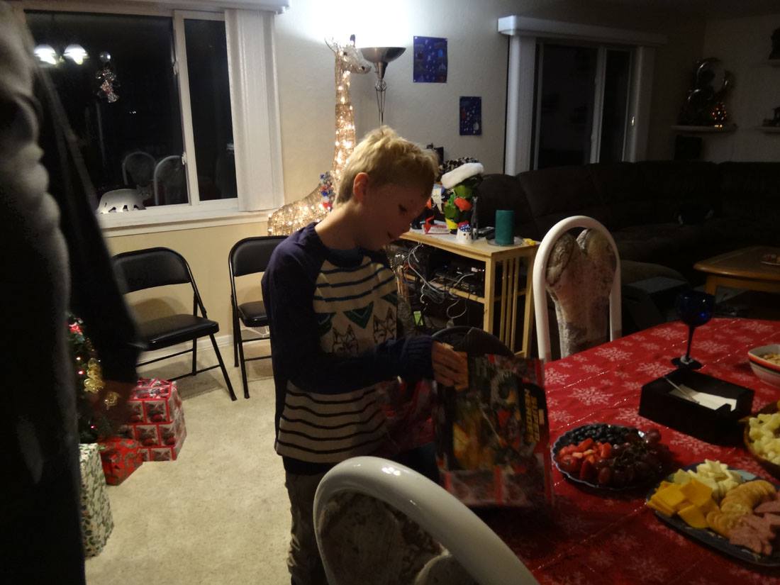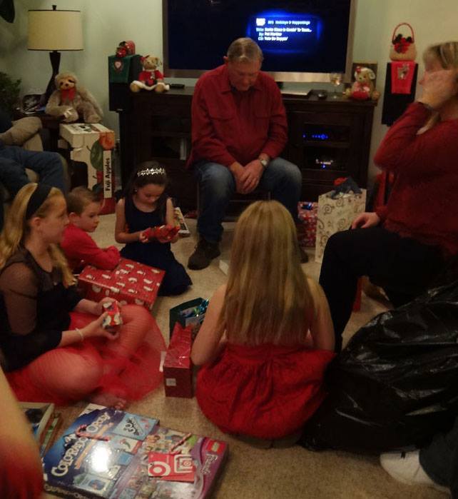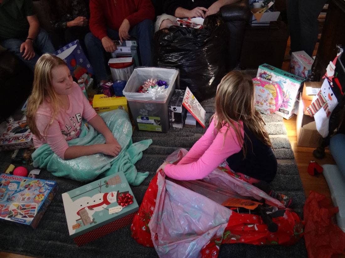 Valerie opens a gift from Santa