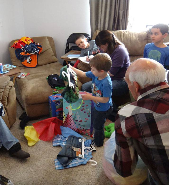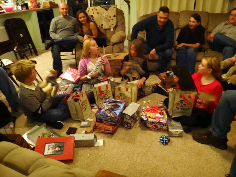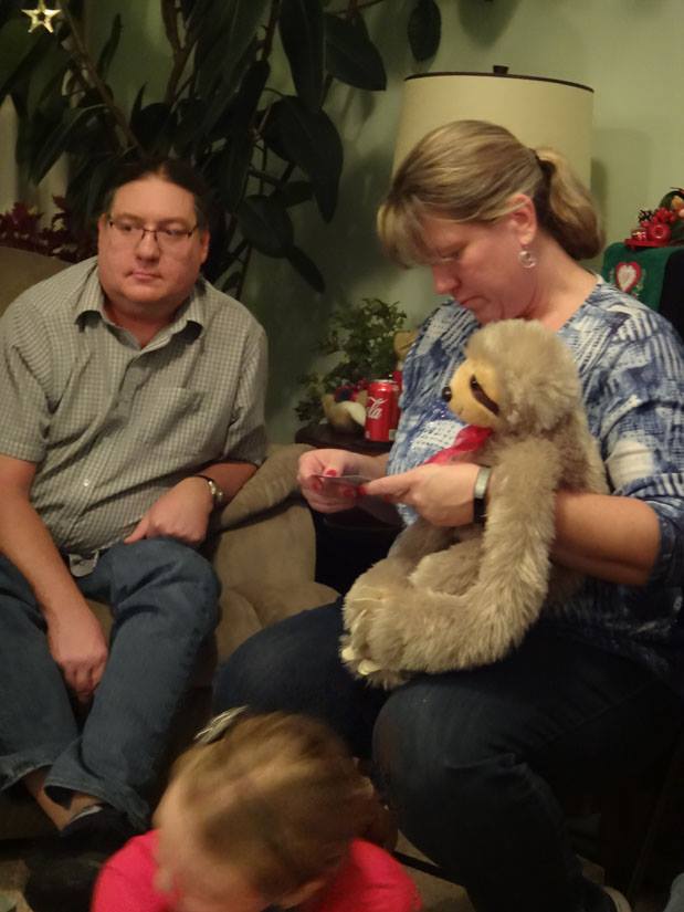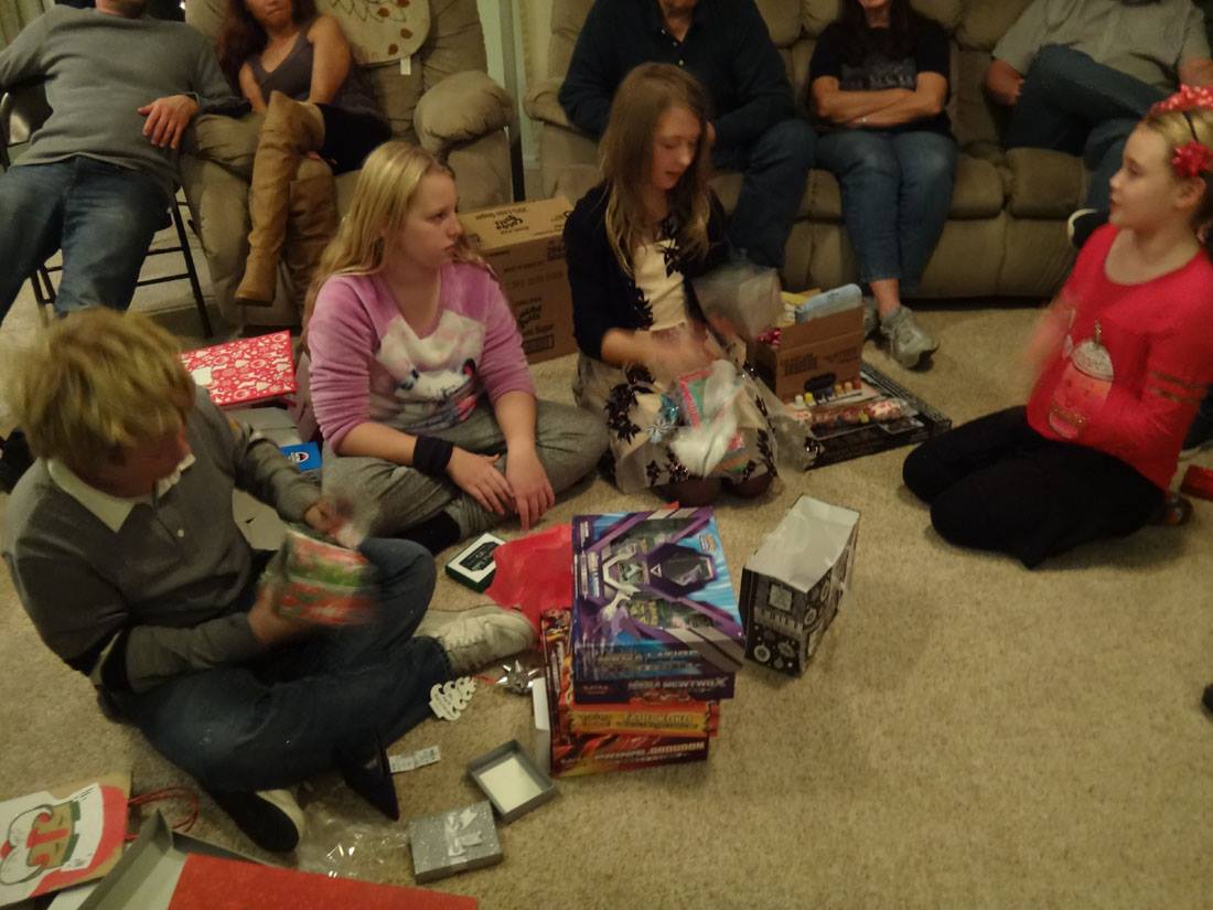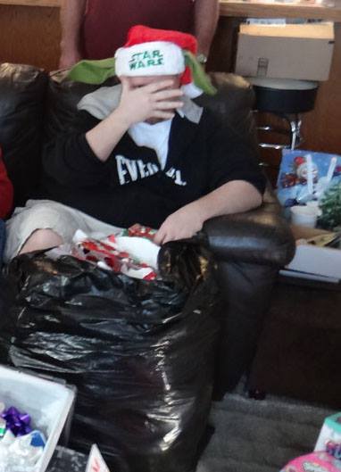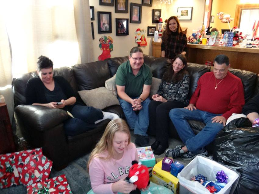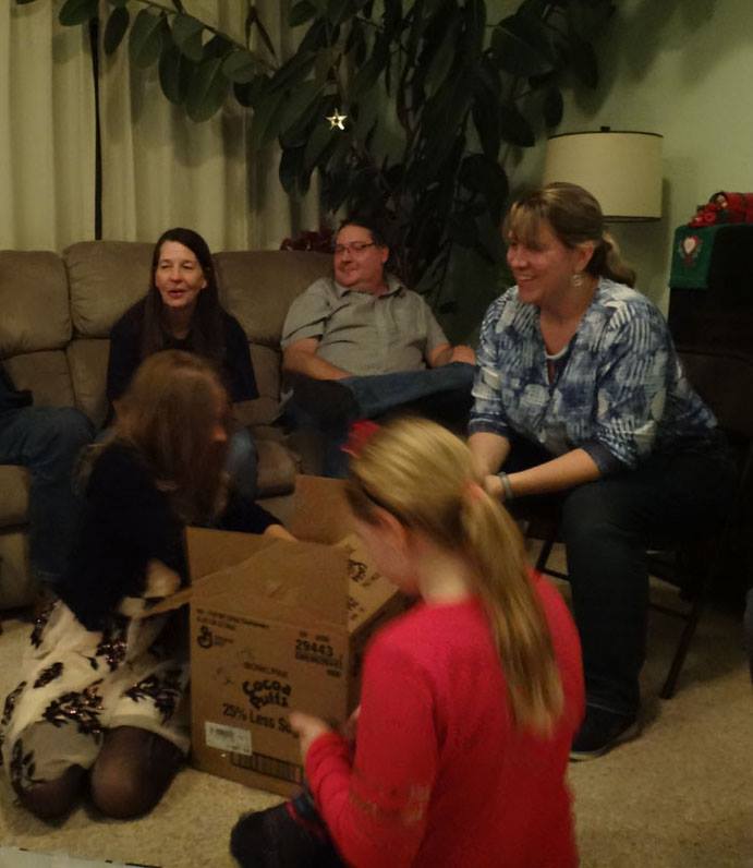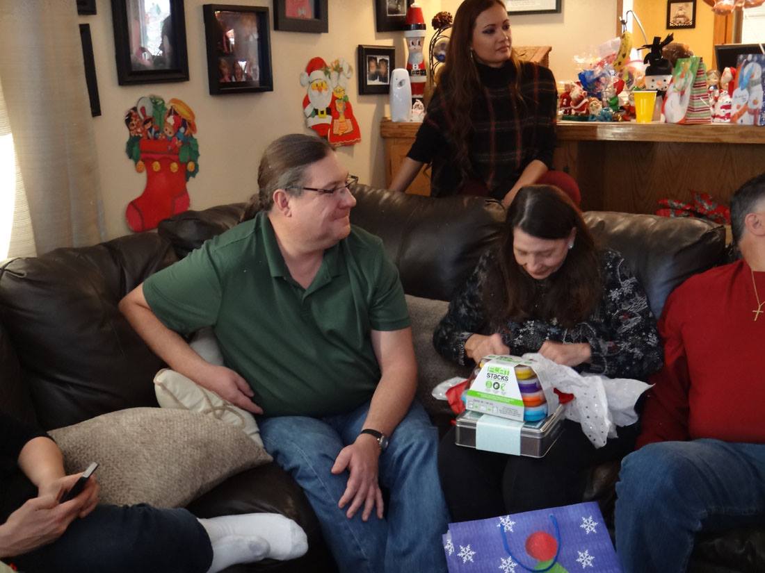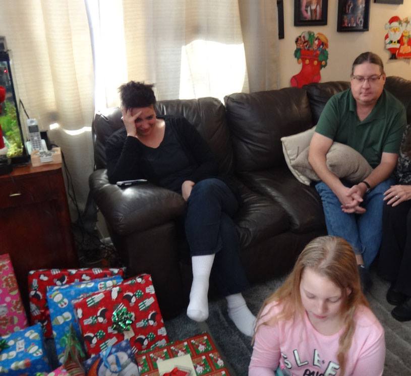 Valerie opens a gift from Santa