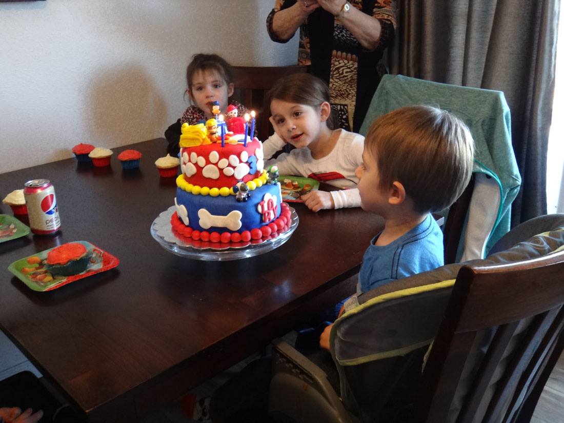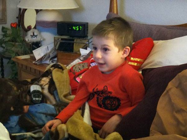 Dexter fell asleep well before midnight - he tried! It's hard being 13.