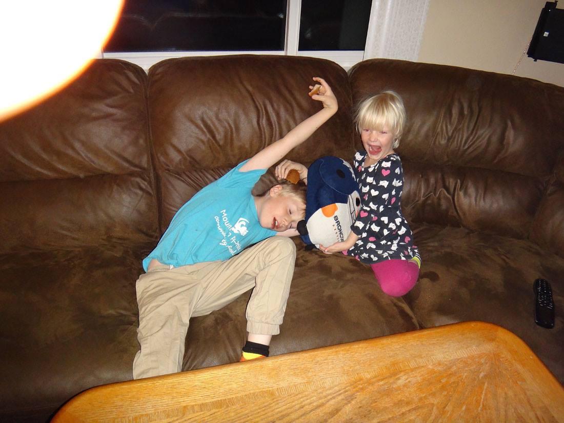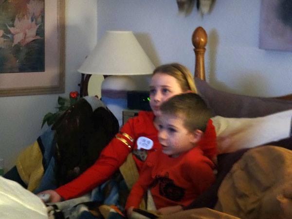Valerie and Troy, watching Battle bots