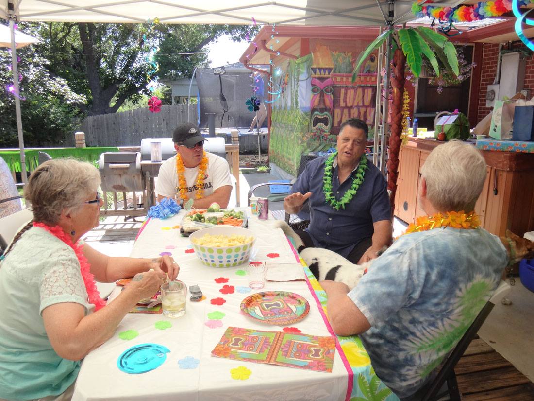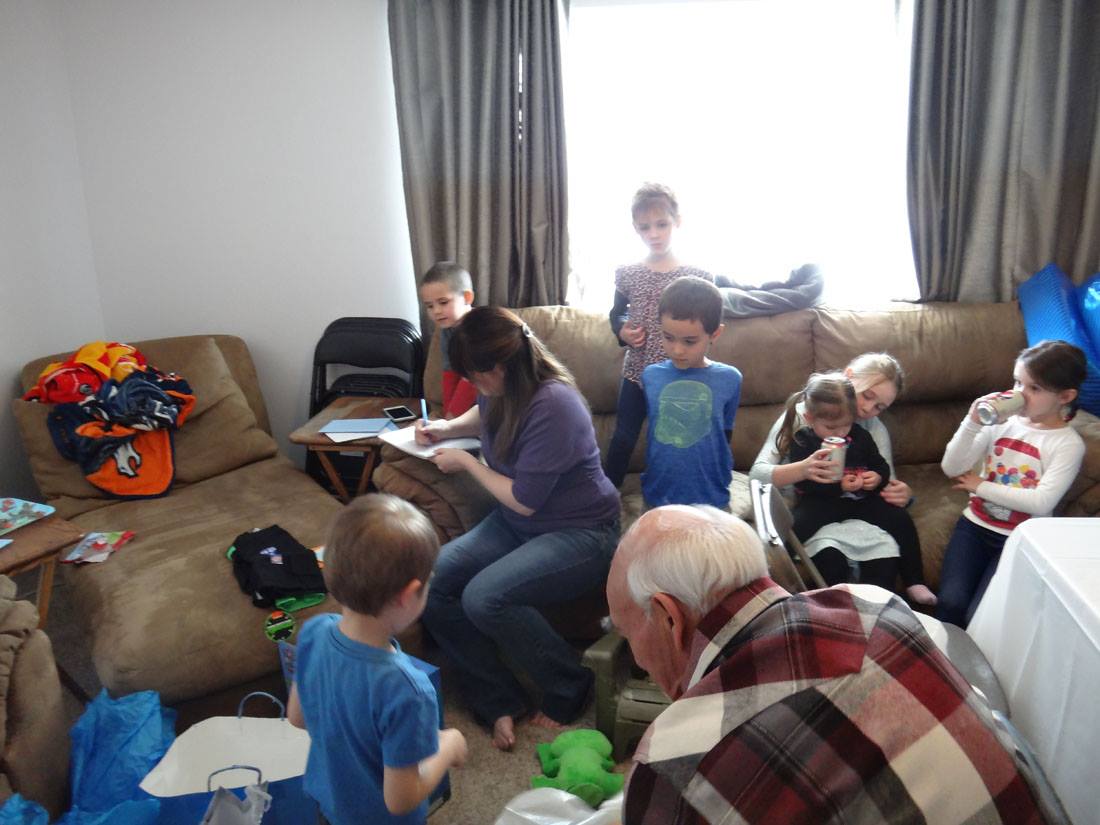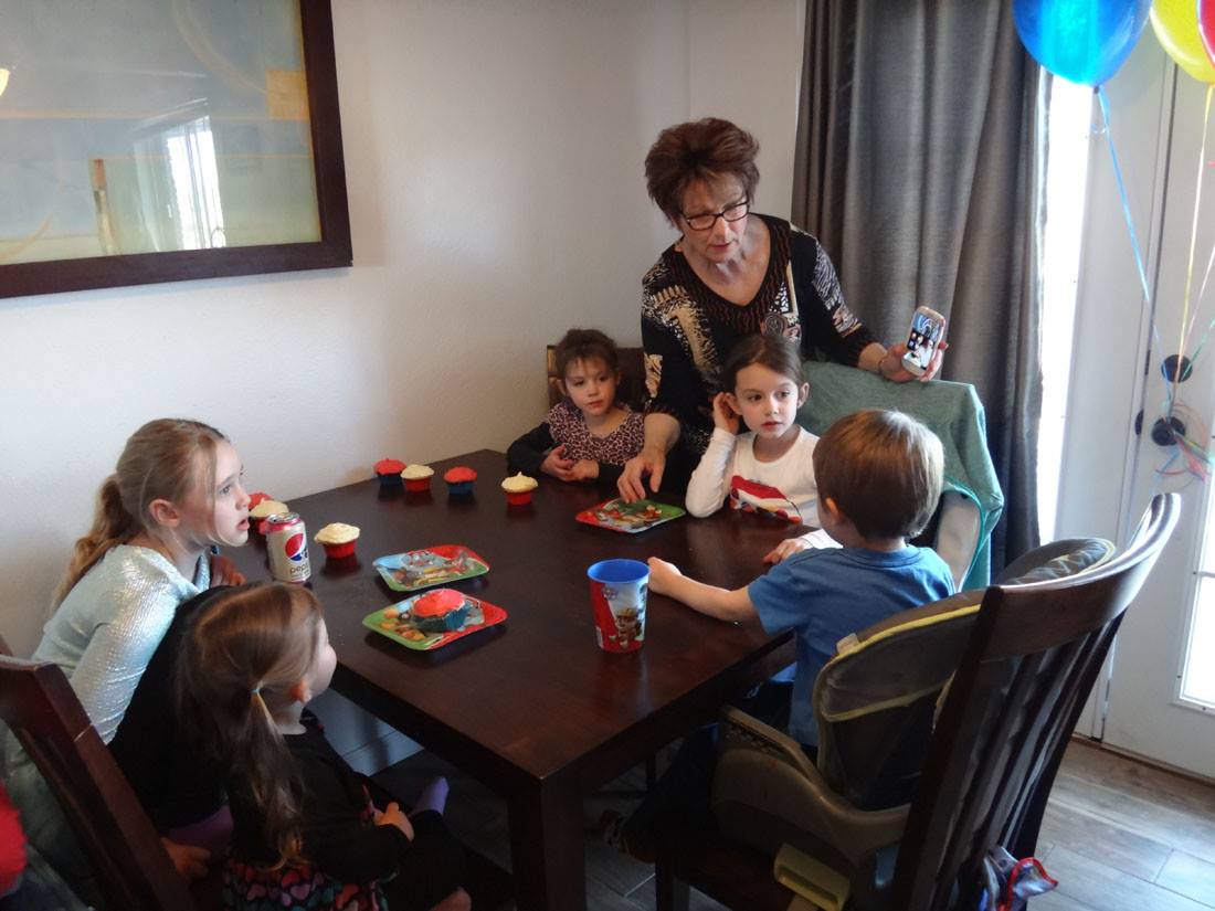 Terry, Grandma Kitty, Uncle Mark, Gwenn, Maddie, Rannae, and Auntie Linda
