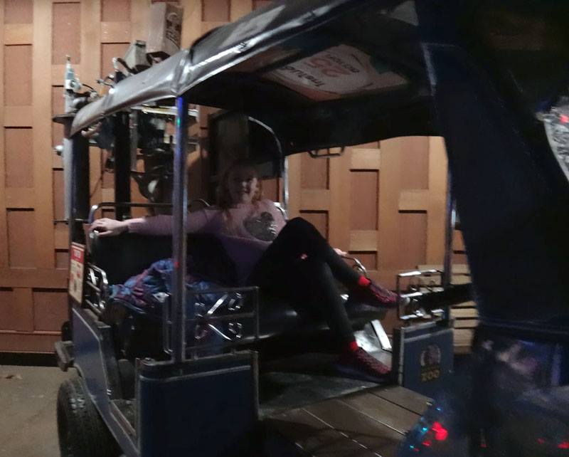 Mike tried out the VR with a game where you ride a roller coaster and shoot zombies