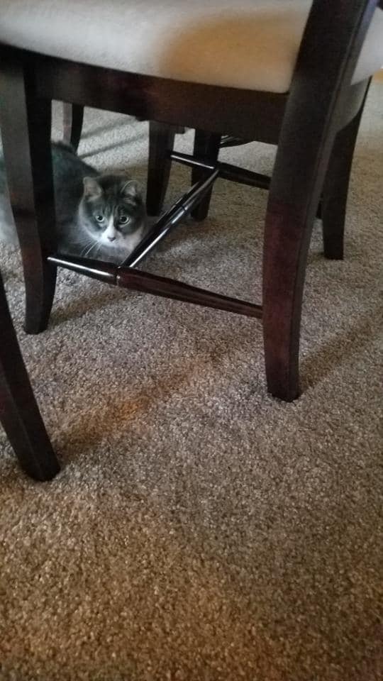 So cute... Muggins is awaiting house keeping services. He had puked on his blanket, so it's in the wash and I am changing his litter. I haven't seen him in the chair before - a mini adventure!