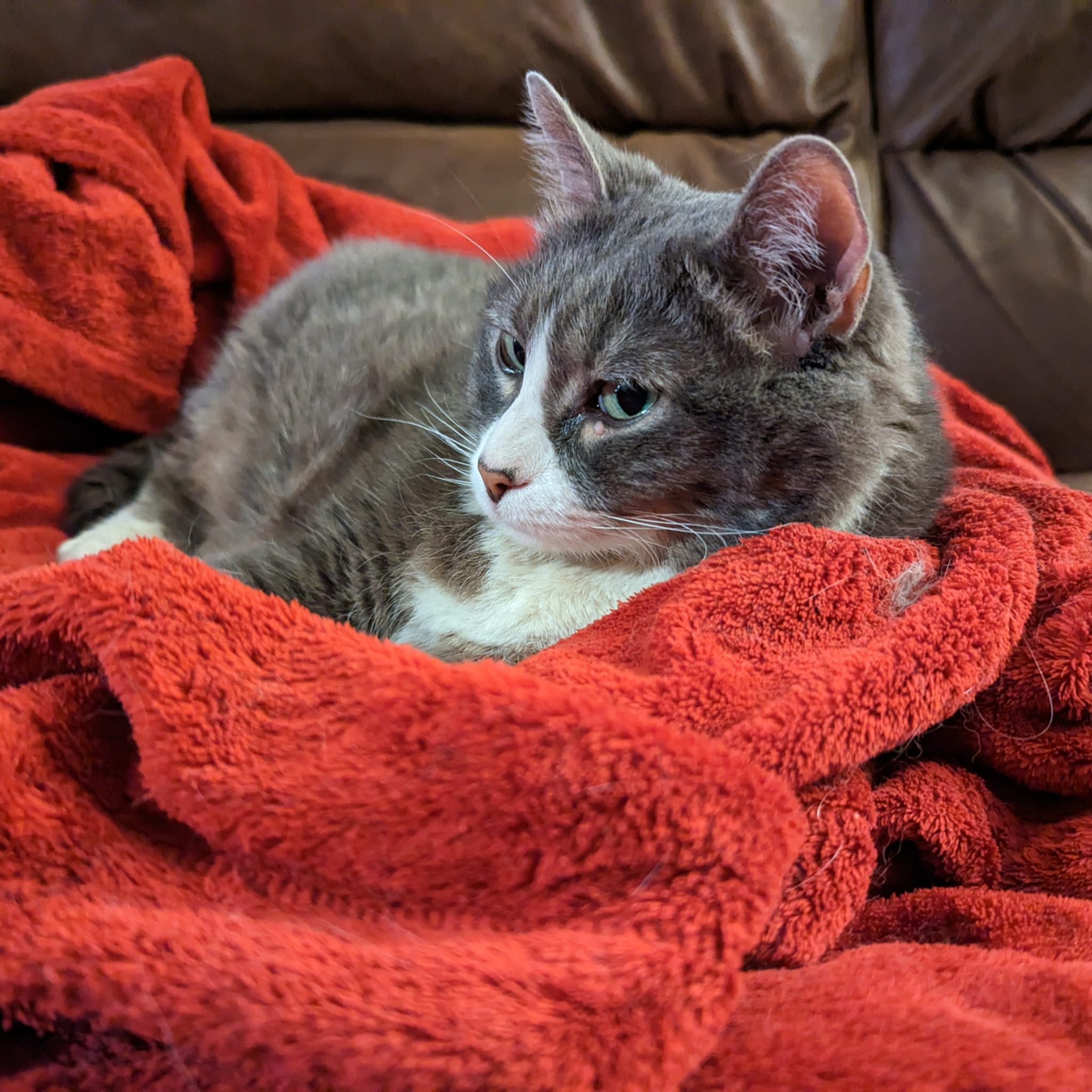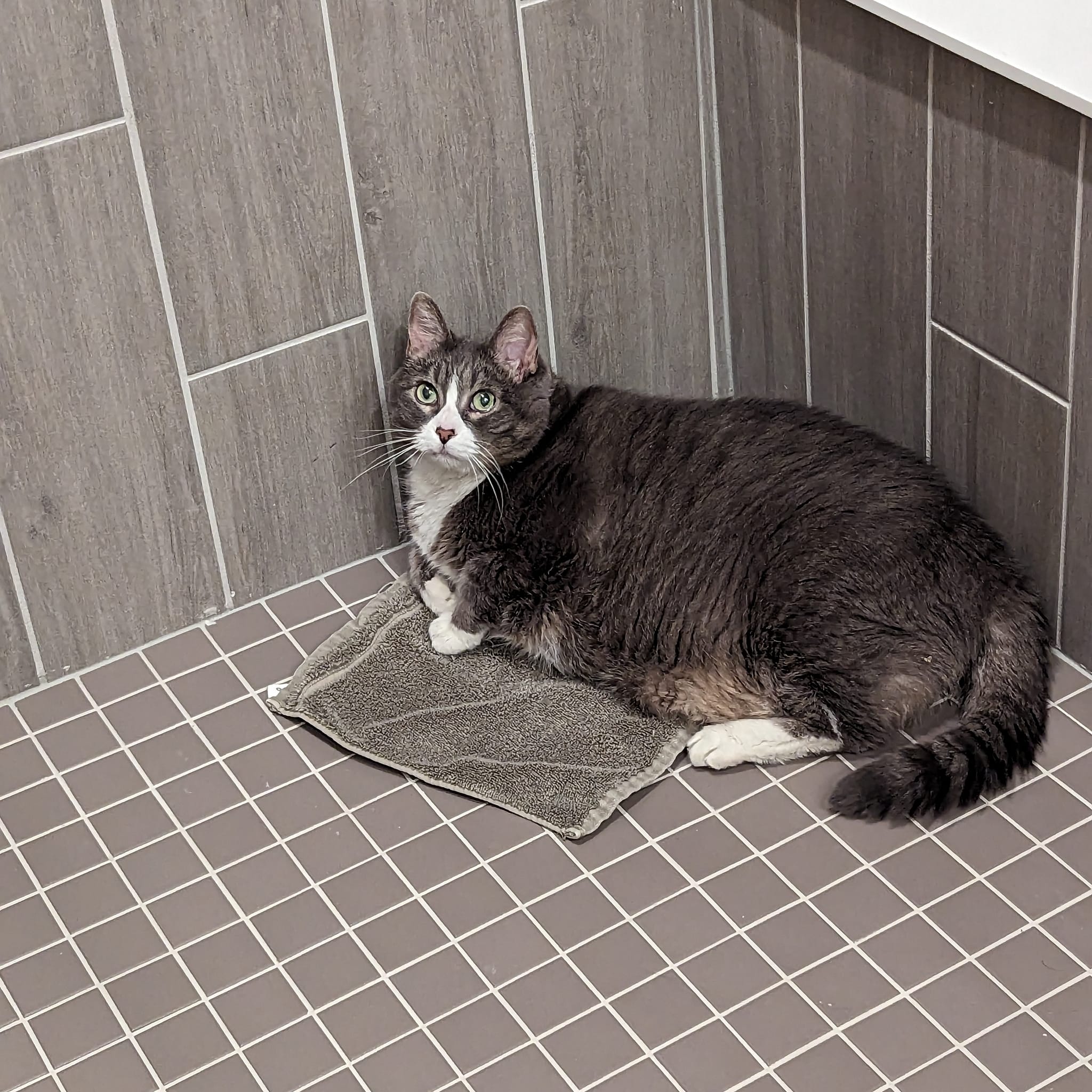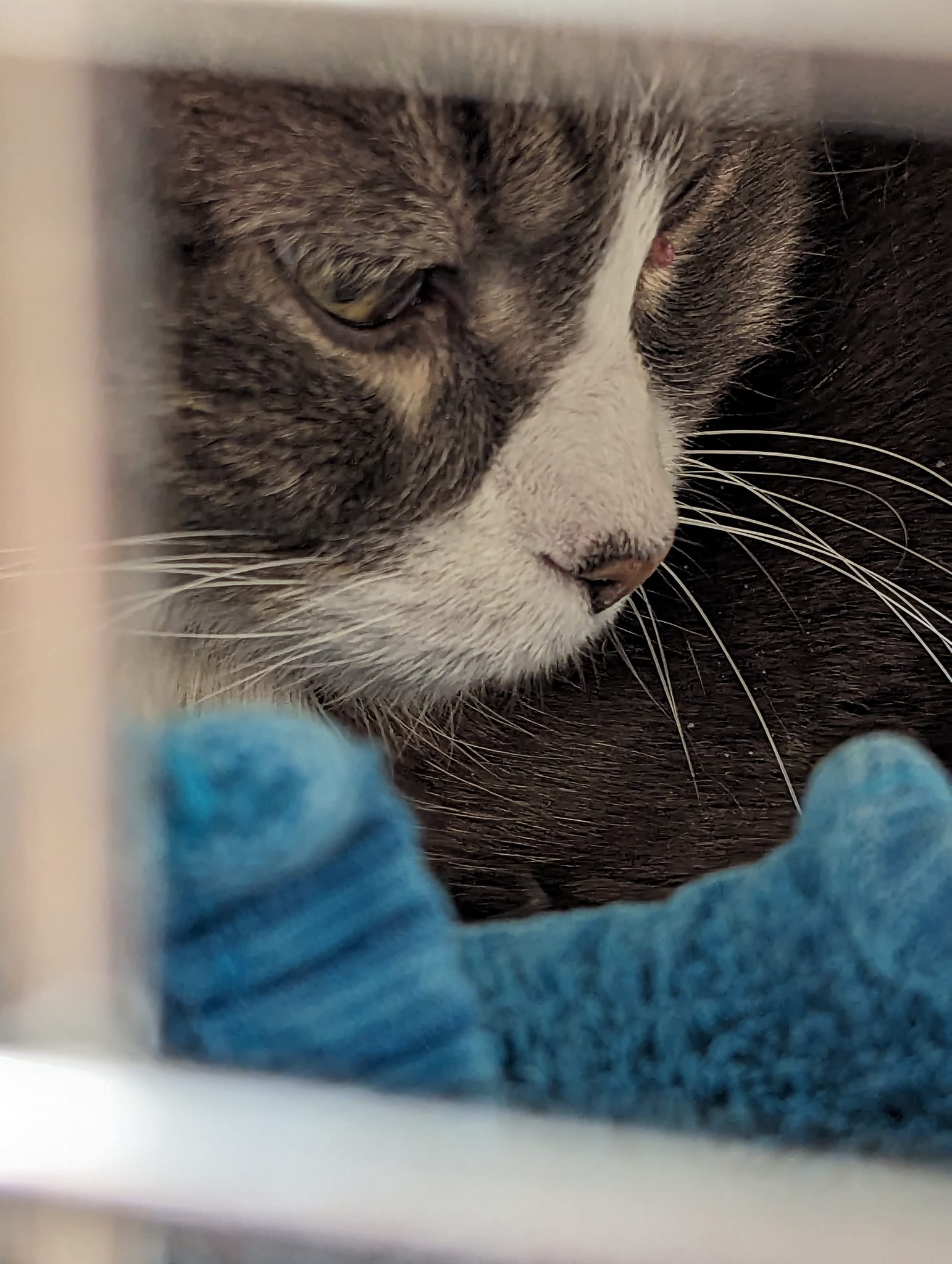 At the ER vet with Ziggy this morning. She hasn't been feeling all week, with substantially reduced appetite and water intake. Hoping she is just dehydrated from a bad cold. She's still feisty, though! We very quickly went from "Ziggy is so cute!" to a delivery of Ziggy wrapped up in the towel from her carrier after they moved me to a private room. Vitals were good, no fever. Waiting for the vet shift change to complete.