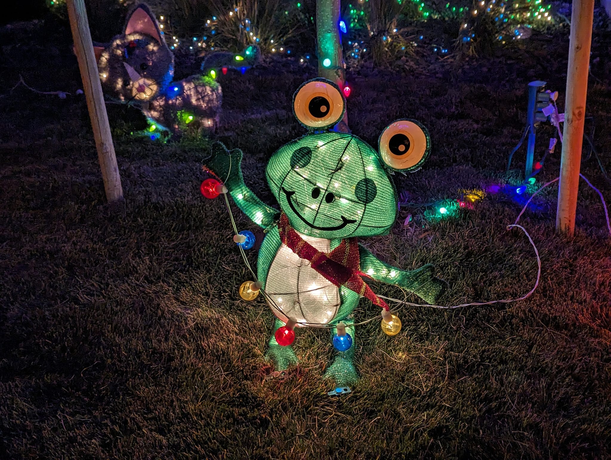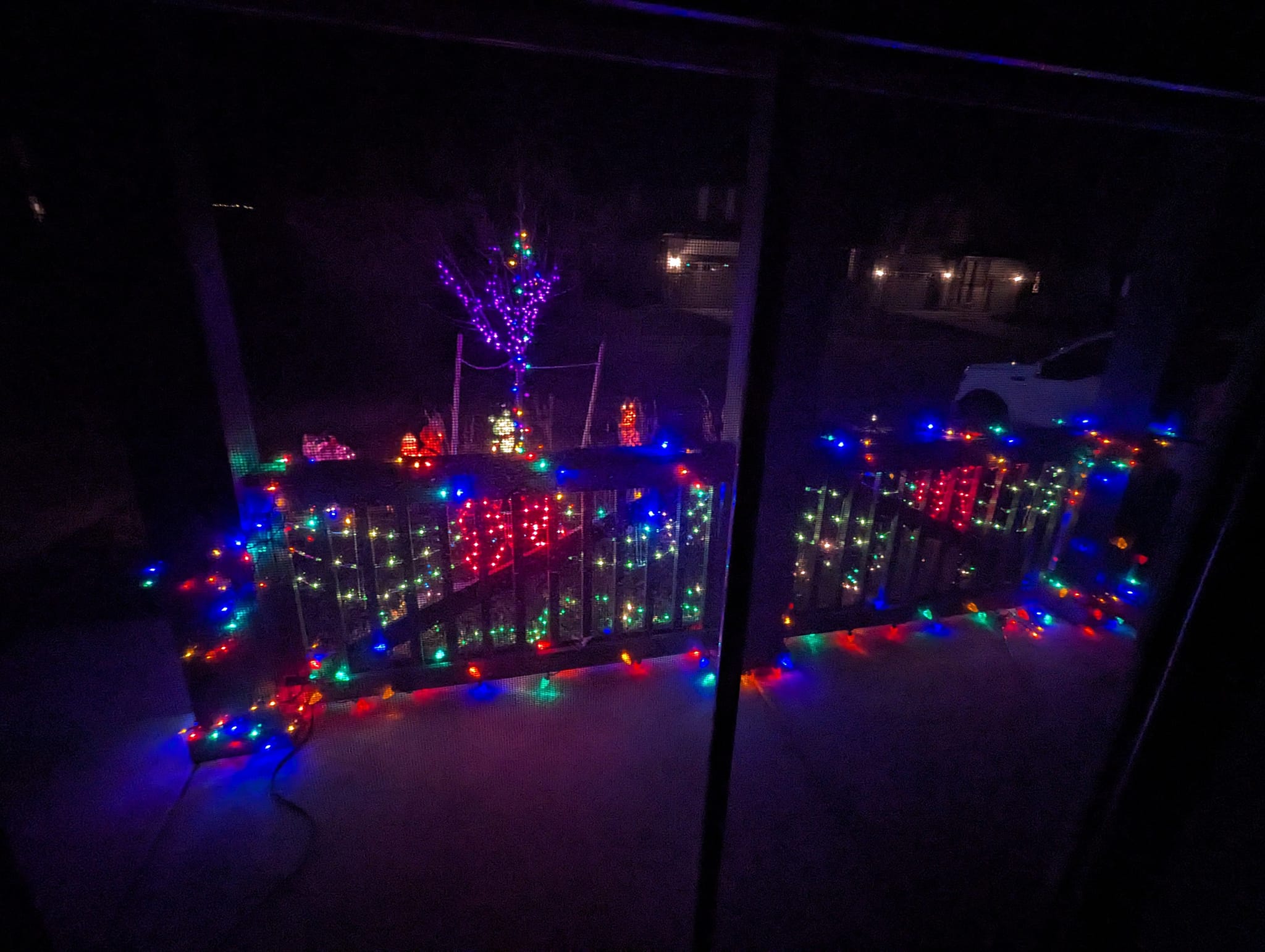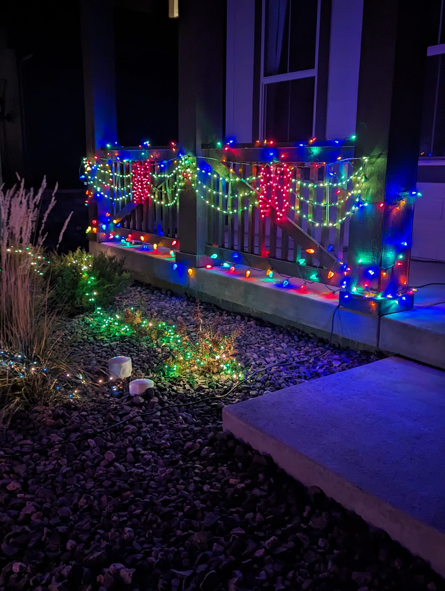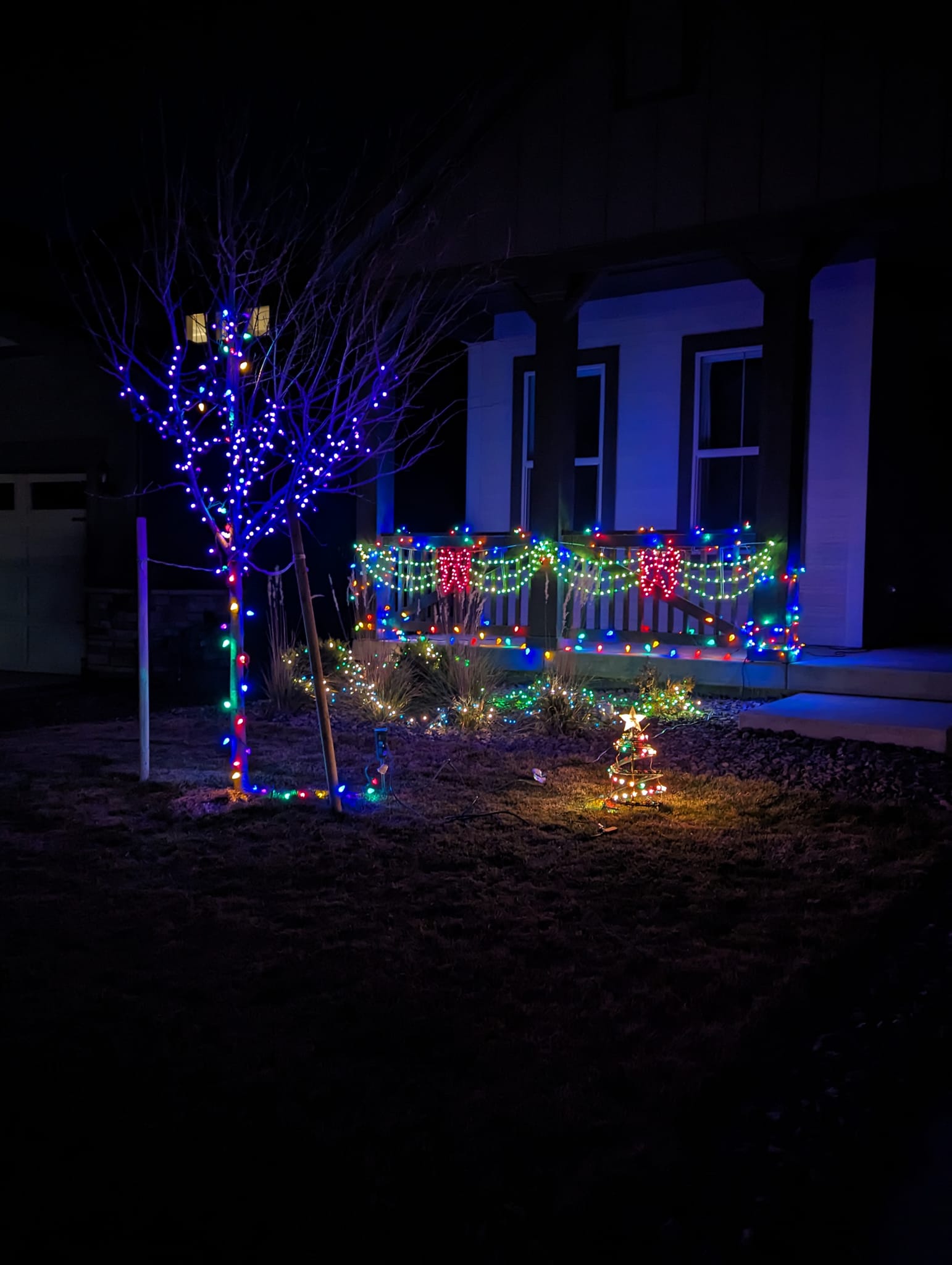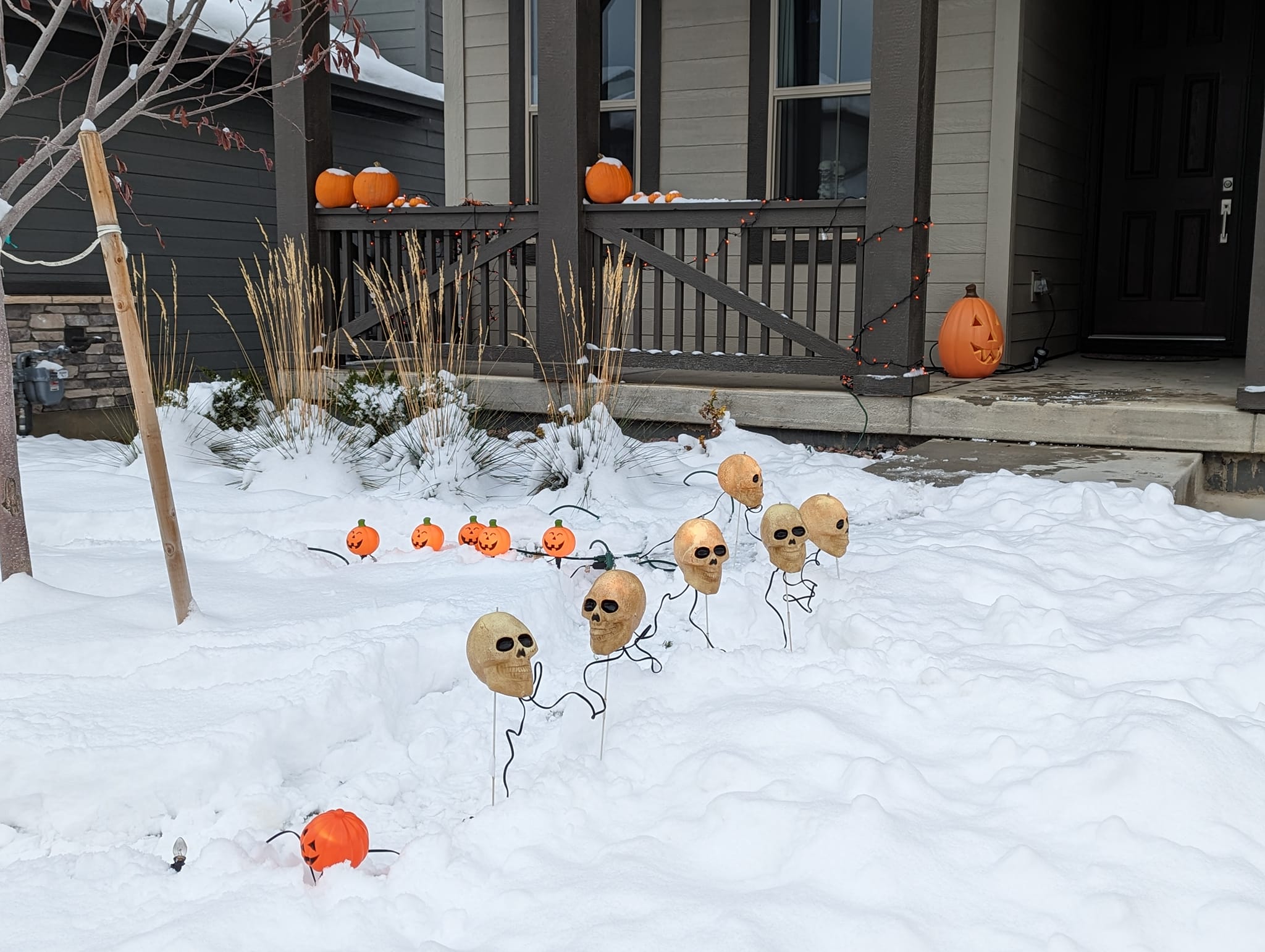And then there were 3. The wind did a number on one of my old extension cords... Really peeled back the protective cover. Glad I saw it before the snow. Ziggy's decoration is also happy.