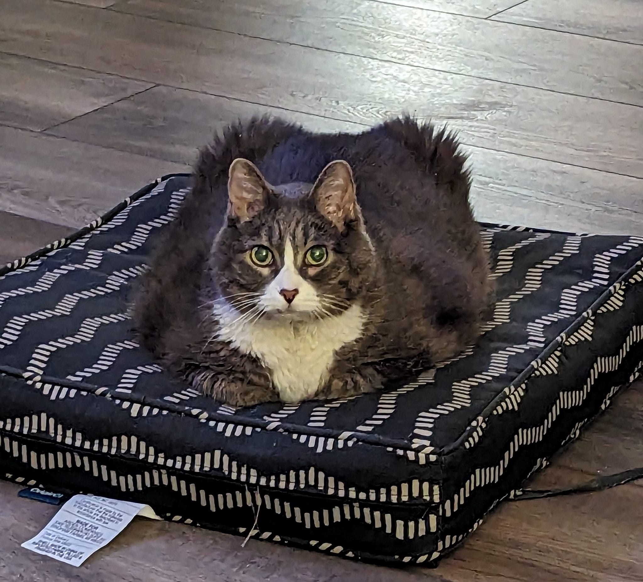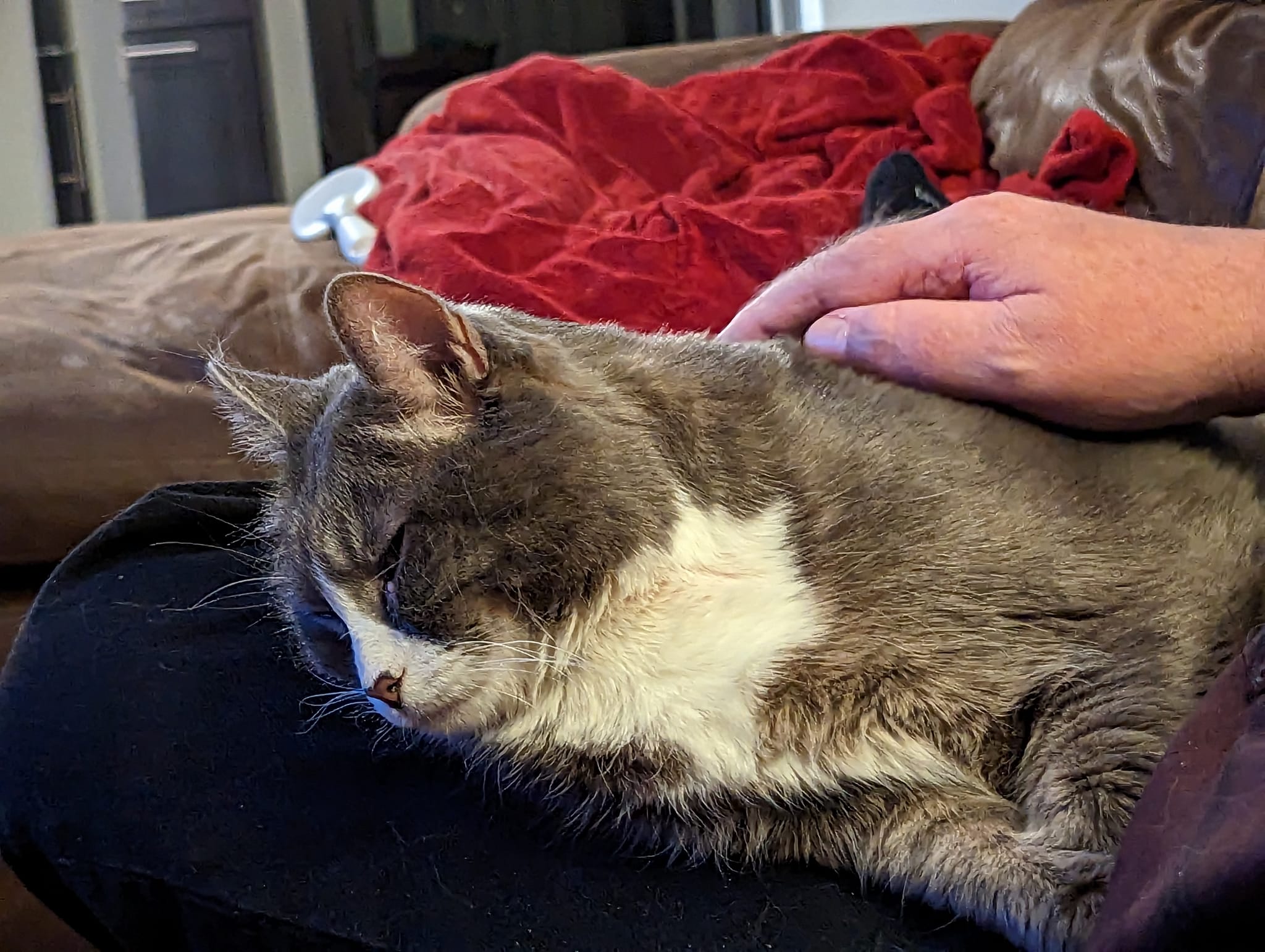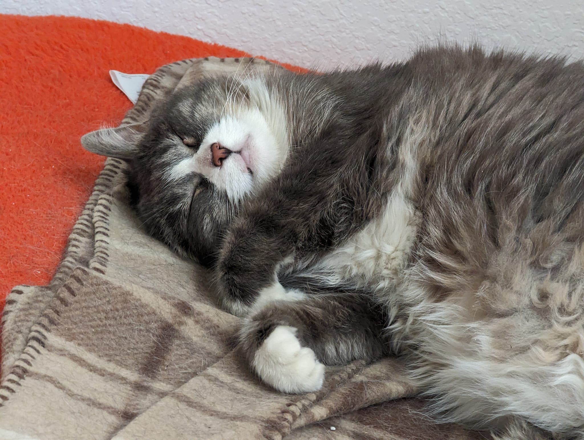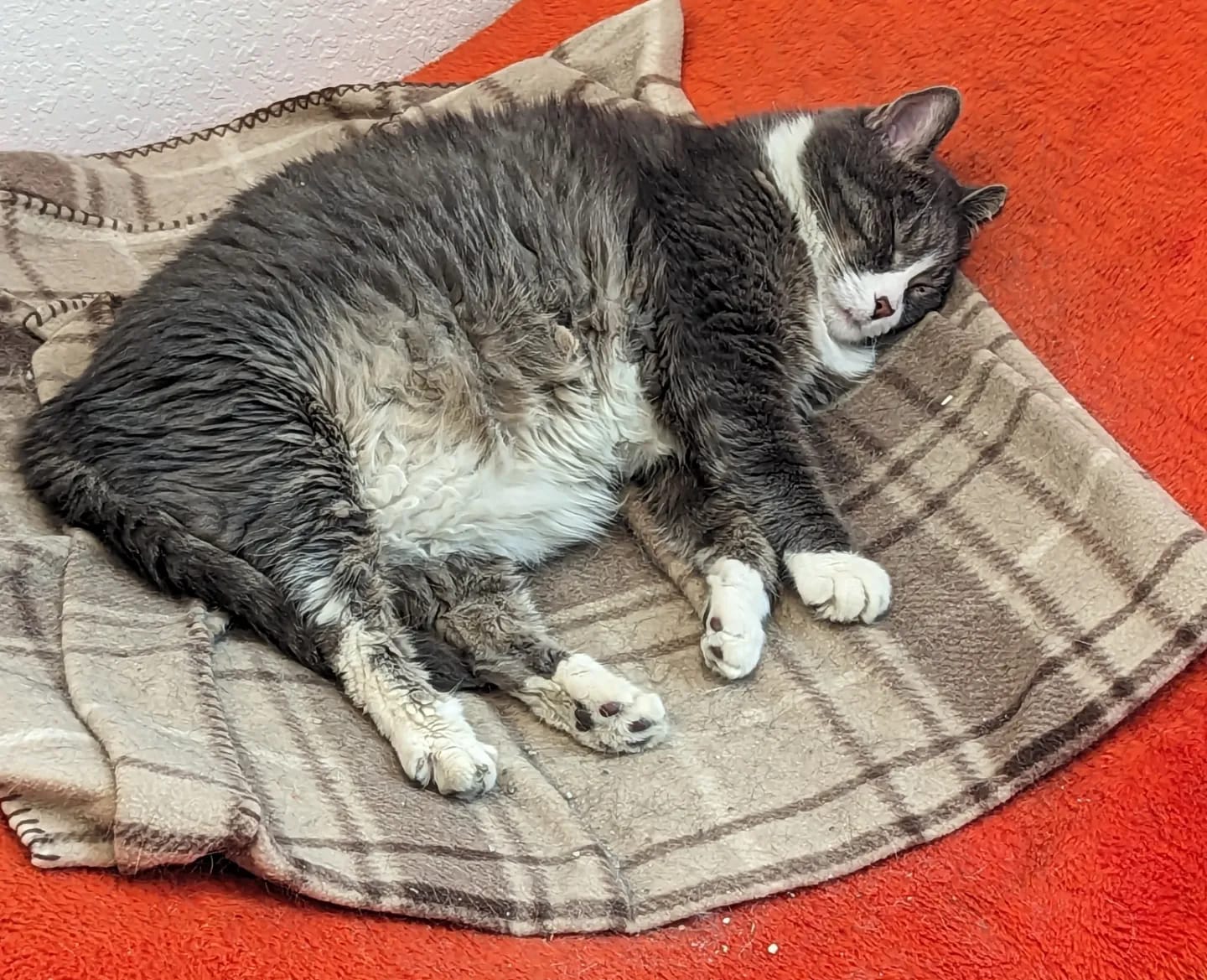 The cat loaf says she is done with this place.???? Urine and blood work looks good for a cat her age except blood sugar and dehydration. Blood sugar is in the same range as it has been for the last year and a half.