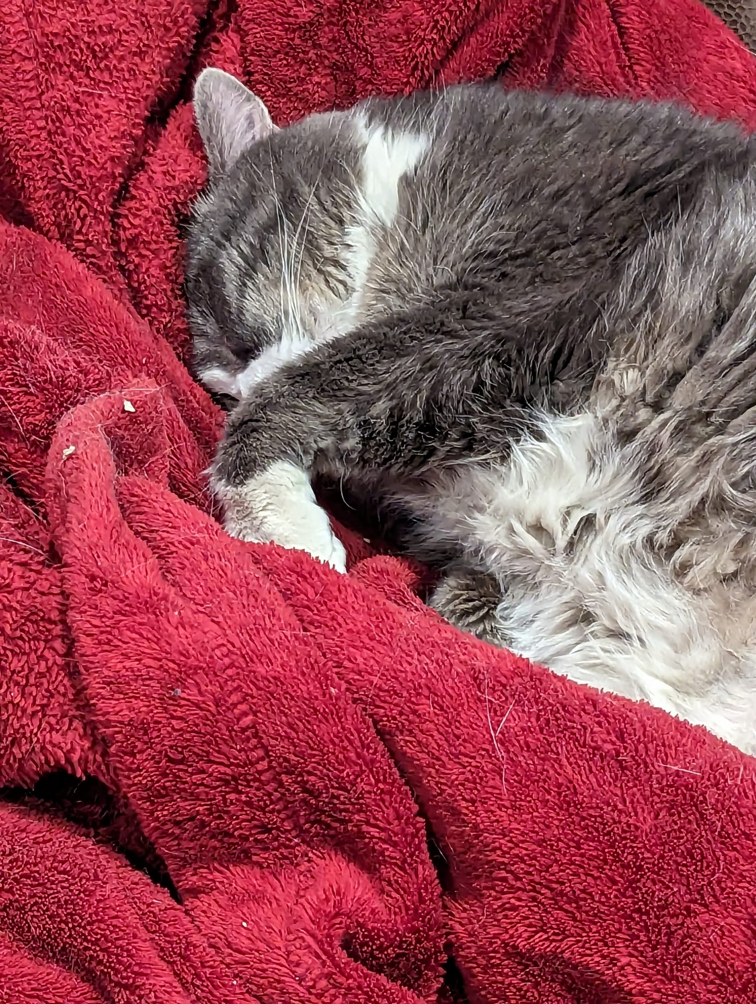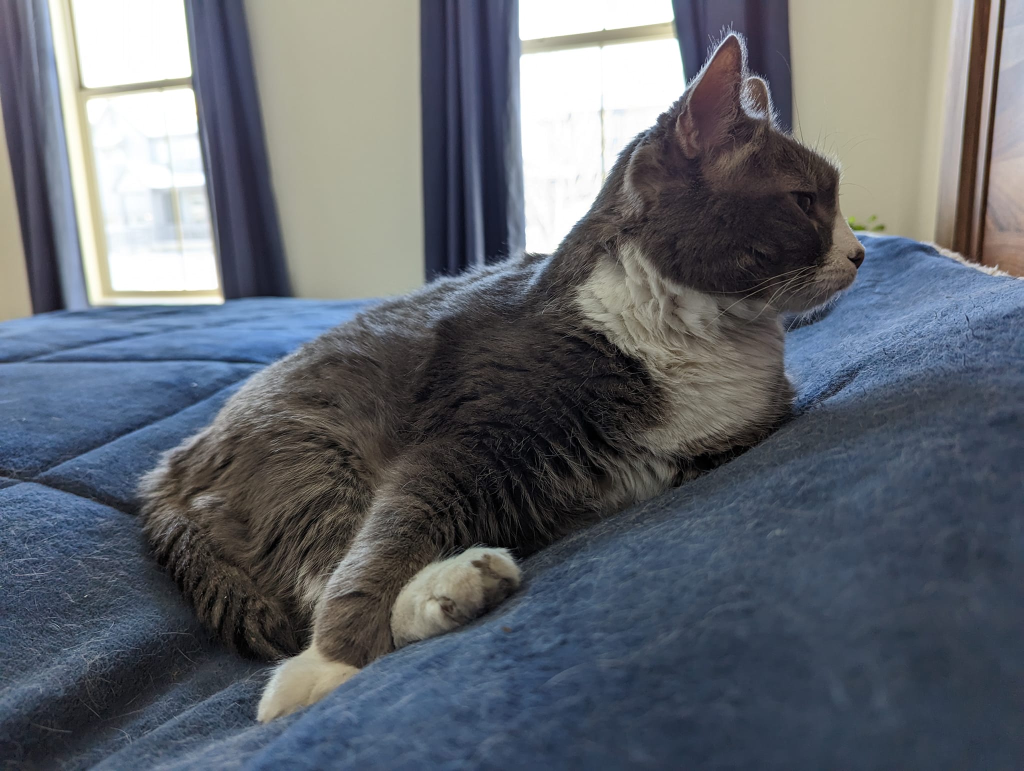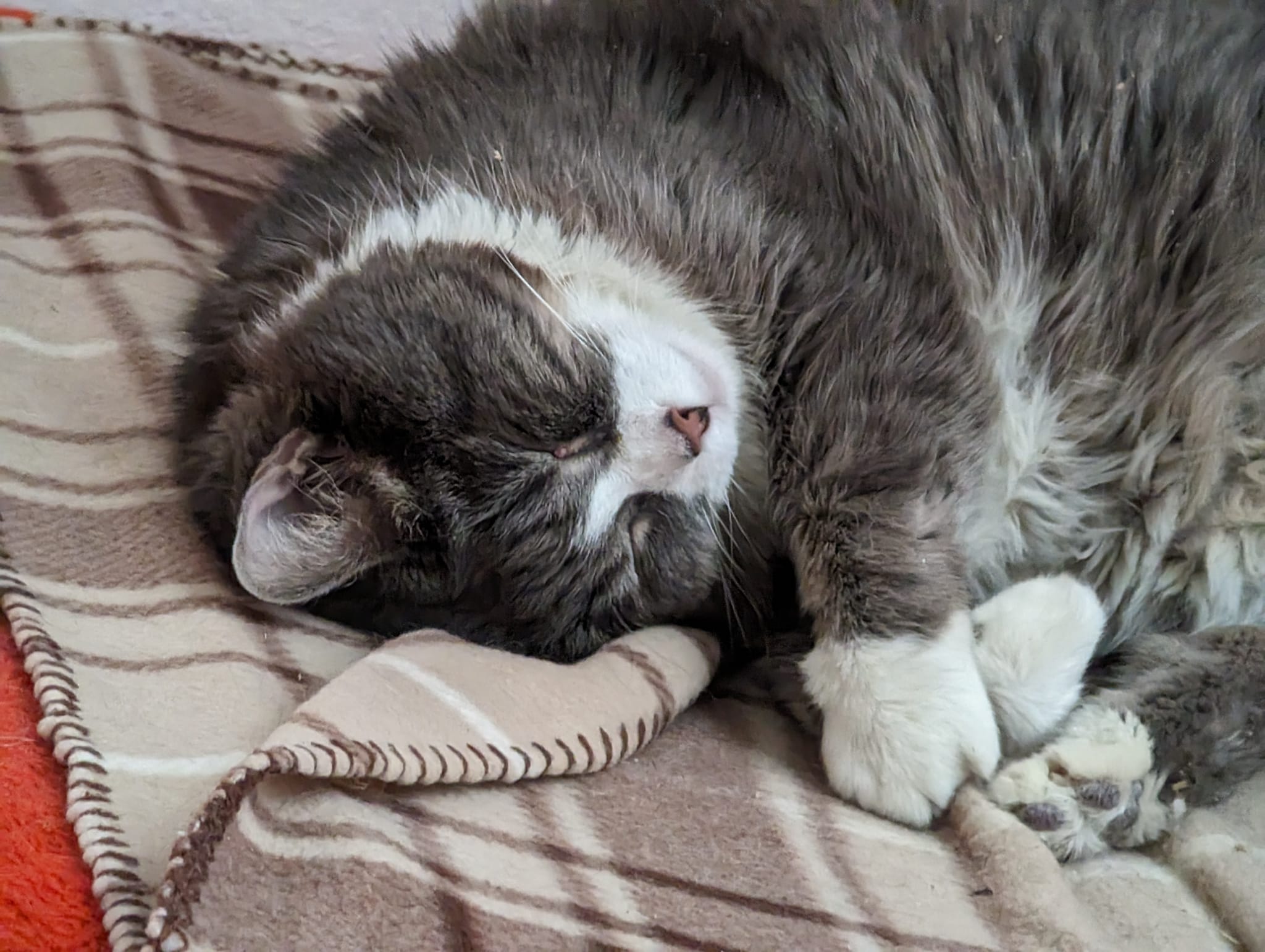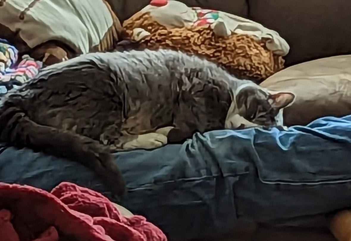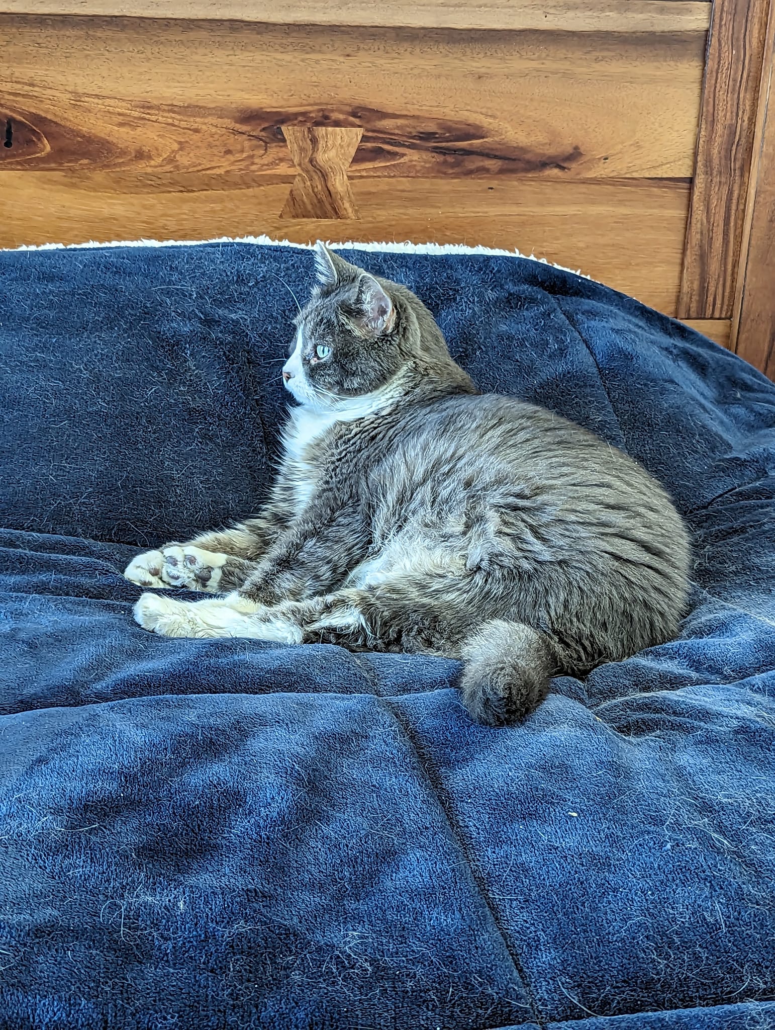 The cat loaf says she is done with this place.???? Urine and blood work looks good for a cat her age except blood sugar and dehydration. Blood sugar is in the same range as it has been for the last year and a half.
