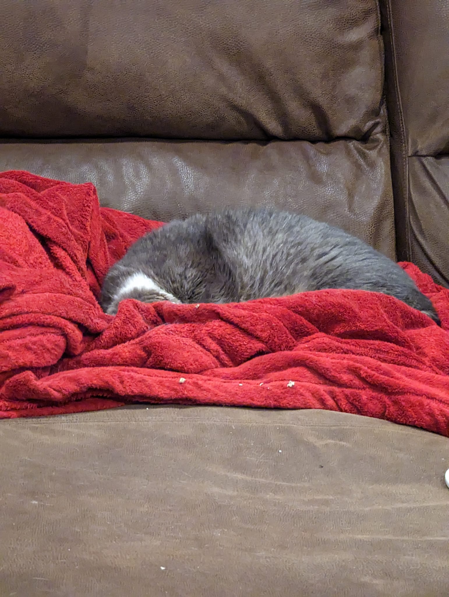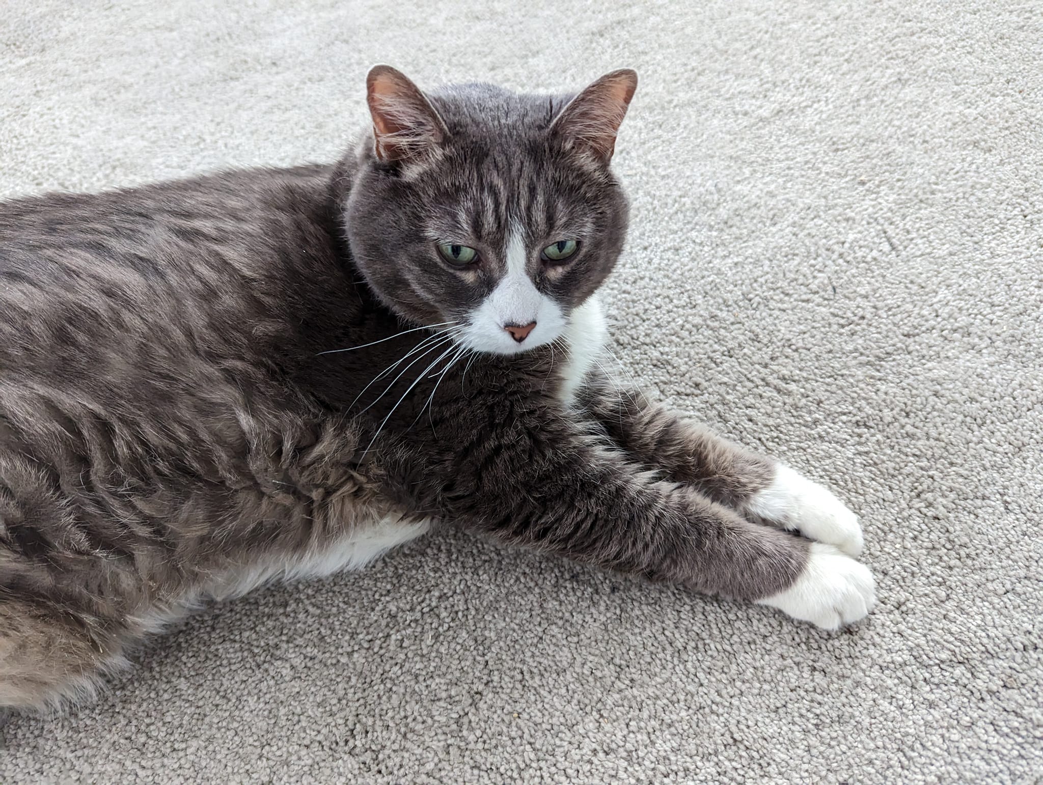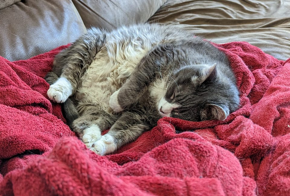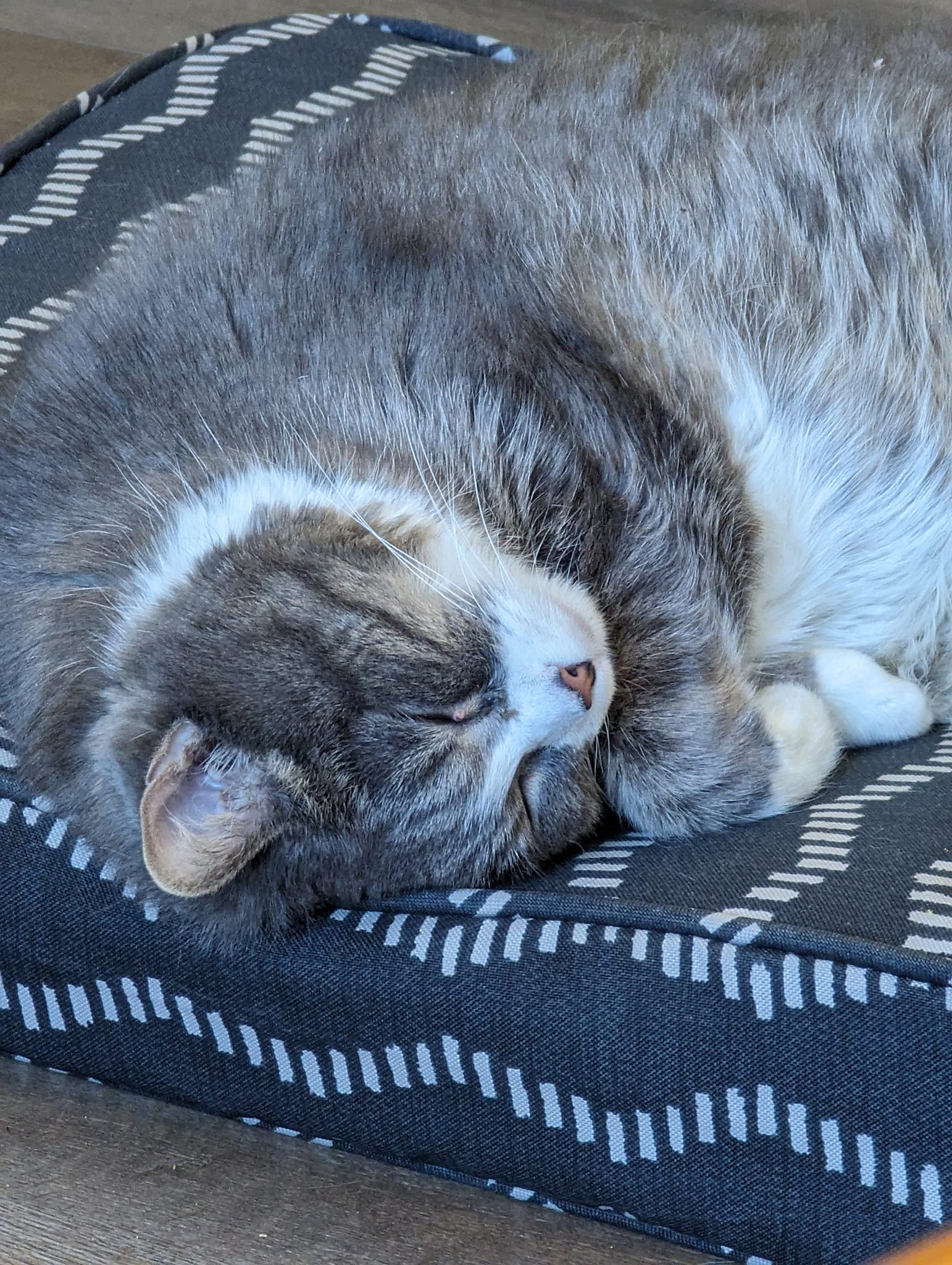 The cat loaf says she is done with this place.???? Urine and blood work looks good for a cat her age except blood sugar and dehydration. Blood sugar is in the same range as it has been for the last year and a half.