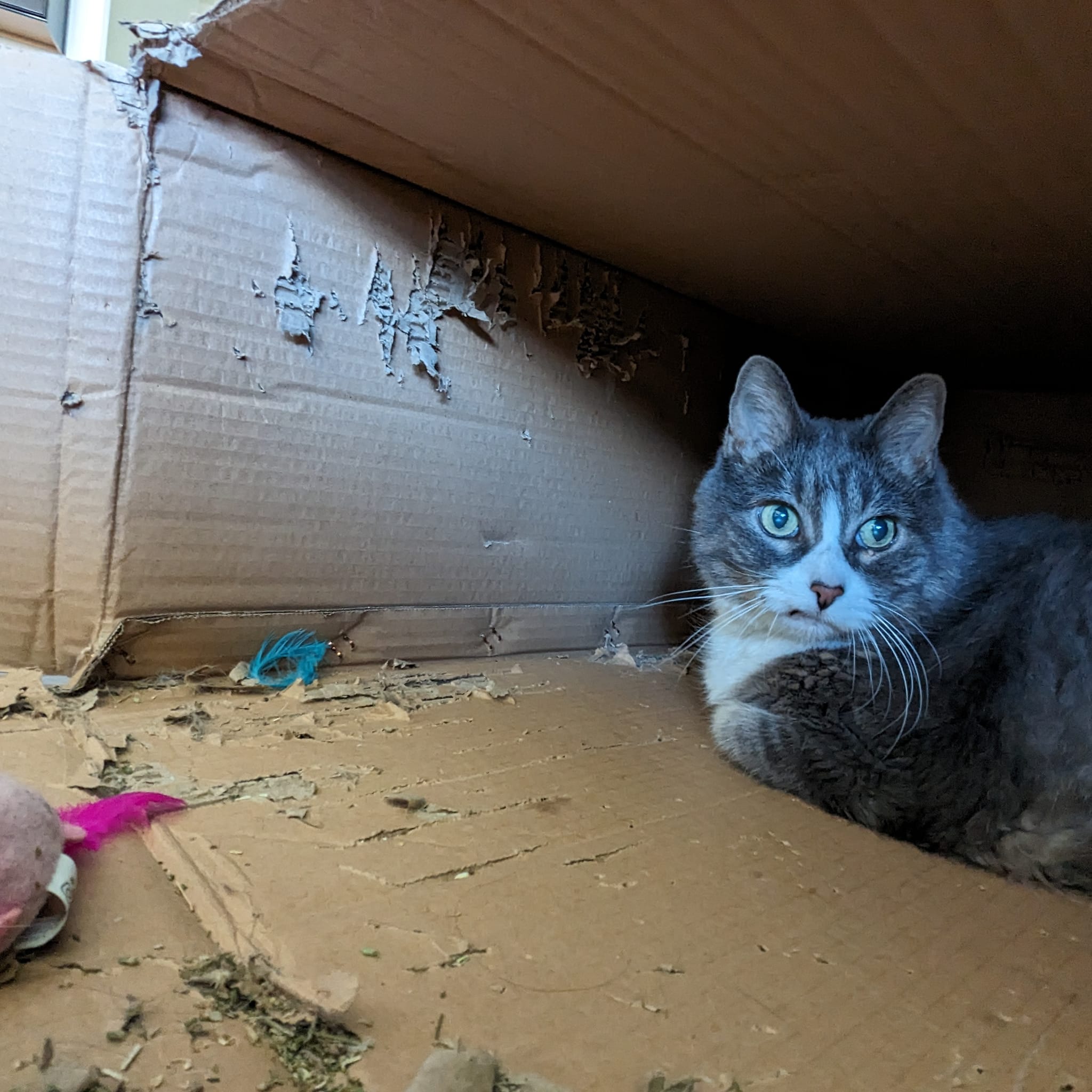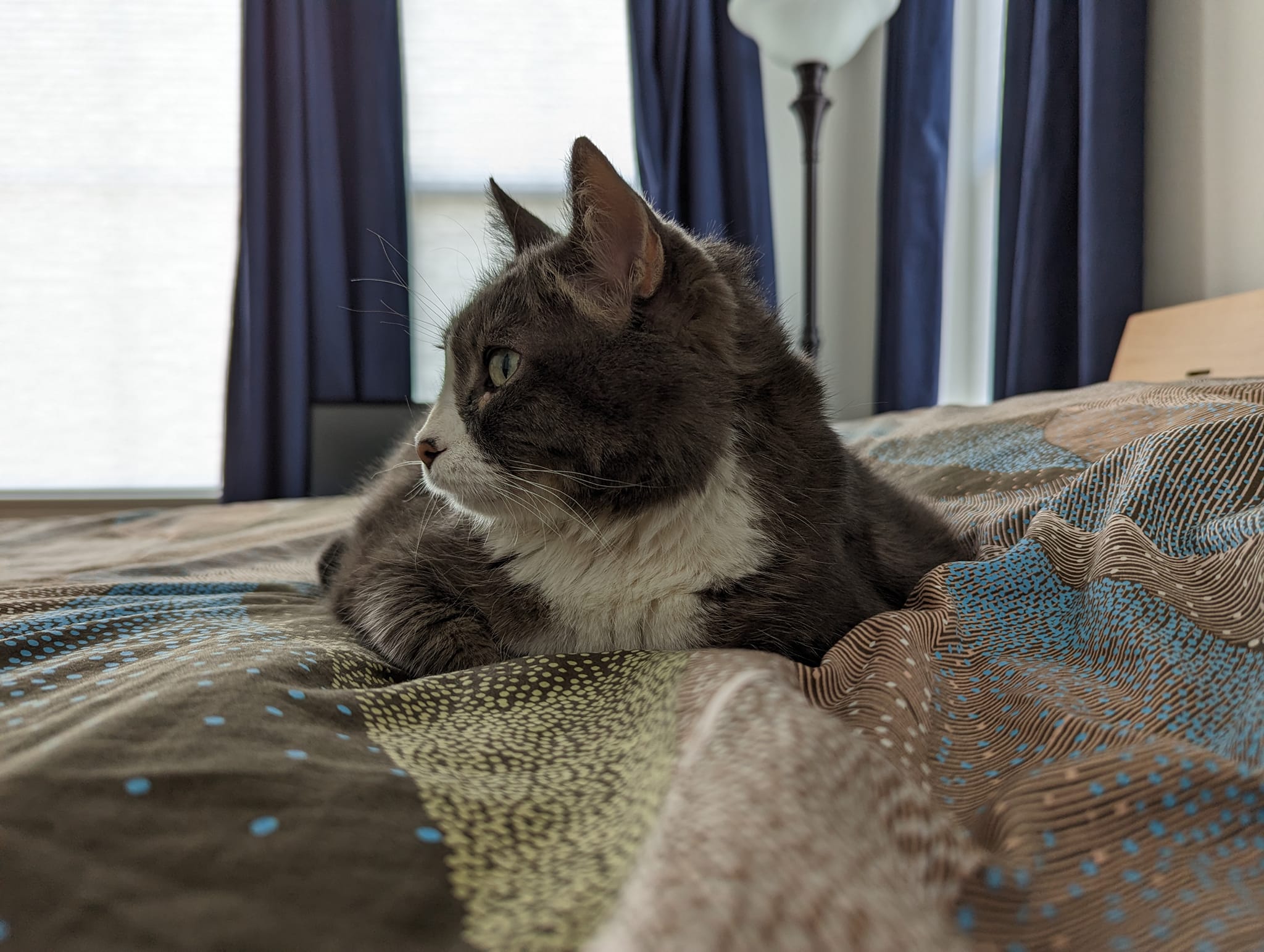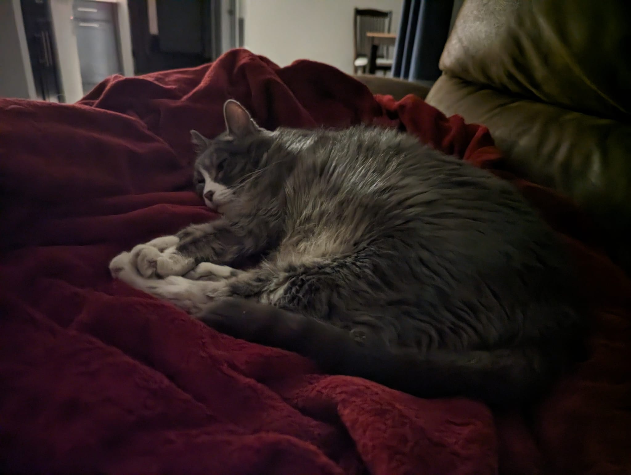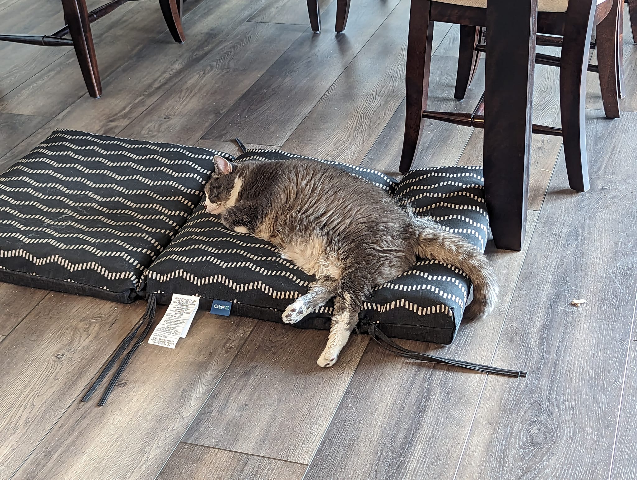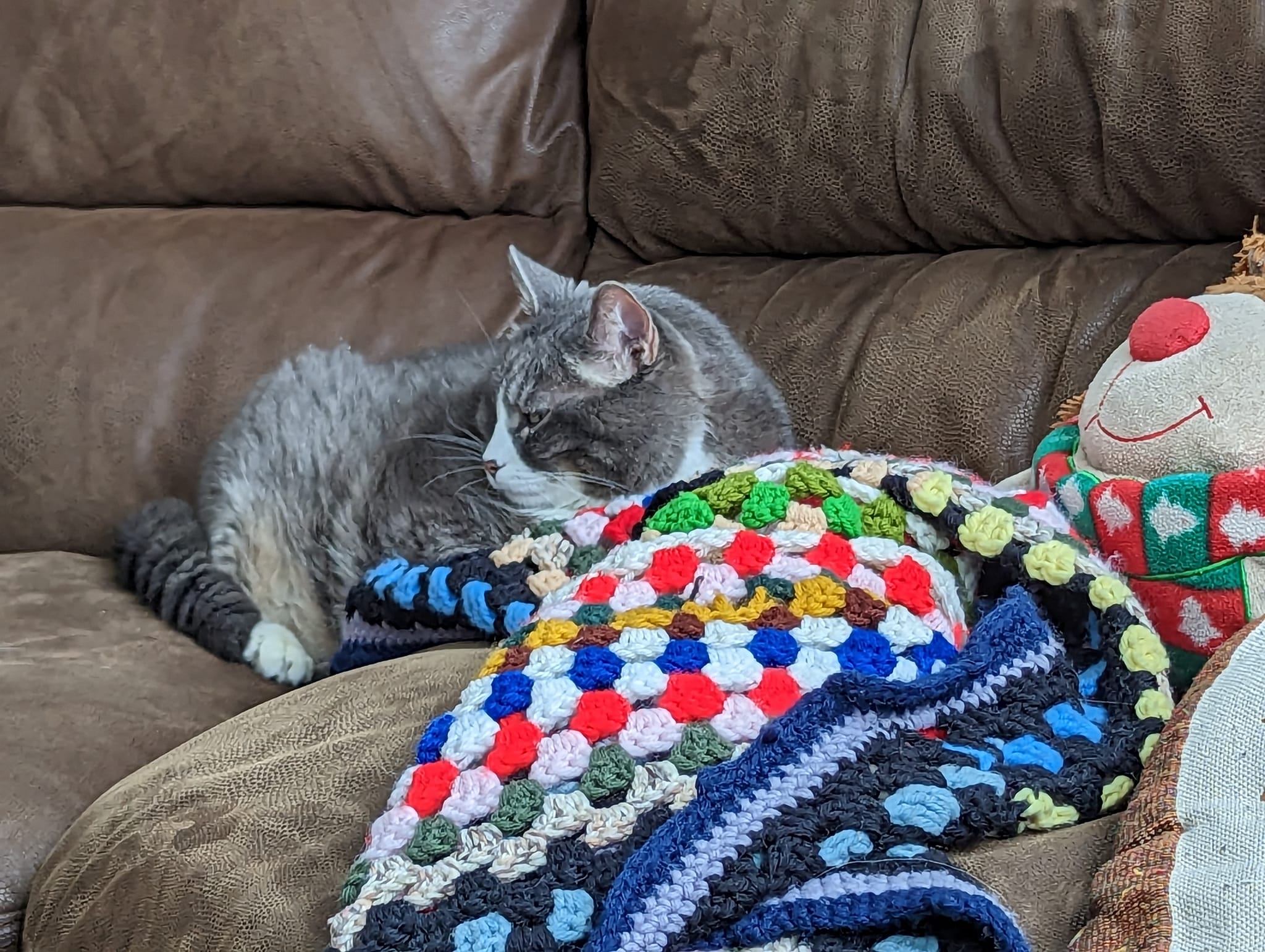 The cat loaf says she is done with this place.???? Urine and blood work looks good for a cat her age except blood sugar and dehydration. Blood sugar is in the same range as it has been for the last year and a half.