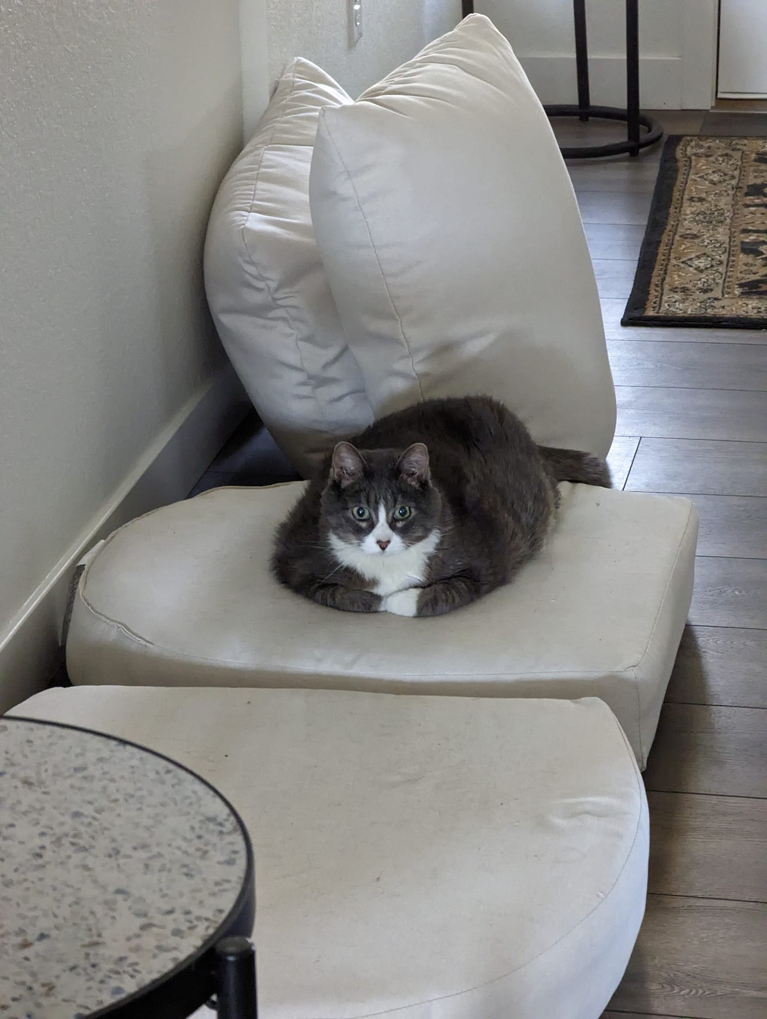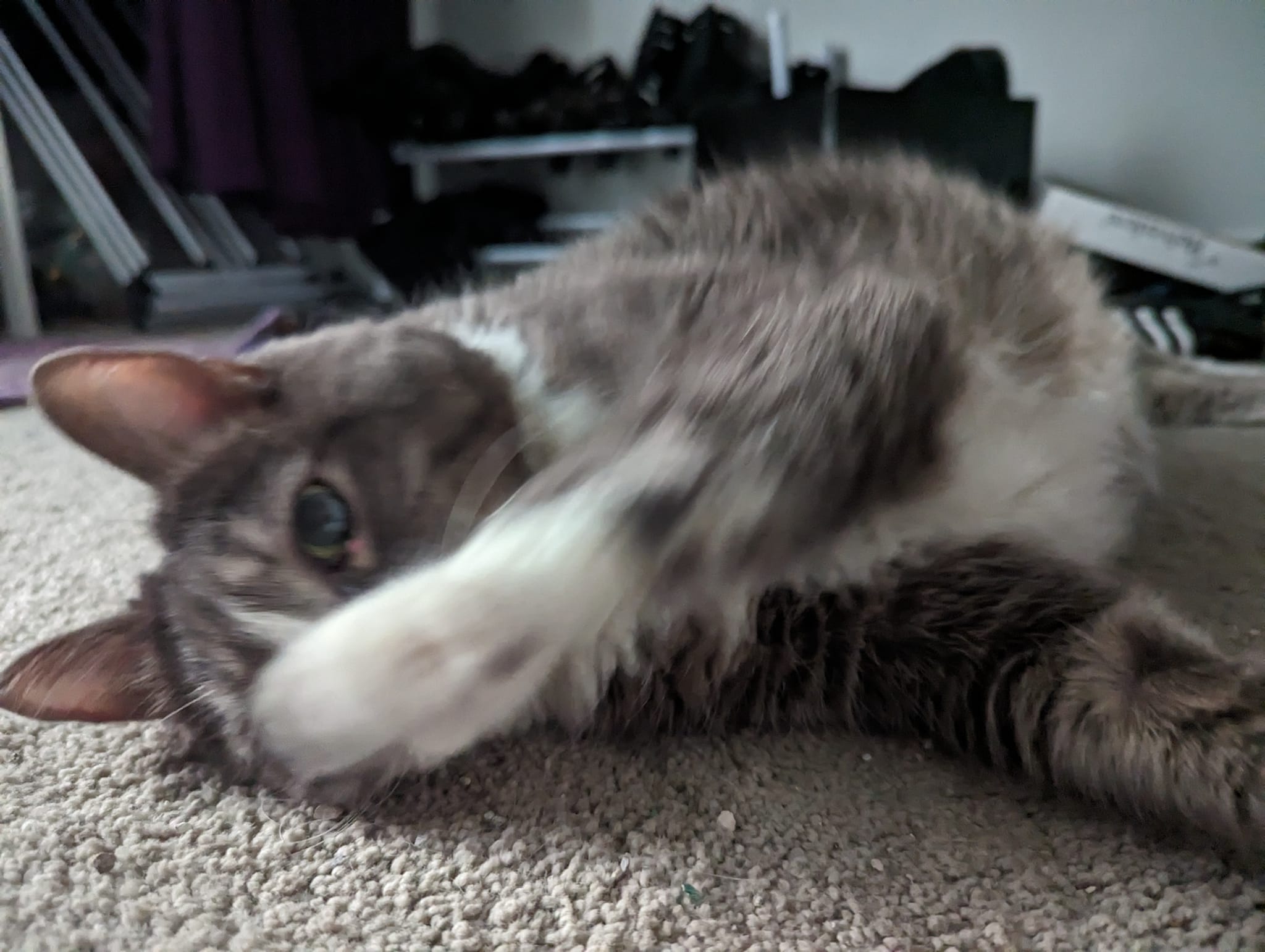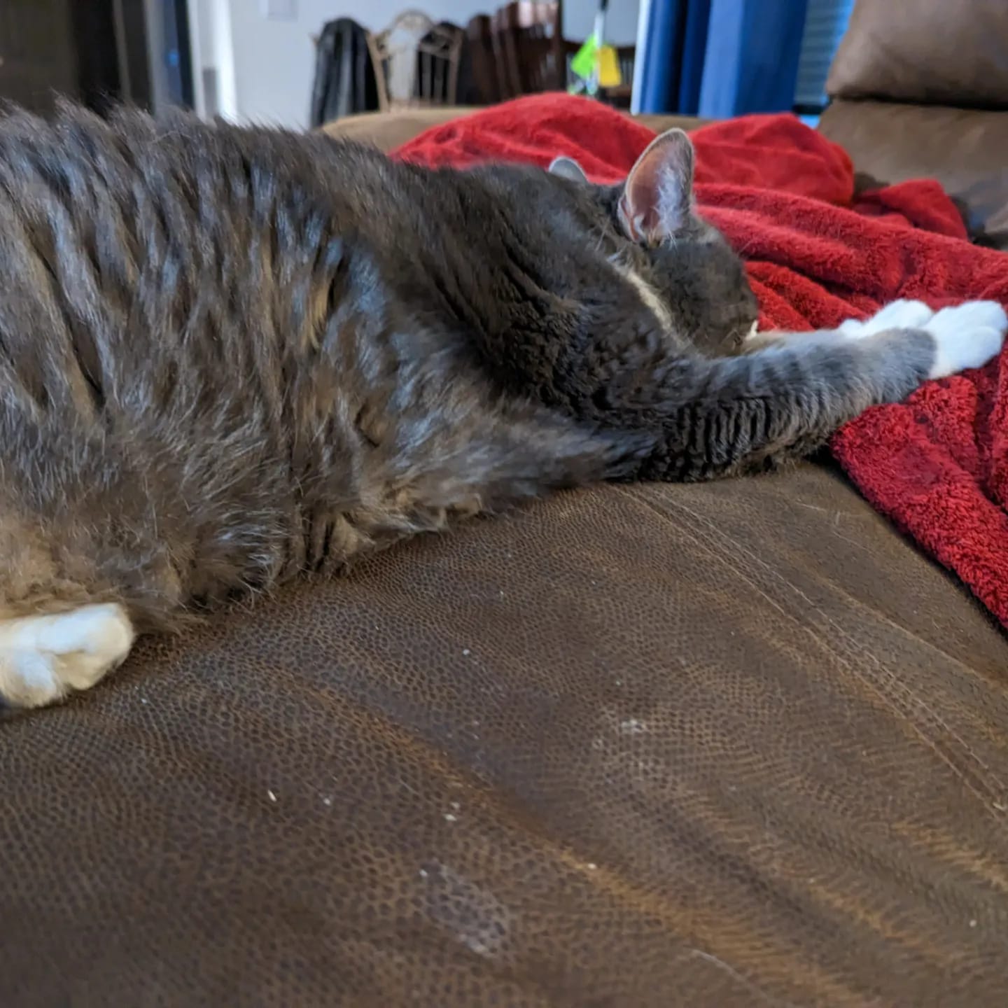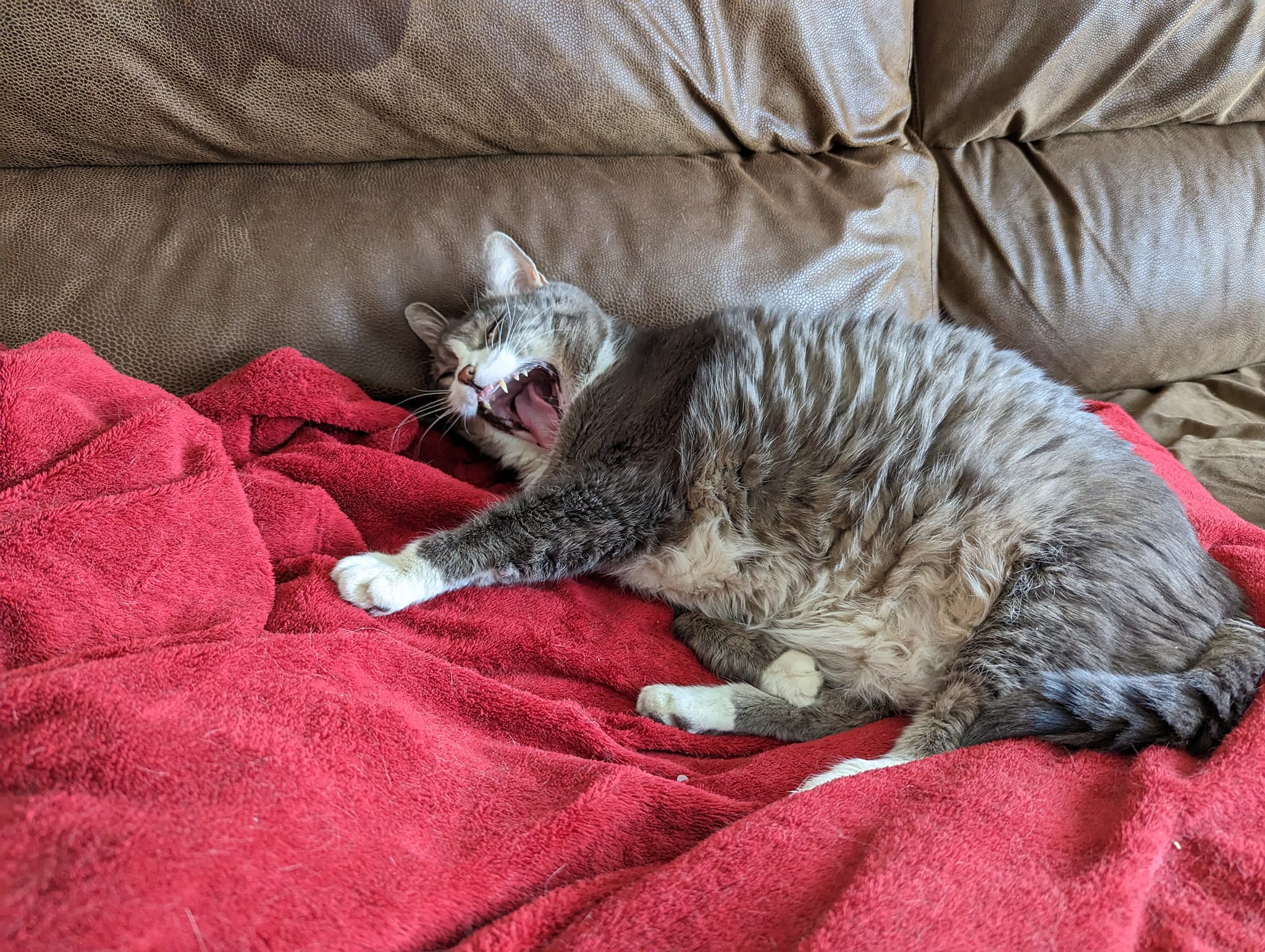 The cat loaf says she is done with this place.???? Urine and blood work looks good for a cat her age except blood sugar and dehydration. Blood sugar is in the same range as it has been for the last year and a half.