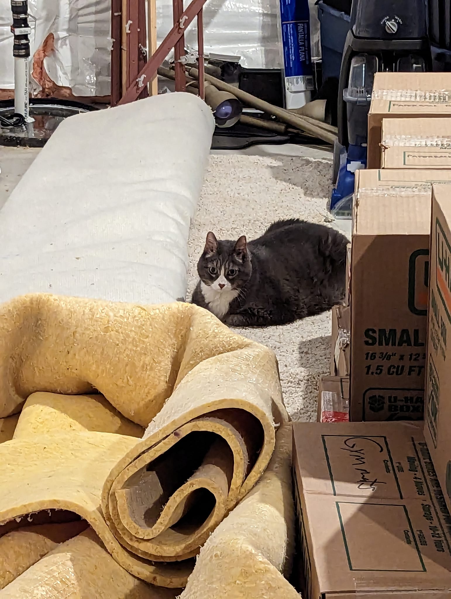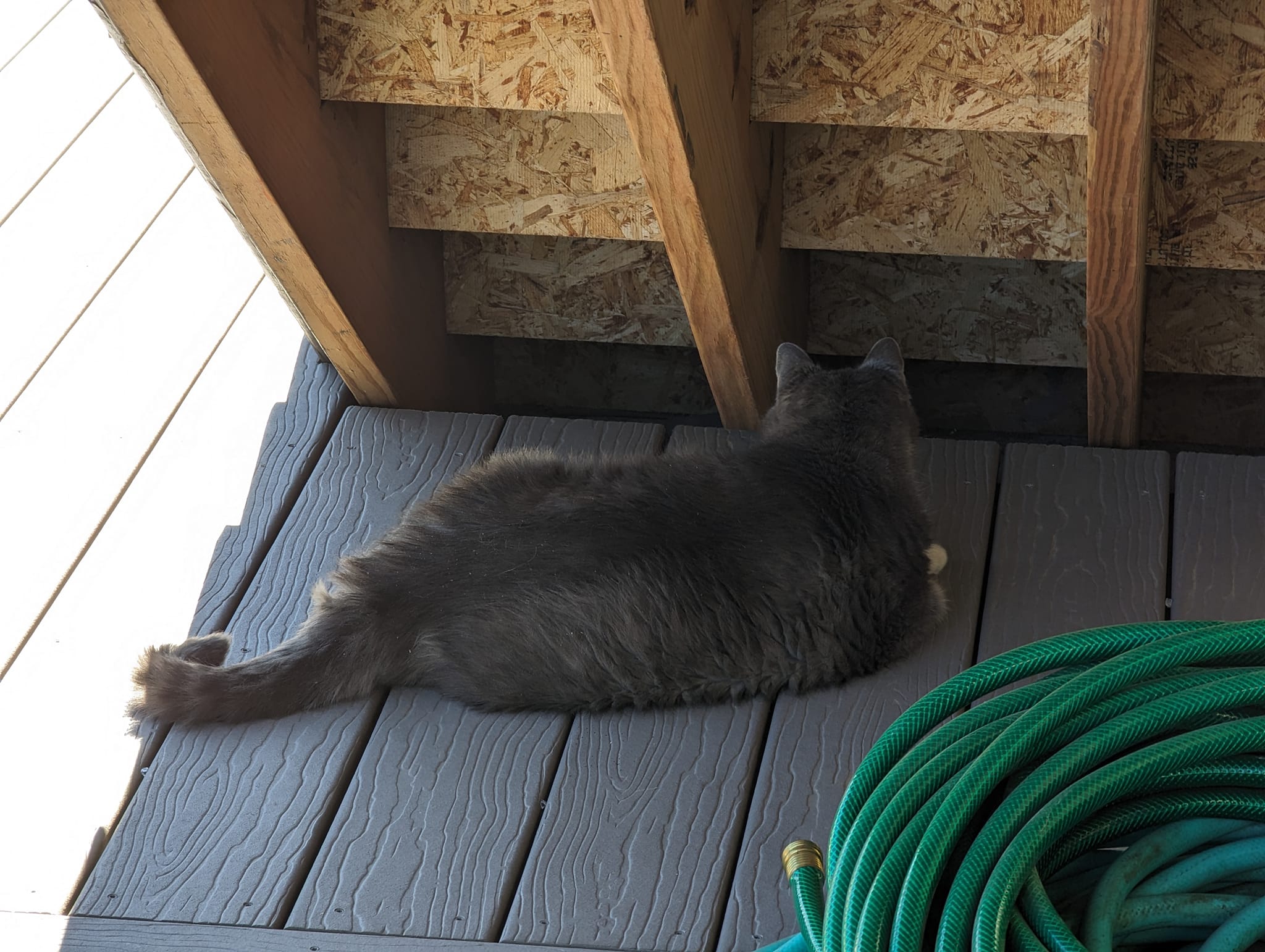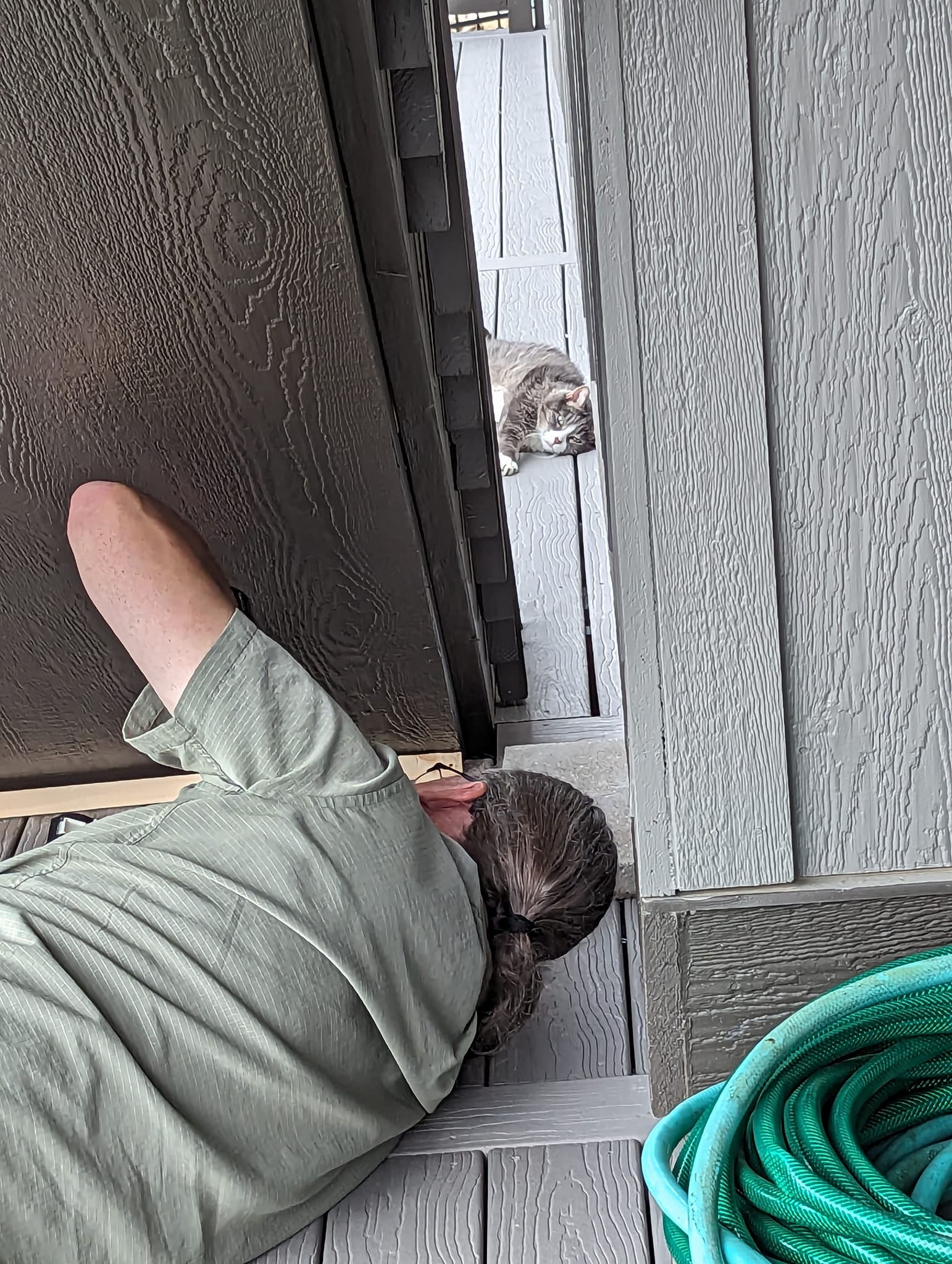 A tense debate on deck construction.... One party was pro deck construction noise, and the other said "No thank mew!"
