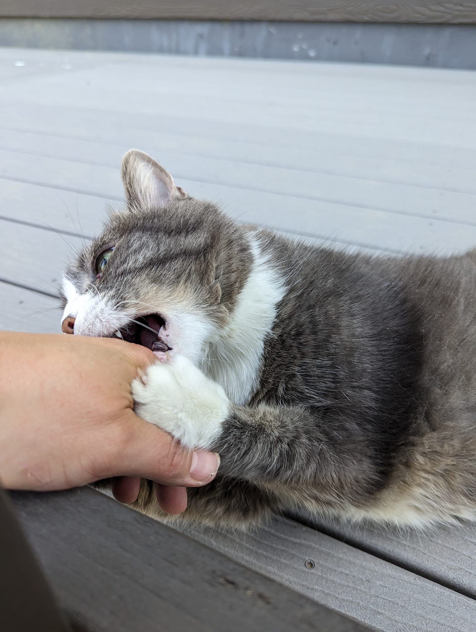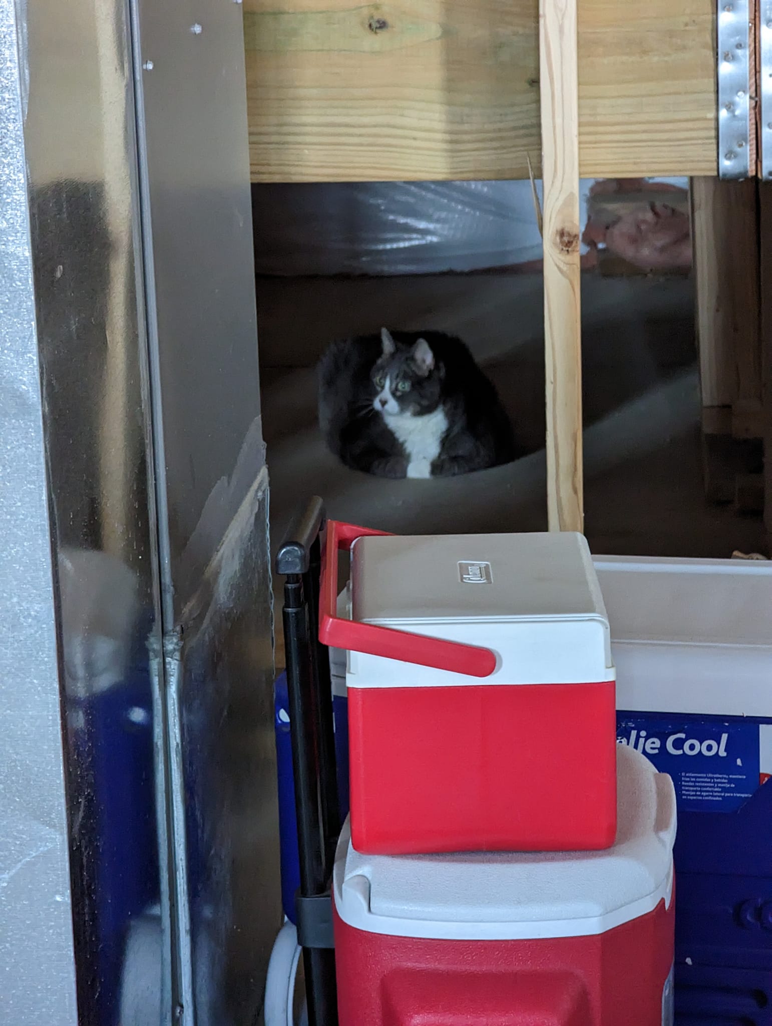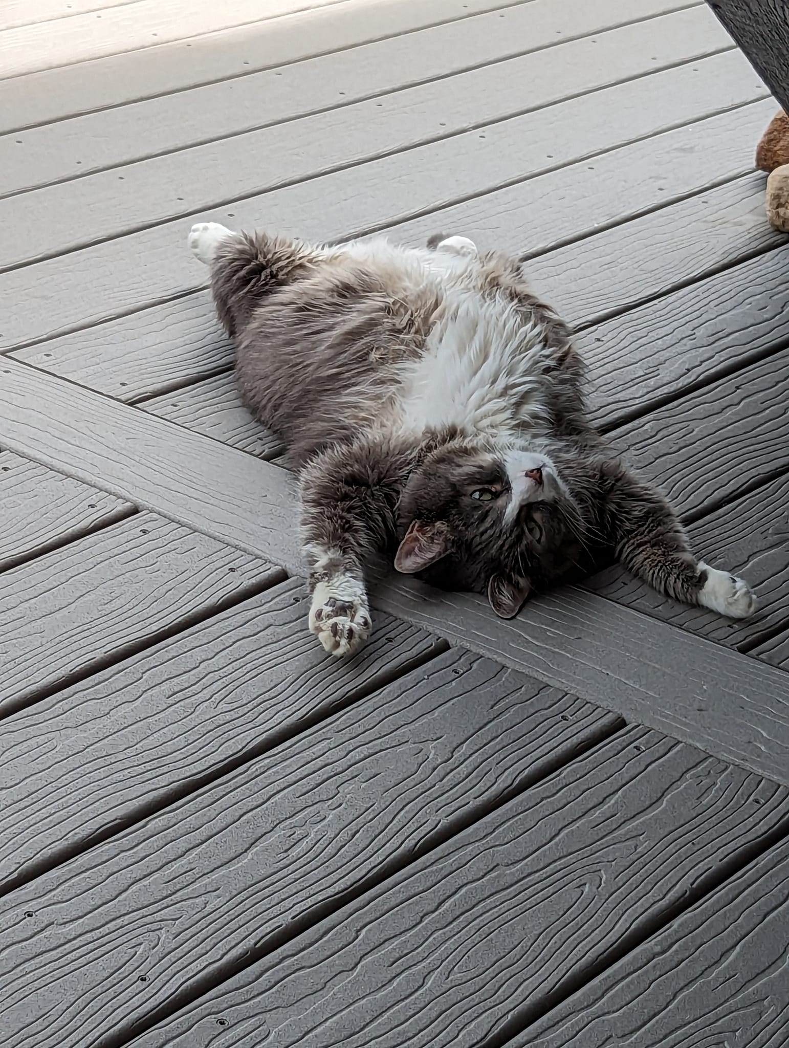 A tense debate on deck construction.... One party was pro deck construction noise, and the other said "No thank mew!"